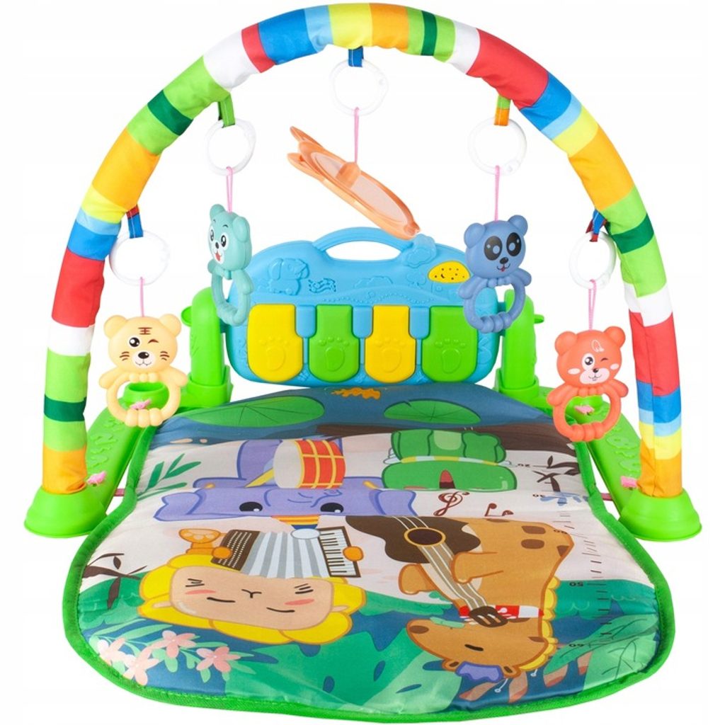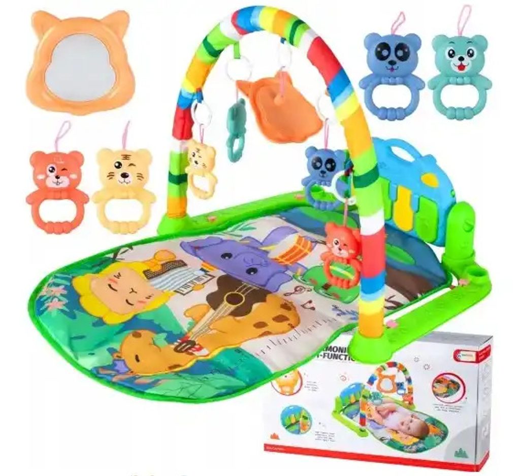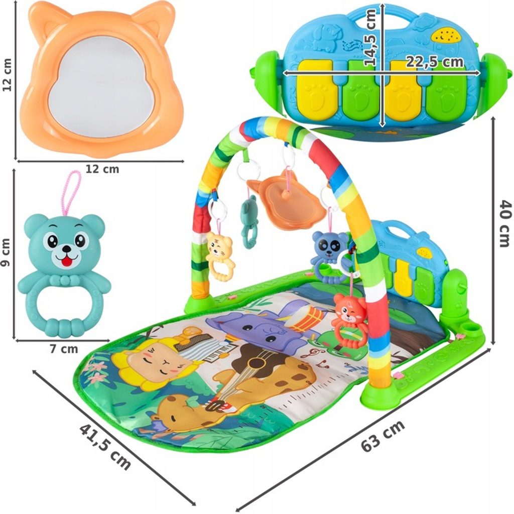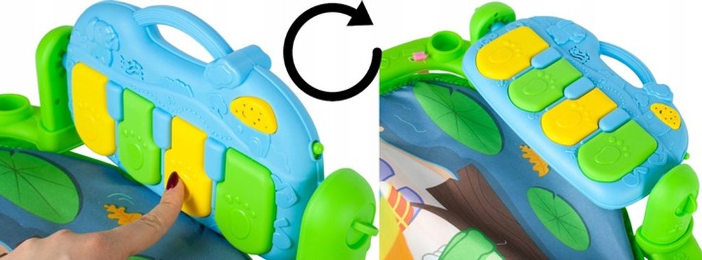 Barevná hrací deka Harmonika je určena Vašemu dítěti už od narození. Součástí deky je hrazdička se zavěšenými chrastítky a malinkým zrcadlem a také pianko, které hraje melodie. Dítě si může v leže hrát s chrastítky a sledovat se u toho v zrcátku a pianko může být využito jako uspávací melodie (0-12 měsíců). Na břiše se dítě naučí zvedat hlavičku a pozorovat věci kolem sebe, pomůže mu k prvním krůčkům a zároveň odděluje dítě od chladné podlahy (6-18 měsíců). Pokud již dítě samostatně sedí může hrát na pianko nebo ho využít jako interaktivní stoleček. Zároveň se tím prohlubuje motorika dítěte, rozvíjí se sluch a zrak (6-36 měsíců).