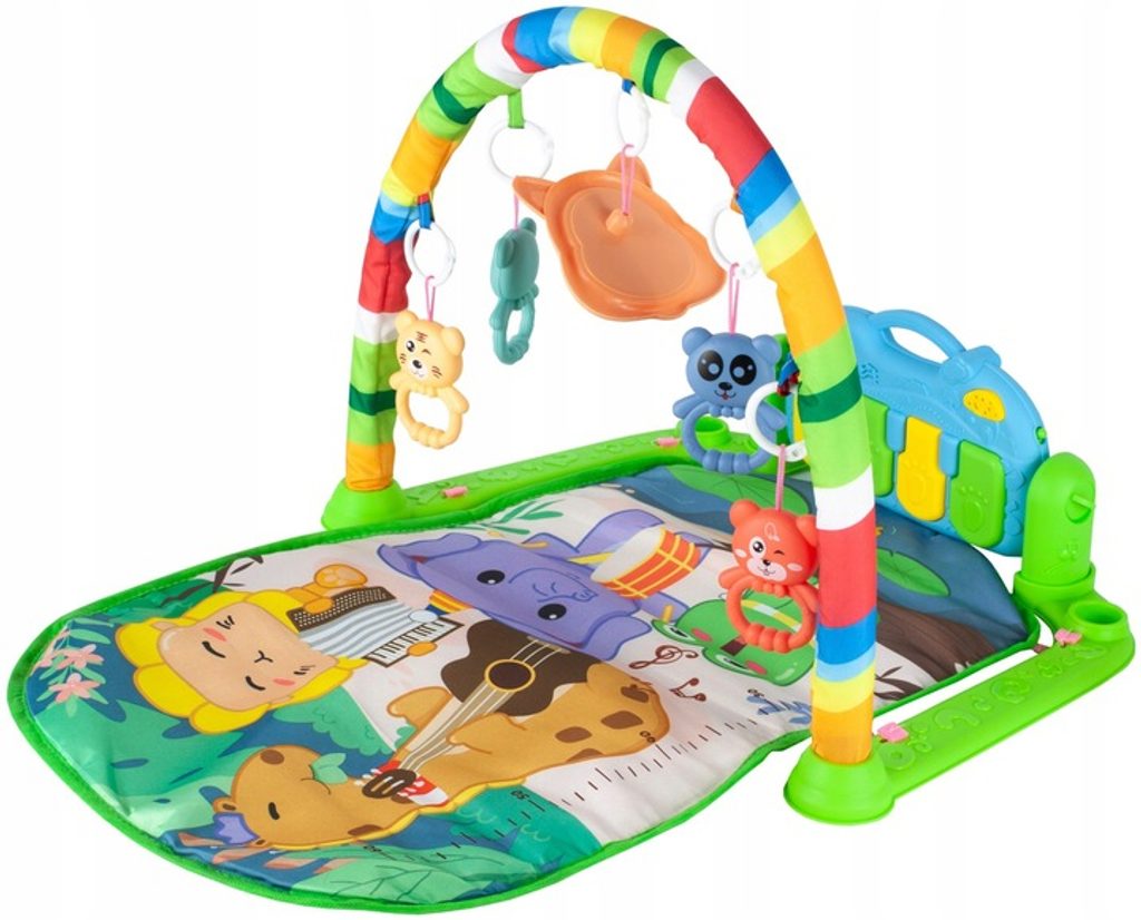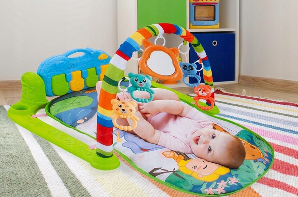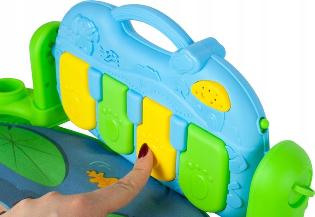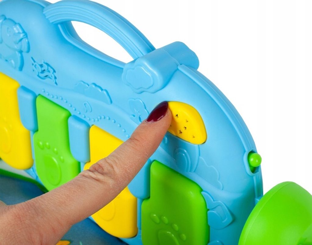 Barevná hrací deka Harmonika je určena Vašemu dítěti už od narození. Součástí deky je hrazdička se zavěšenými chrastítky a malinkým zrcadlem a také pianko, které hraje melodie. Dítě si může v leže hrát s chrastítky a sledovat se u toho v zrcátku a pianko může být využito jako uspávací melodie (0-12 měsíců). Na břiše se dítě naučí zvedat hlavičku a pozorovat věci kolem sebe, pomůže mu k prvním krůčkům a zároveň odděluje dítě od chladné podlahy (6-18 měsíců). Pokud již dítě samostatně sedí může hrát na pianko nebo ho využít jako interaktivní stoleček. Zároveň se tím prohlubuje motorika dítěte, rozvíjí se sluch a zrak (6-36 měsíců).