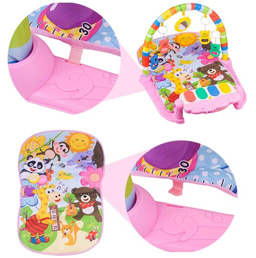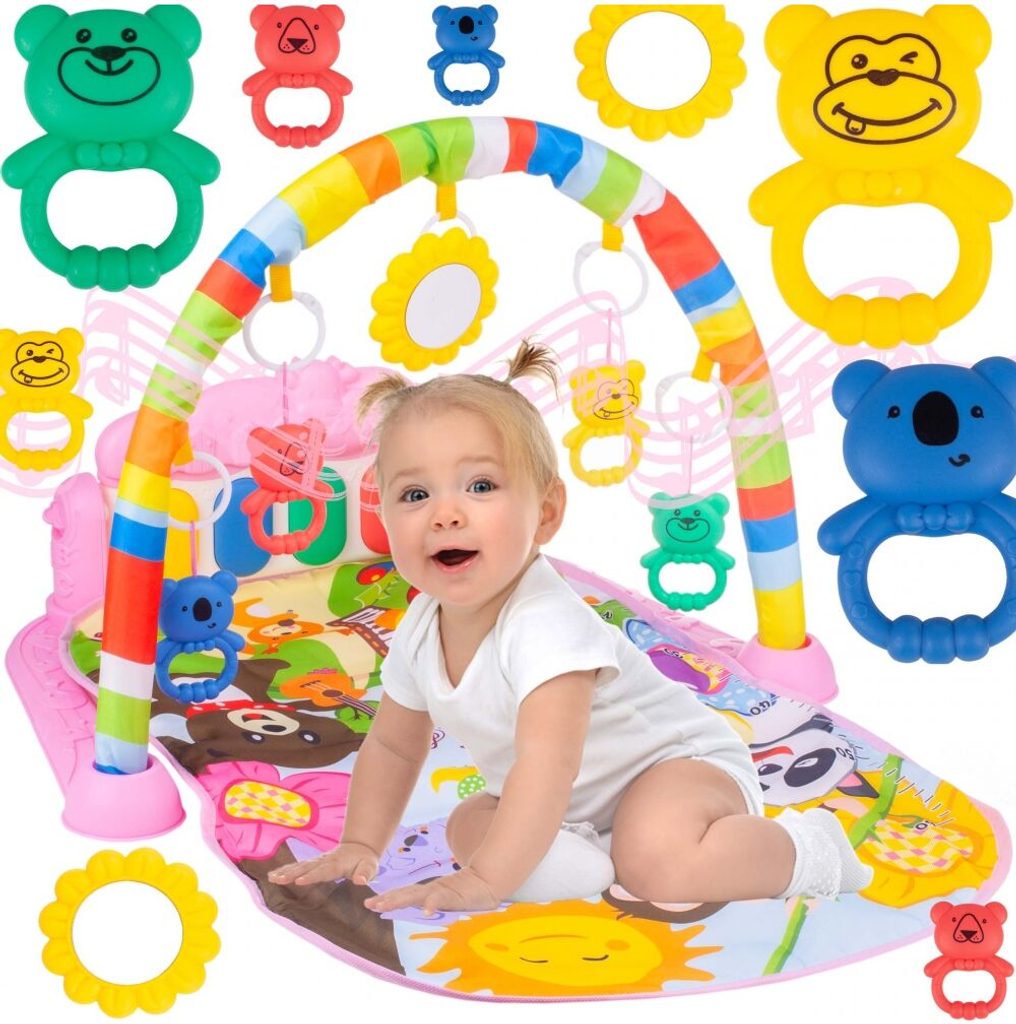 Barevná hrací deka Sluníčko je určena Vašemu dítěti už od narození. Součástí deky je hrazdička se zavěšenými chrastítky a malinkým zrcadlem a také pianko, které svítí a hraje melodie. Dítě si může v leže hrát s chrastítky a sledovat se u toho v zrcátku a pianko může být využito jako uspávací melodie (0-12 měsíců). Na břiše se dítě naučí zvedat hlavičku a pozorovat věci kolem sebe, pomůže mu k prvním krůčkům a zároveň odděluje dítě od chladné podlahy (6-18 měsíců). Pokud již dítě samostatně sedí může hrát na pianko nebo ho využít jako interaktivní stoleček. Zároveň se tím prohlubuje motorika dítěte, rozvíjí se sluch a zrak (6-36 měsíců).