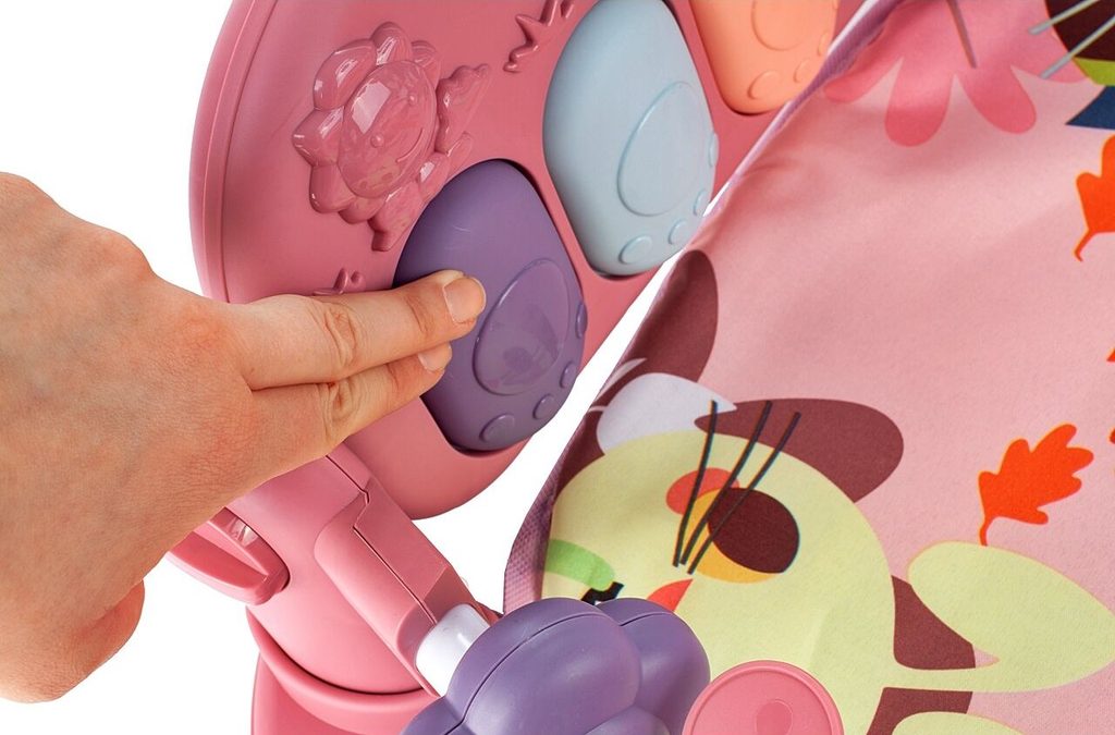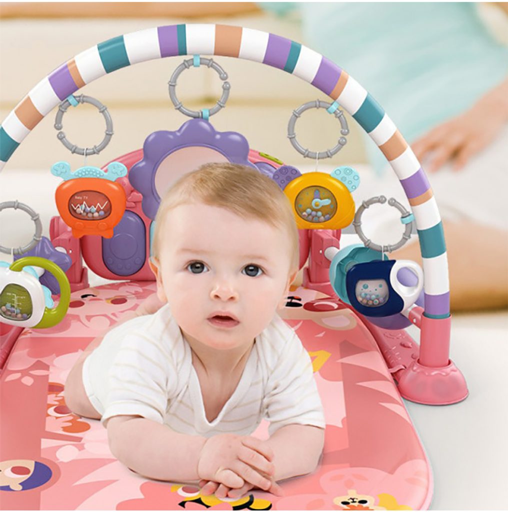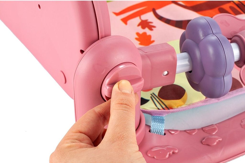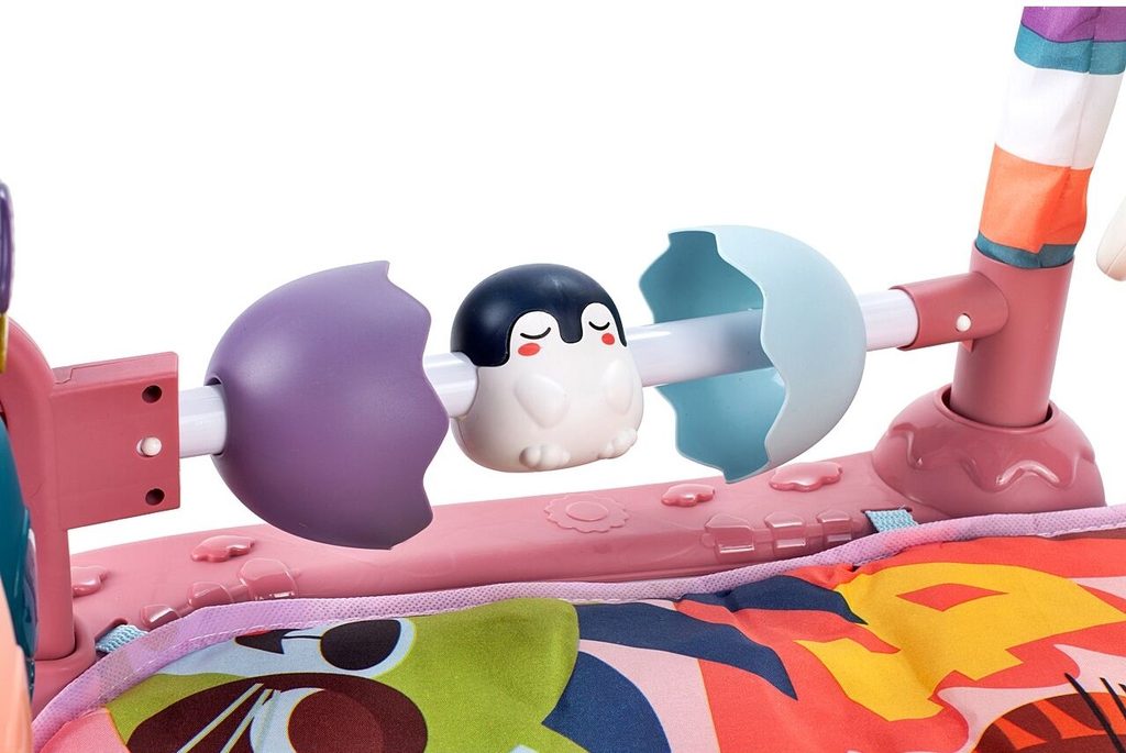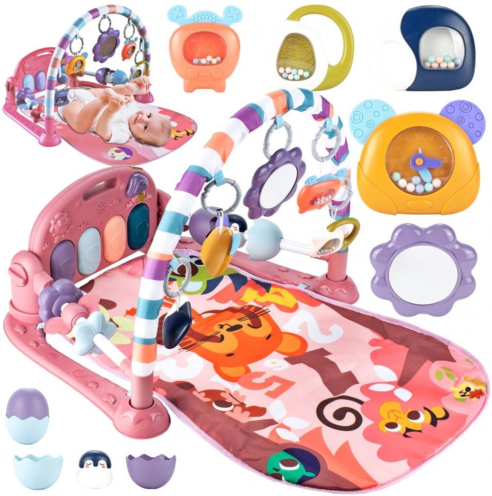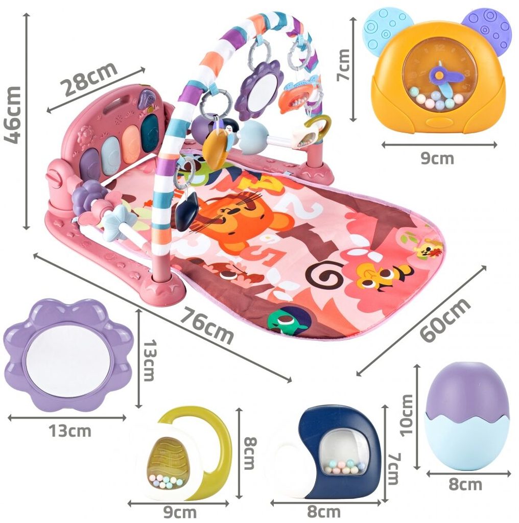 Barevná hrací deka Tygřík je určena Vašemu dítěti už od narození. Součástí deky je hrazdička se zavěšenými chrastítky a malinkým zrcadlem a také pianko, které přehrává zvuky, melodie a Doremi. Dítě si může v leže hrát s chrastítky a sledovat se u toho v zrcátku a pianko může být využito jako uspávací melodie (0-12 měsíců). Na břiše se dítě naučí zvedat hlavičku a pozorovat věci kolem sebe, pomůže mu k prvním krůčkům a zároveň odděluje dítě od chladné podlahy (6-18 měsíců). Pokud již dítě samostatně sedí může hrát na pianko nebo ho využít jako interaktivní stoleček. Zároveň se tím prohlubuje motorika dítěte, rozvíjí se sluch a zrak (6-36 měsíců).