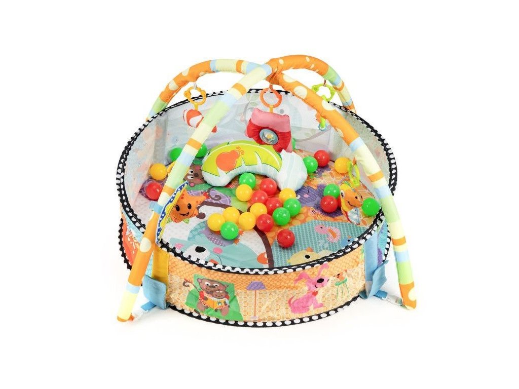 Ecotoys barevná hrací deka Funny Ocean se 30 míčky je určena Vašemu dítěti už od narození. Součástí deky jsou dvě hrazdičky se zavěšenými hračkami z nichž je v provedení bezpečného zrcátka. V první fázi života si dítě hraje na zádech a může pozorovat zavěšené hračky, které vzbuzují jeho zvědavost. Pro dítě, které již zvládne větší pohyby lze boční stěny jednoduše zvednout a vytvořit tak bezpečnou ohrádku pro hraní. Hračky lze odejmout a dítě si s nimi může hrát samostatně. Deka je vyrobena ze stálobarevného materiálu.