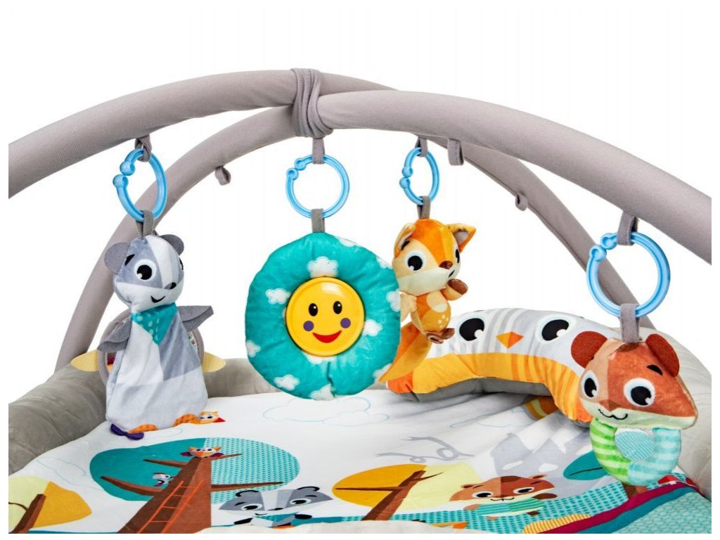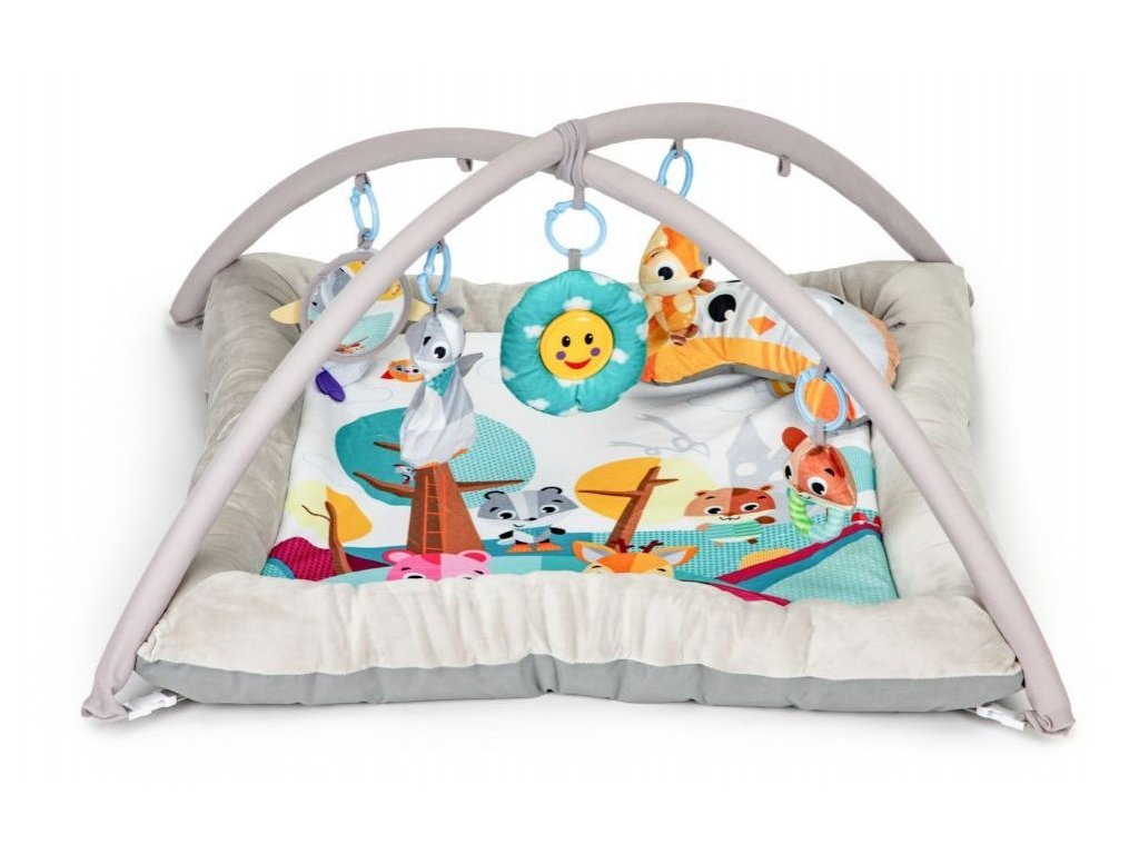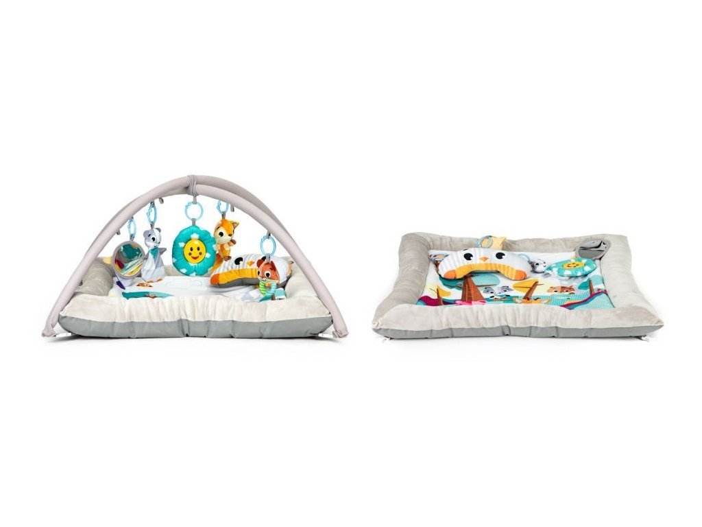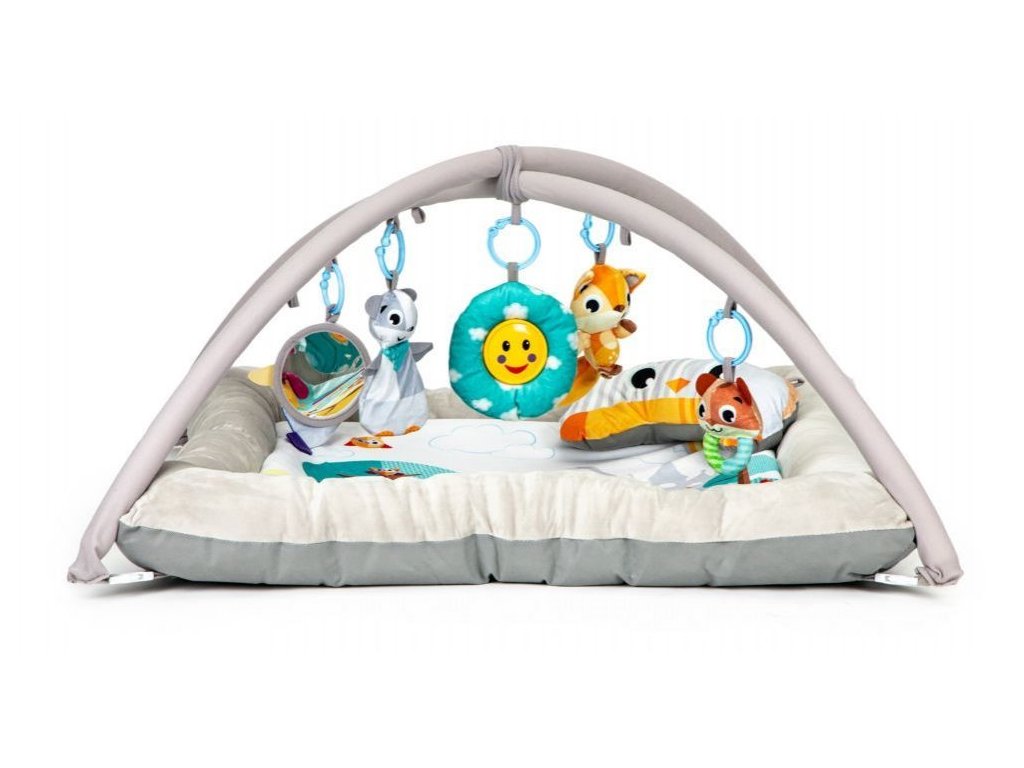 Ecotoys barevná hrací deka Deluxe Gym s vysokými okraji je určena Vašemu dítěti už od narození. Součástí deky jsou dvě hrazdičky se zavěšenými hračkami z nichž jedna je napájena bateriemi a vydává melodie a také polštářek. V první fázi života si dítě hraje na zádech a může pozorovat zavěšené hračky, které vzbuzují jeho zvědavost. Pro dítě, které již zvládne větší pohyby lze využít pouze samostatnou deku. Hračky lze odejmout a dítě si s nimi může hrát samostatně. Deka je vyrobena ze stálobarevného materiálu a její velkou výhodou jsou vysoké měkké okraje.