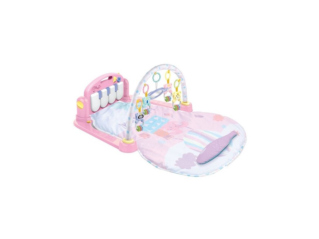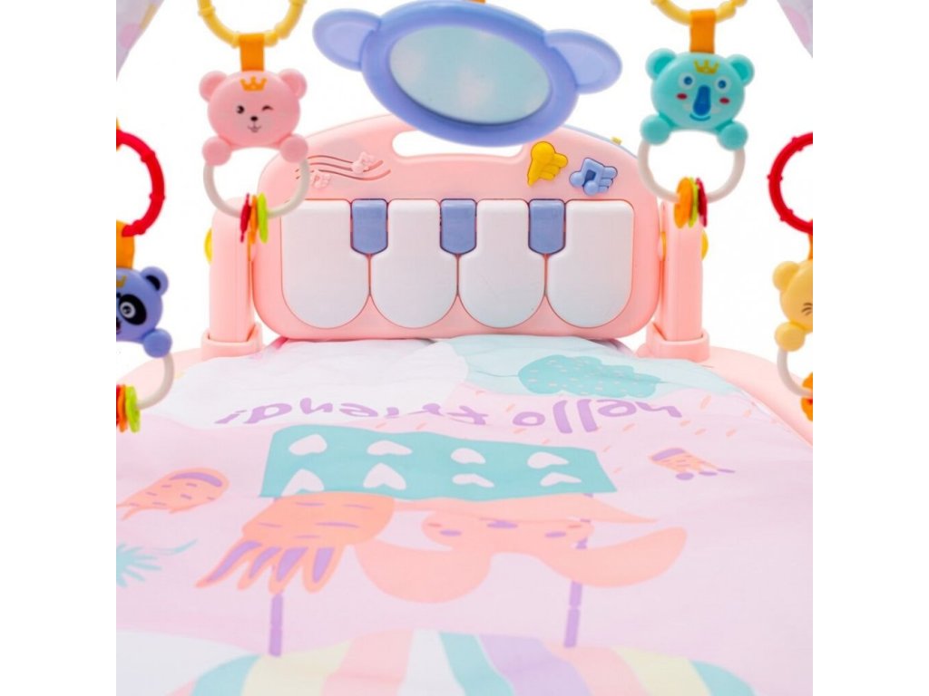 Barevná hrací deka Haunger Fitness Frame je určena Vašemu dítěti už od narození. Součástí deky je hrazdička se zavěšenými chrastítky a malinkým zrcadlem a také pianko, které svítí a hraje melodie. Dítě si může v leže hrát s chrastítky a sledovat se u toho v zrcátku a pianko může být využito jako uspávací melodie (0-12 měsíců). Na břiše se dítě naučí zvedat hlavičku a pozorovat věci kolem sebe, pomůže mu k prvním krůčkům a zároveň odděluje dítě od chladné podlahy (6-18 měsíců). Pokud již dítě samostatně sedí může hrát na pianko nebo ho využít jako interaktivní stoleček. Zároveň se tím prohlubuje motorika dítěte, rozvíjí se sluch a zrak (6-36 měsíců).
