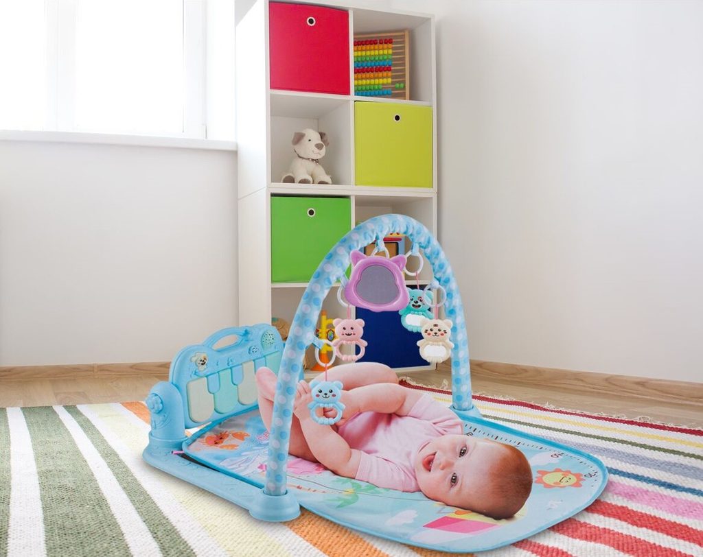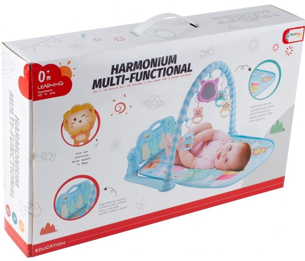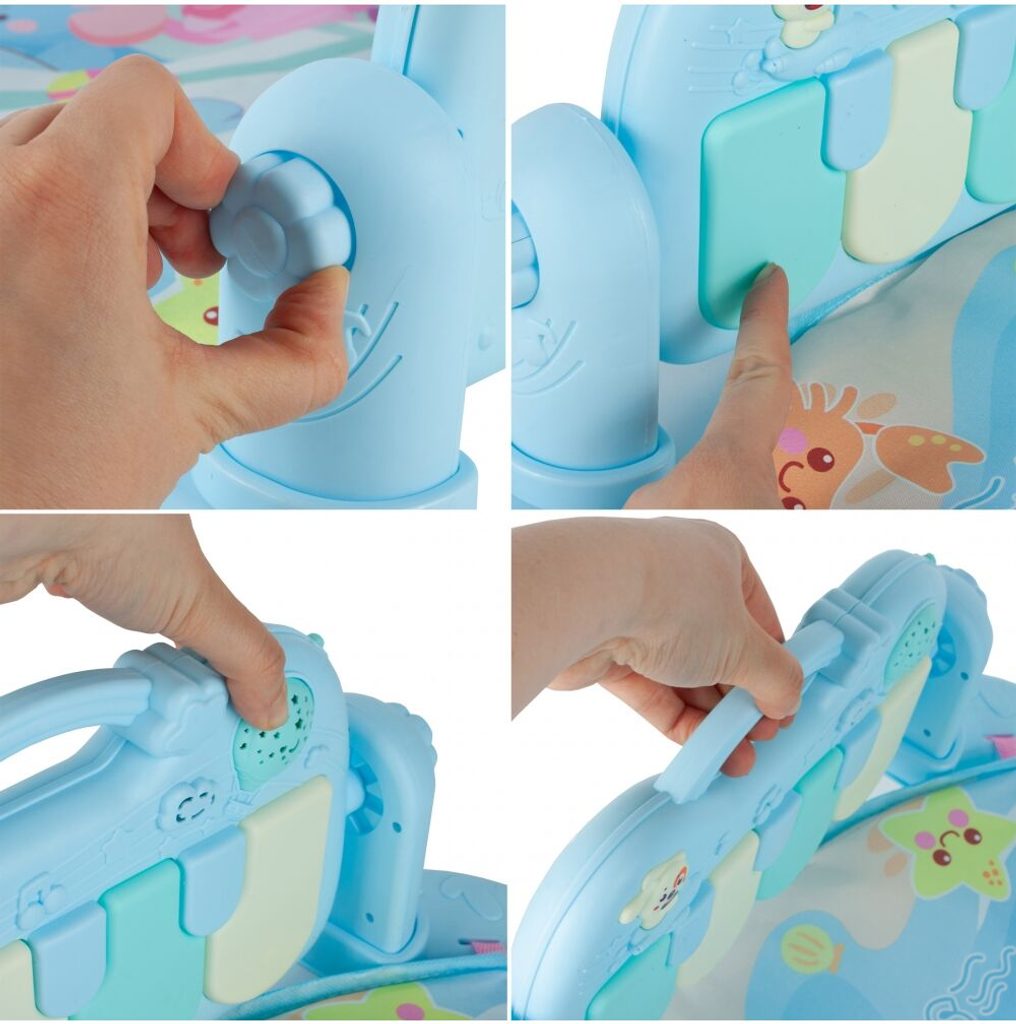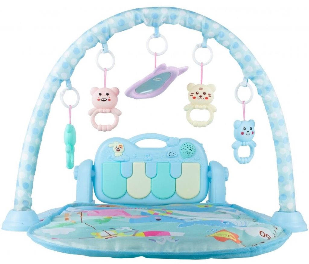 Barevná hrací deka Dráček je určena Vašemu dítěti už od narození. Součástí deky je hrazdička se zavěšenými chrastítky a malinkým zrcadlem a také pianko, které svítí a hraje melodie. Dítě si může v leže hrát s chrastítky a sledovat se u toho v zrcátku a pianko může být využito jako uspávací melodie (0-12 měsíců). Na břiše se dítě naučí zvedat hlavičku a pozorovat věci kolem sebe, pomůže mu k prvním krůčkům a zároveň odděluje dítě od chladné podlahy (6-18 měsíců). Pokud již dítě samostatně sedí může hrát na pianko nebo ho využít jako interaktivní stoleček. Zároveň se tím prohlubuje motorika dítěte, rozvíjí se sluch a zrak (6-36 měsíců).