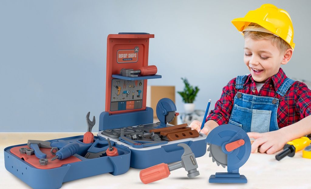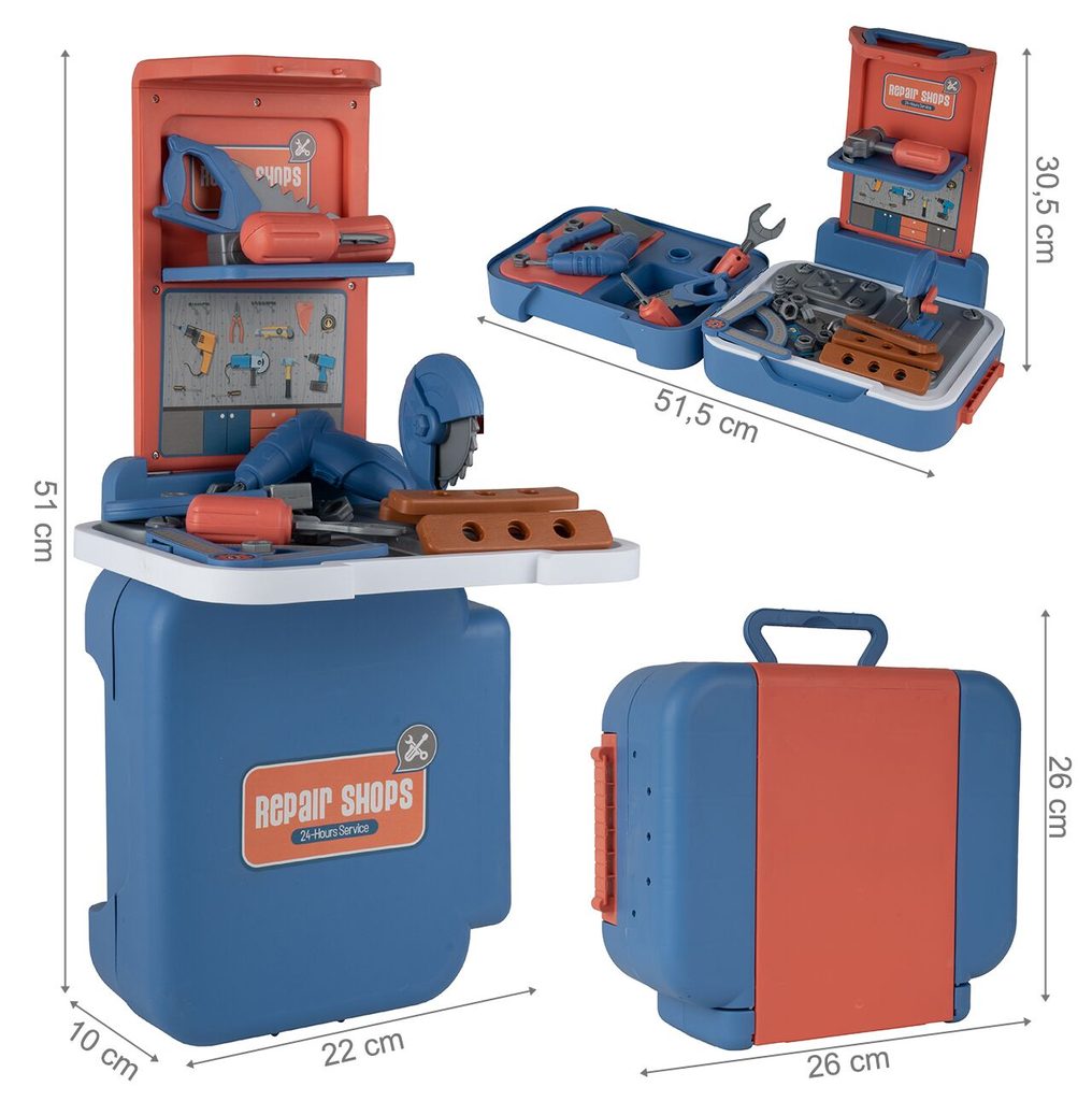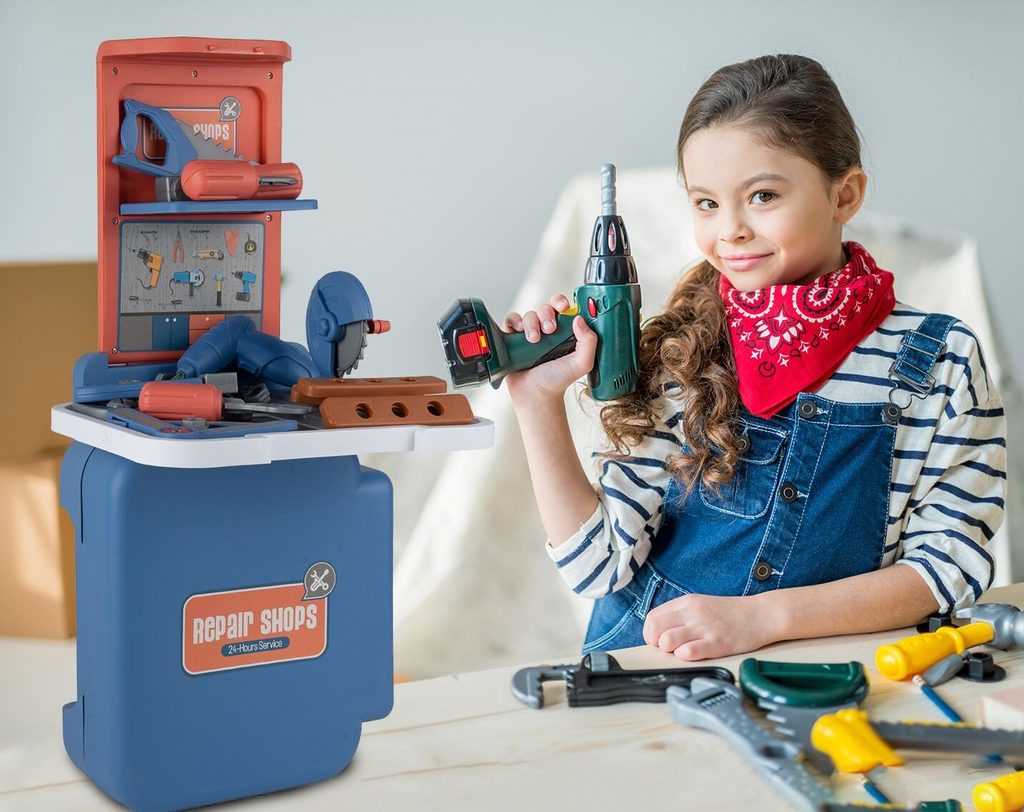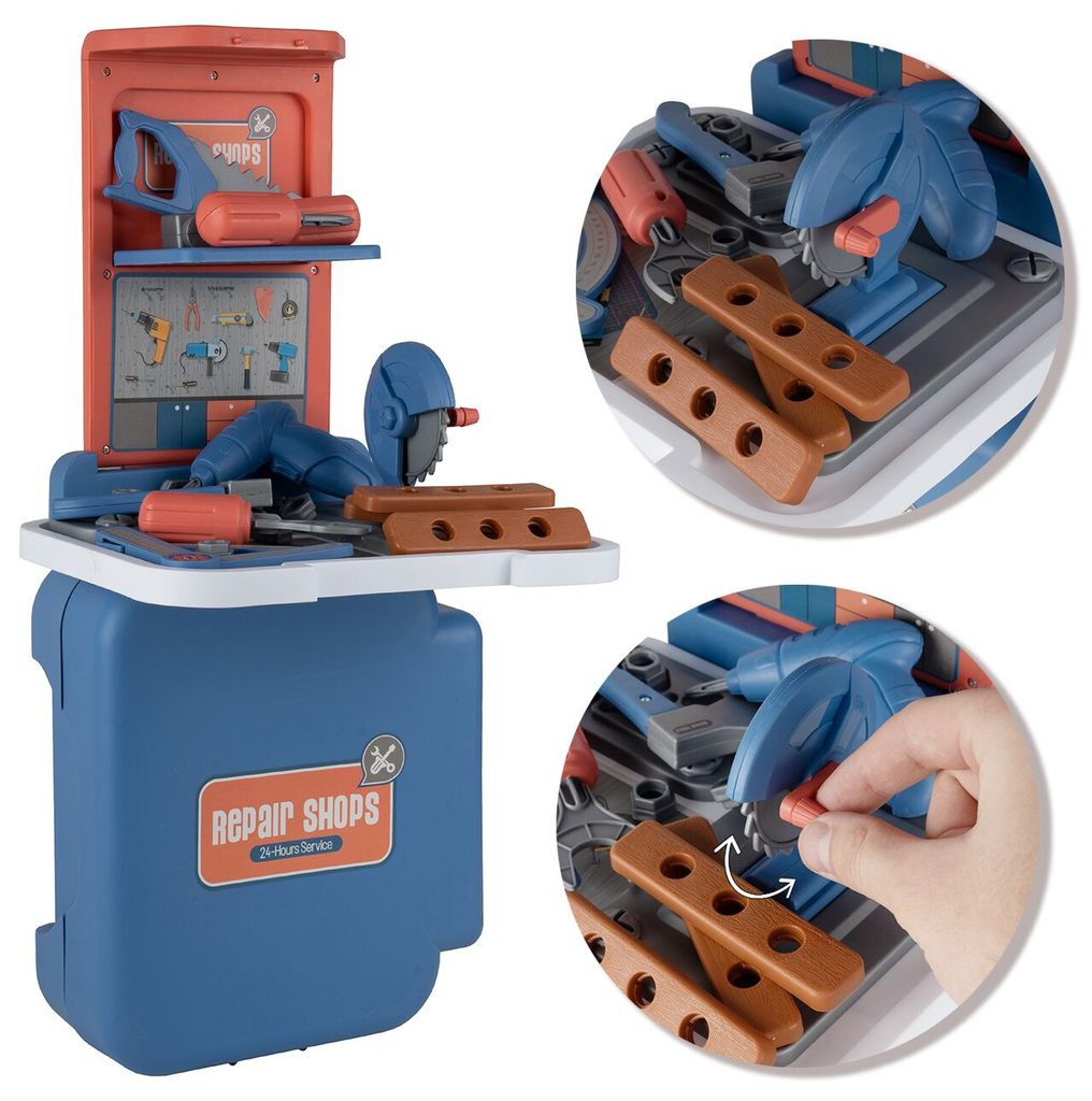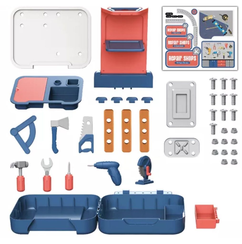 Skládací dětská dílna v kufříčku Repair Shop je určen pro děti od 3 let věku. Je vybavena příslušenstvím jako je kladívko, klíč, šroubovák, matice a šrouby, polička, konstrukční díly a další.. Vaše dítě se určitě s touto hračkou nudit nebude. Nespornou výhodou je možnost složení salónu do kufříku s úchytem. Dítě si ji tak může vzít všude sebou. Je vyroben z plastu v pestrobarevném provedení.