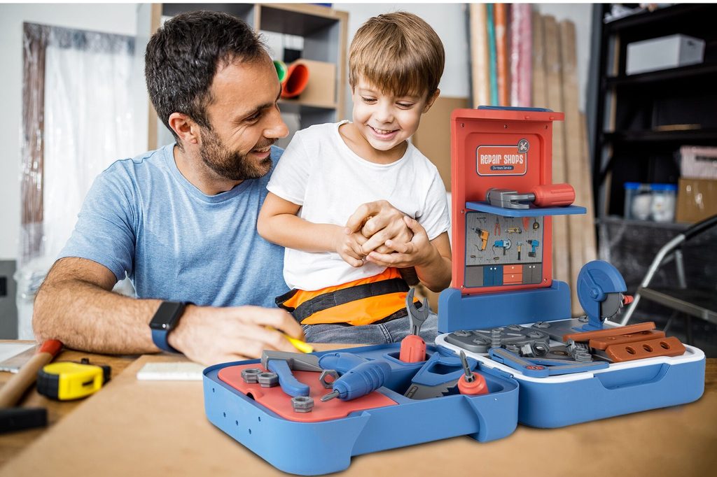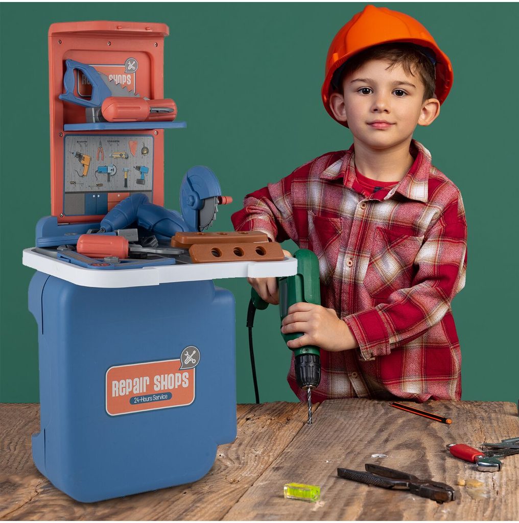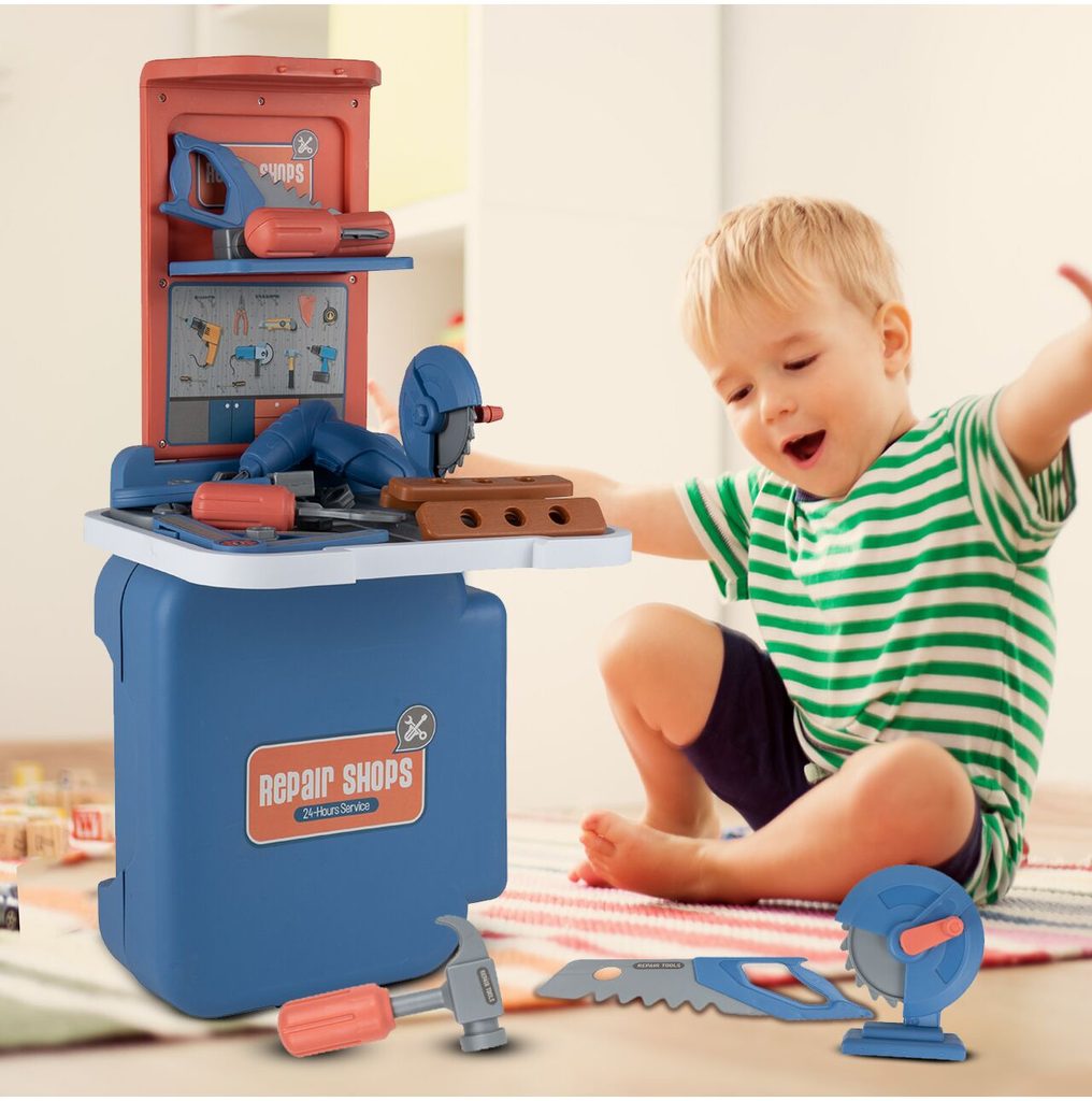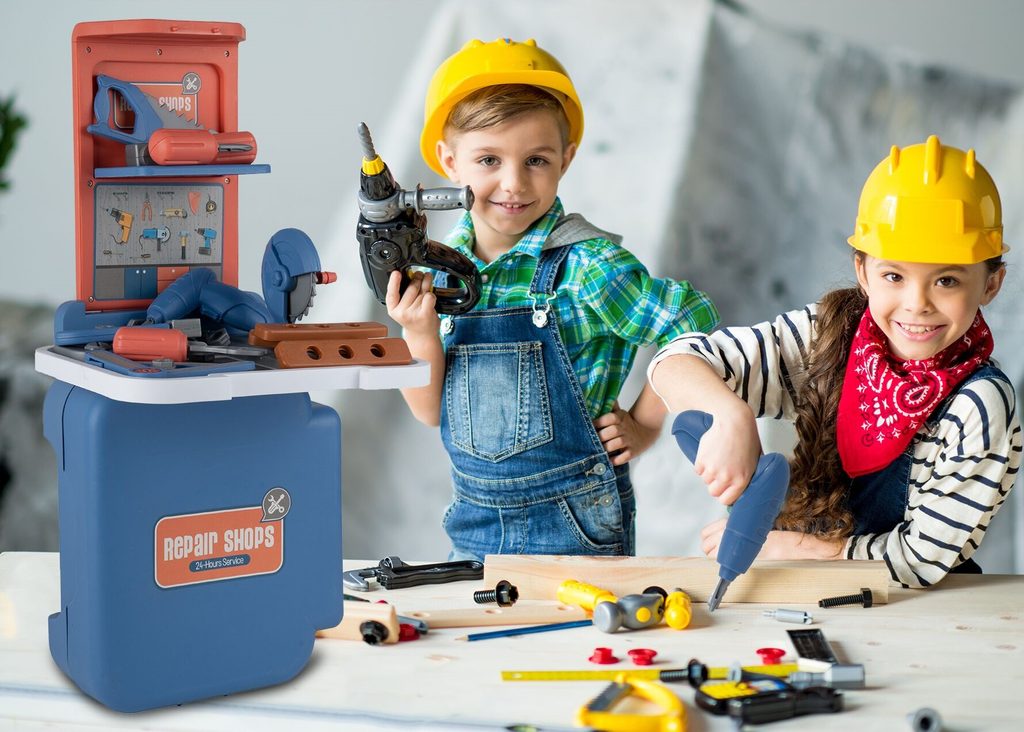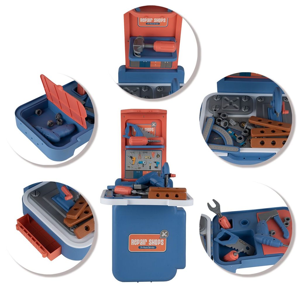 Skládací dětská dílna v kufříčku Repair Shop je určen pro děti od 3 let věku. Je vybavena příslušenstvím jako je kladívko, klíč, šroubovák, matice a šrouby, polička, konstrukční díly a další.. Vaše dítě se určitě s touto hračkou nudit nebude. Nespornou výhodou je možnost složení salónu do kufříku s úchytem. Dítě si ji tak může vzít všude sebou. Je vyroben z plastu v pestrobarevném provedení.