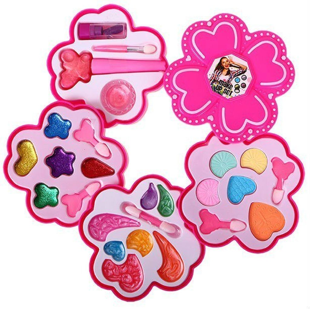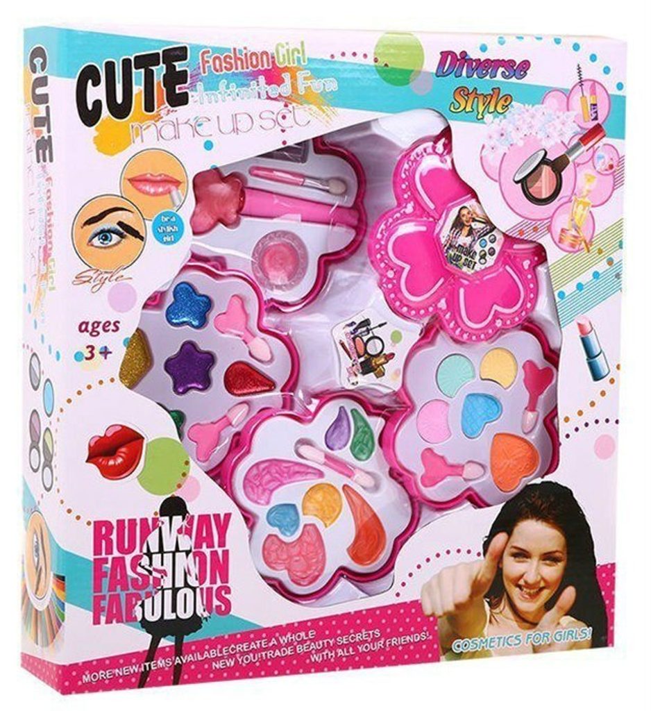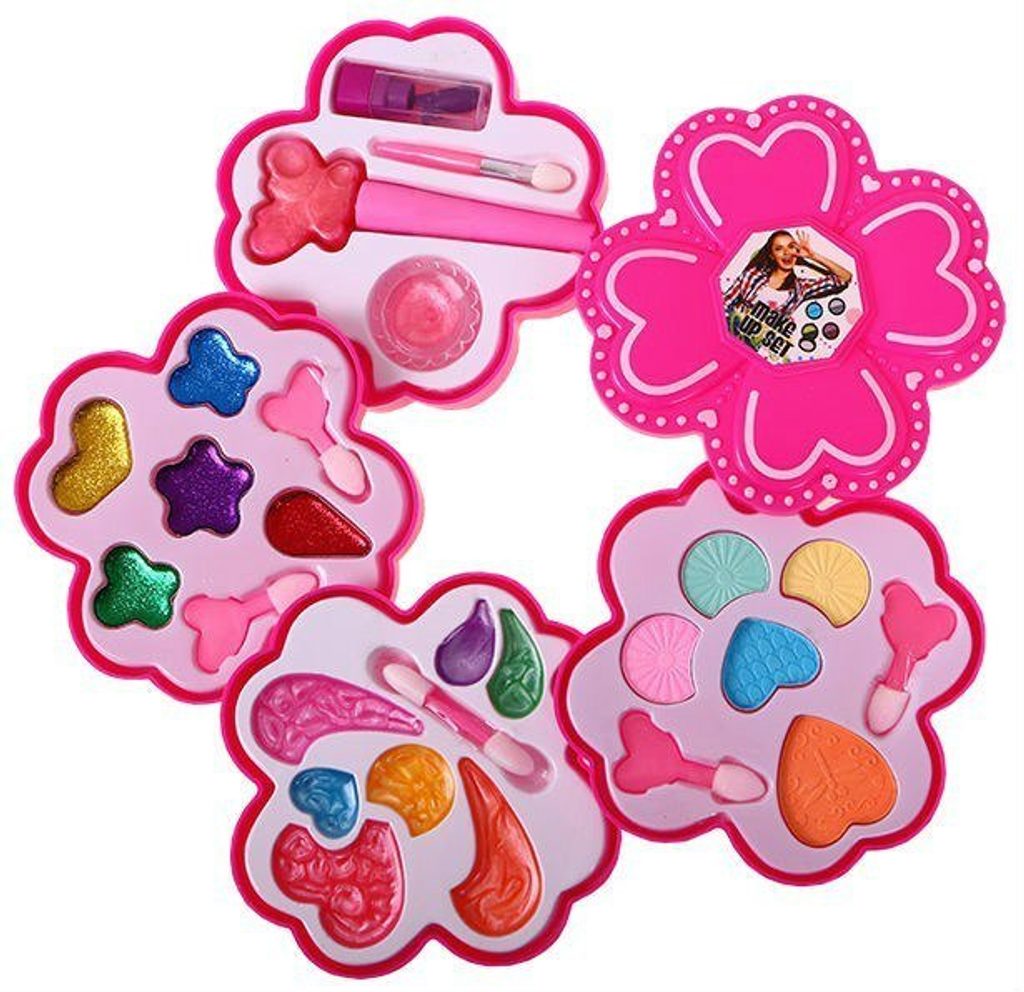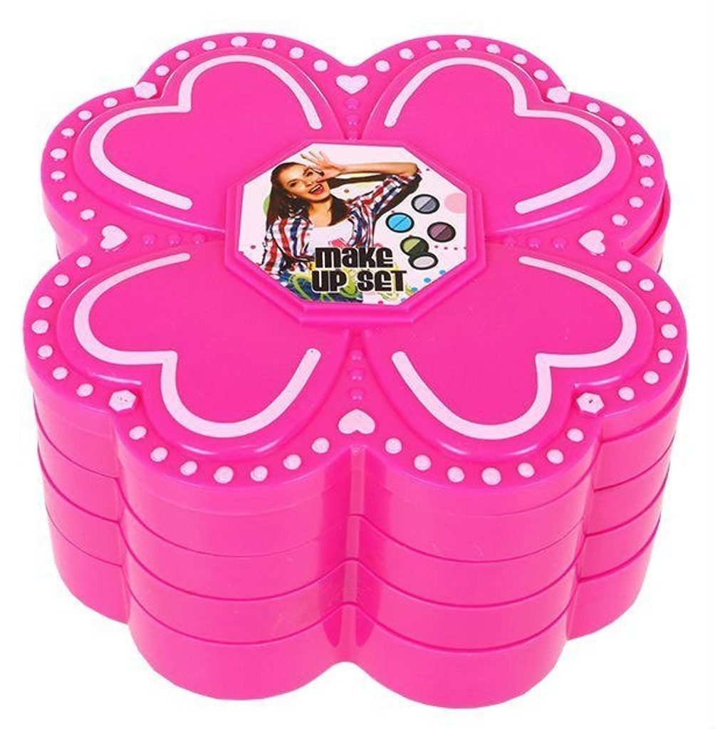 Kompletní sada dětského líčení v rozkládací kazetě se 4 patry a víčkem je ideální hračkou pro každou malou princeznu, která zde najde vše potřebné pro líčení. Krabičku lze jednoduše složit a přenášet. Součástí setu je několik typů očních stínů, lak a lesk na rty a samozřejmě štětečky na nanášení líčidel. Vše je vyrobeno z bezpečných materiálů. Make-up lze jednoduše odstranit vatovými tampónky namočenými v mýdlovém roztoku. Hračka je vyrobená z plastu v pestrobarevném provedení a určena pro děti od 3 let.