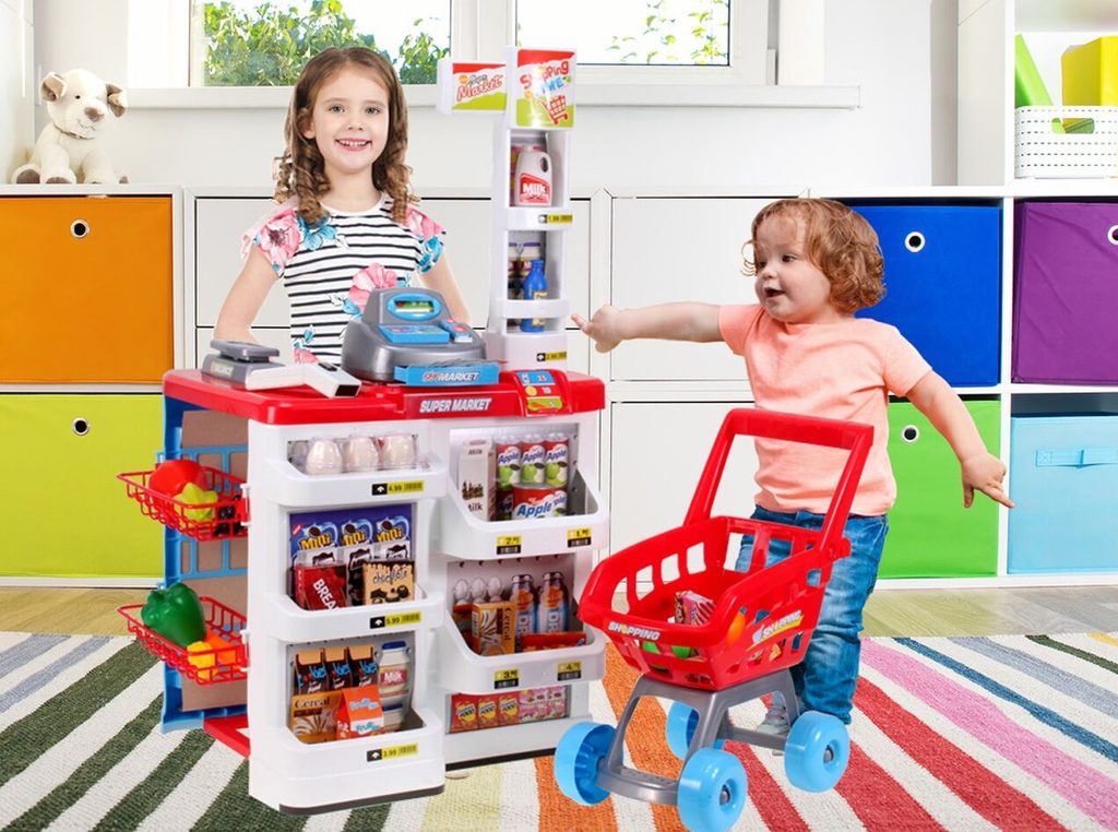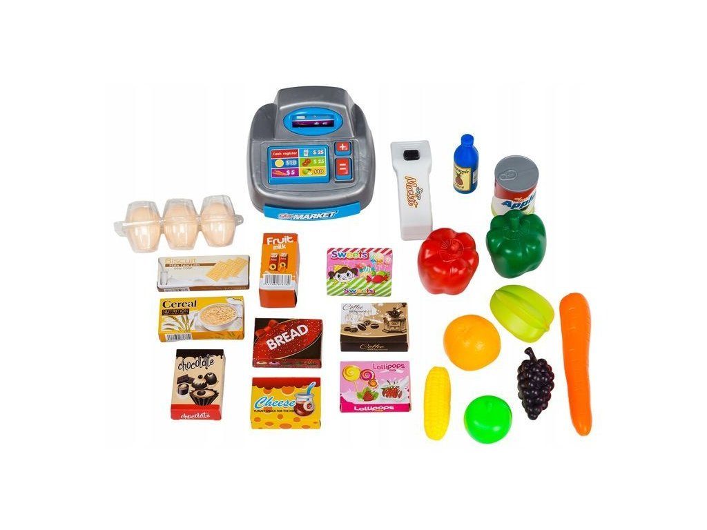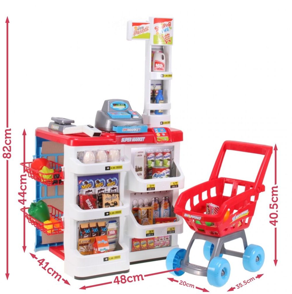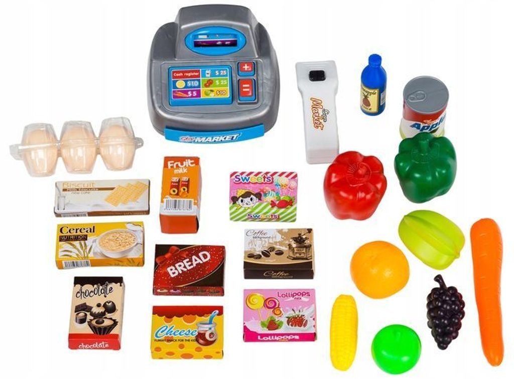 Dětský obchůdek Ecotoys s nákupním vozíčkem přemění Vaše dítě ve skutečného prodavače. Je vybaven vším důležitým co takový malý obchodník potřebuje. Najdete zde pokladnu s tlačítky, váhu, čtečku čárových kodu, která svítí a vydává charakteristický zvuk, imitace ovoce zeleniny, bankovky a také různé balení potravin. Obchůdek má samozřejmě police, kde může být vše přehledně vystaveno. Hračka je určena pro děti od 36 měsíců věku.