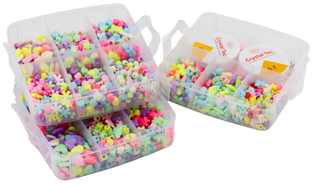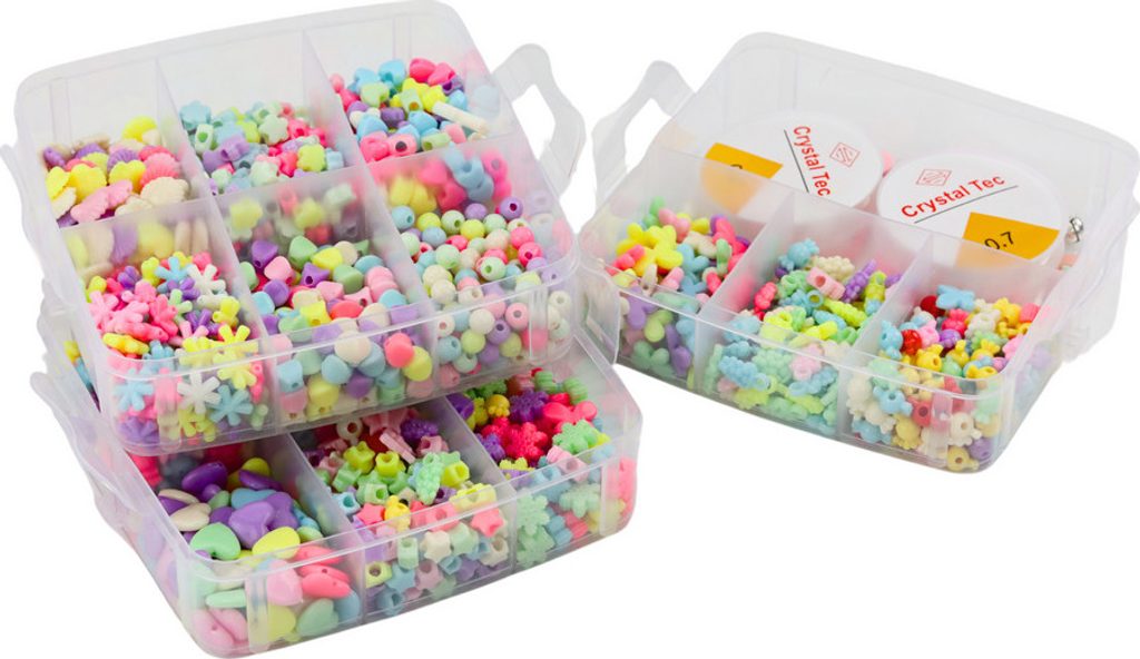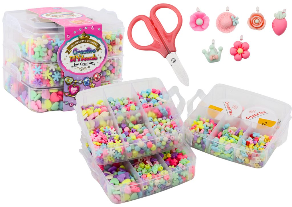 Velká sada korálků pro výrobu šperků a bižuterie DIY Beads. Sada obsahuje celke mnoho druhů korálků v různých tvarech a barevných provedeních, šnůrky na navlékaní a přívěsky. Zabavte sebe i své dítě touto velkou kreativní sadou korálků a výsledkem se můžete pochlubit všem okolo. Vše je uloženo v plastovém boxu s přihrádkami. Hračka je vyrobená z plastu v pestrobarevném provedení a určena pro děti od 6 let.