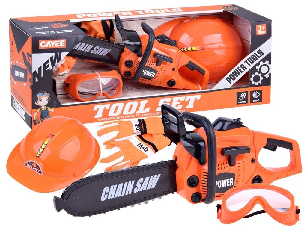 Sestava Malý dřevorubec je ideální hračkou pro každého malého pomocníka na zahradě nebo i doma. Součástí sestavy jsou kromě pily také ochranné pomůcky bez kterých se správný dřevorubec neobejde. Najde zde ochranné brýle, rukavice a helmu. Pila má otočný gumový pás, který imituje řetěz. Při práci vydává pila zvuky skutečného řezání. Hračka je určena pro děti od 36 měsíců věku.