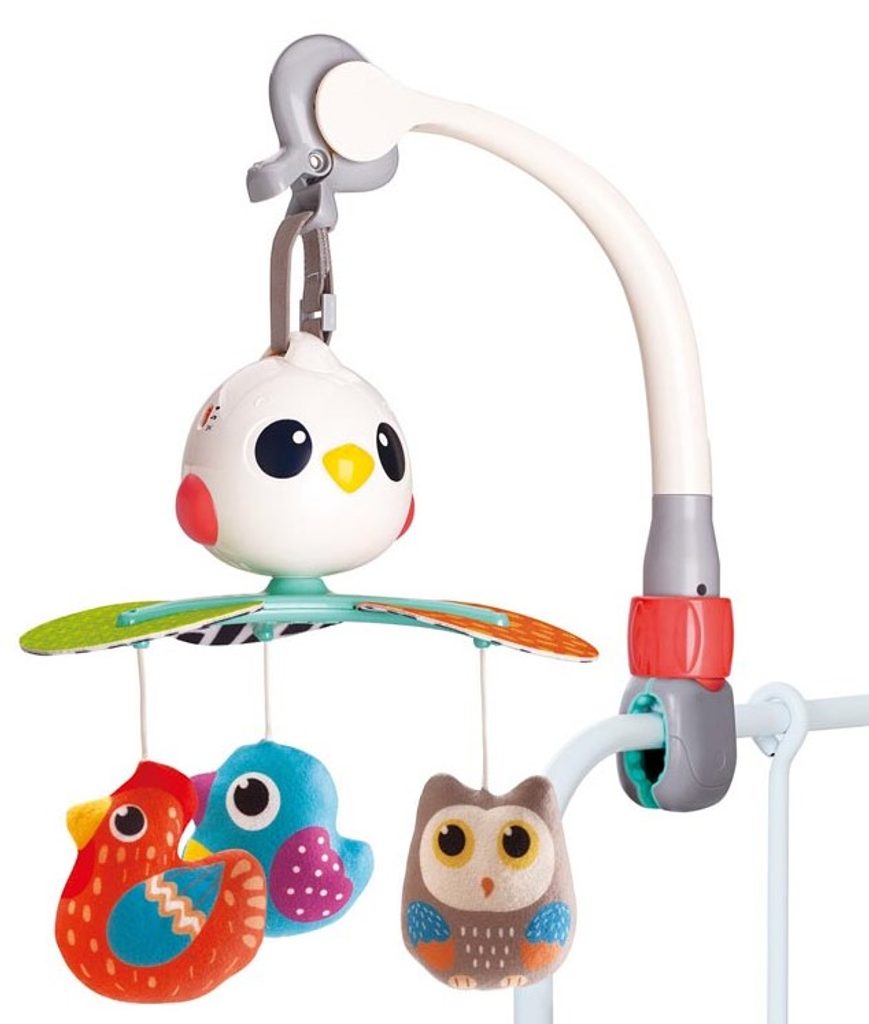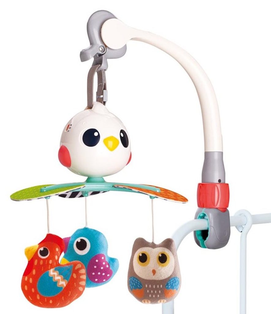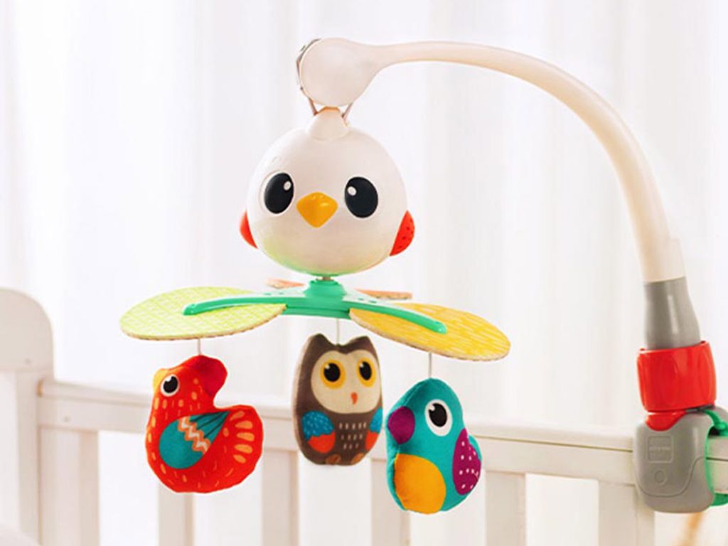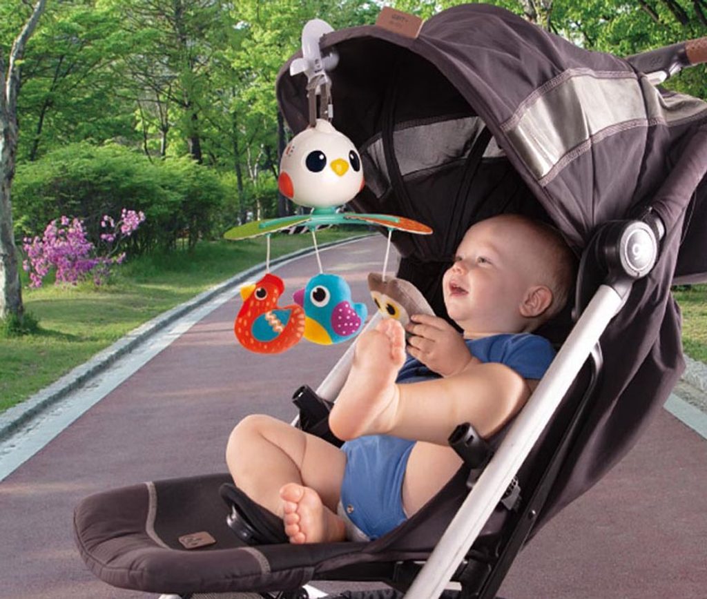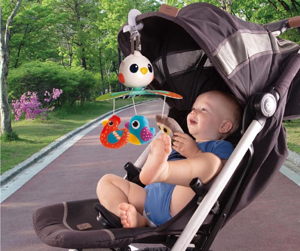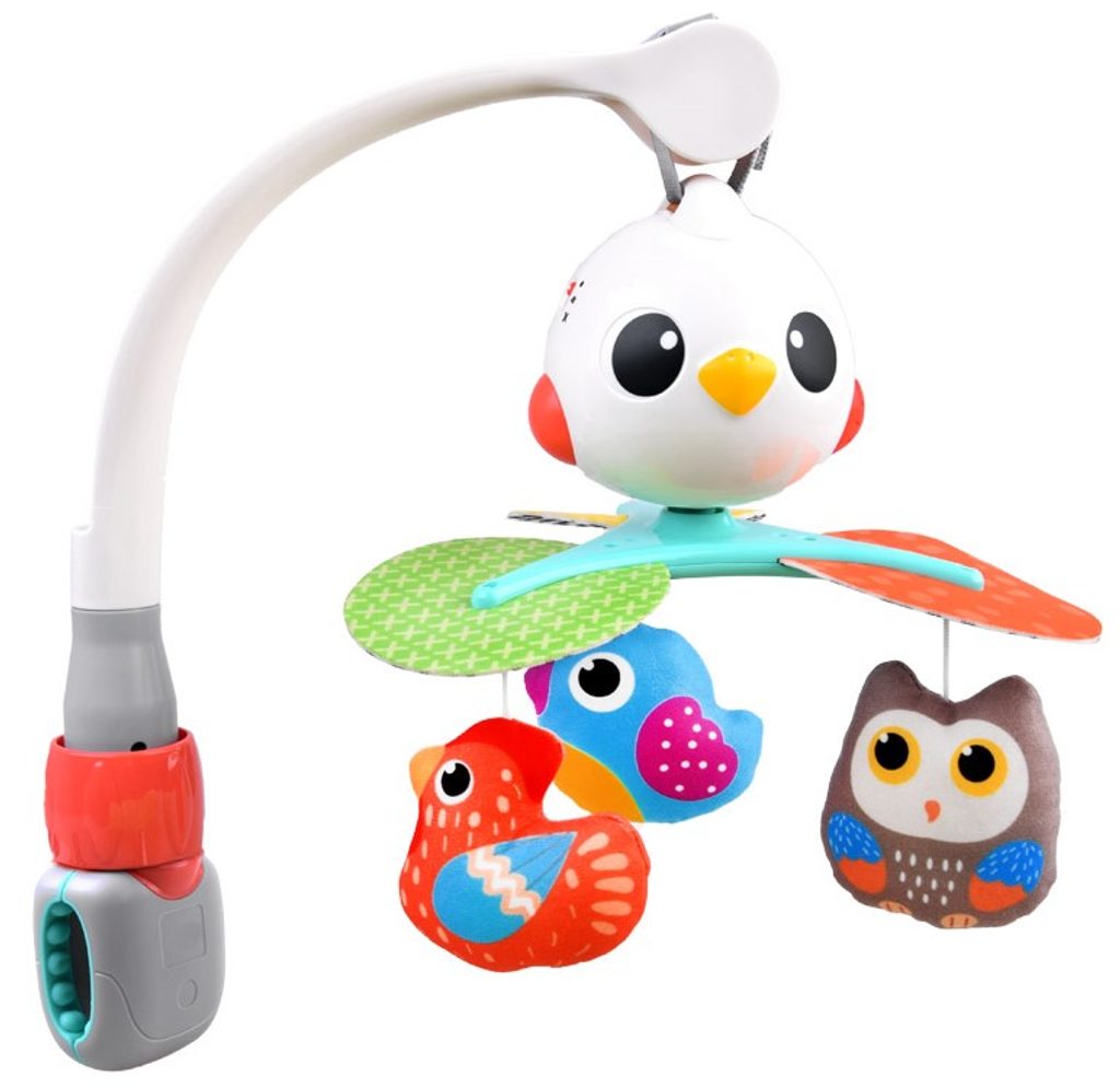 Nádherný dětský kolotoč Huile Toys Bird Toys se 3 zavěšenými plyšovými hračkami ve tvaru ptáčků je ideální pro děti od narození. Díky univerzálnímu úchytu se snadno umístí nad autosedačku, kočárek nebo nad postýlku. Je vybaven uklidňujícími melodiemi, které lze vypnout a kolotoč se tak otáčí bez zvuku.