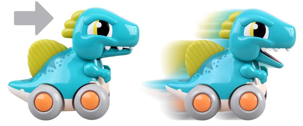 Zábavný barevný dinosaurus na setrvačník Huile Toys je ideální hračkou pro ty nejmenší děti. Během jízdy se otevírá a zavírá tlamička. Pohon zajišťuje setrvačník, stačí pouze autíčko. Hračka je určena pro děti od 12 měsíců věku.