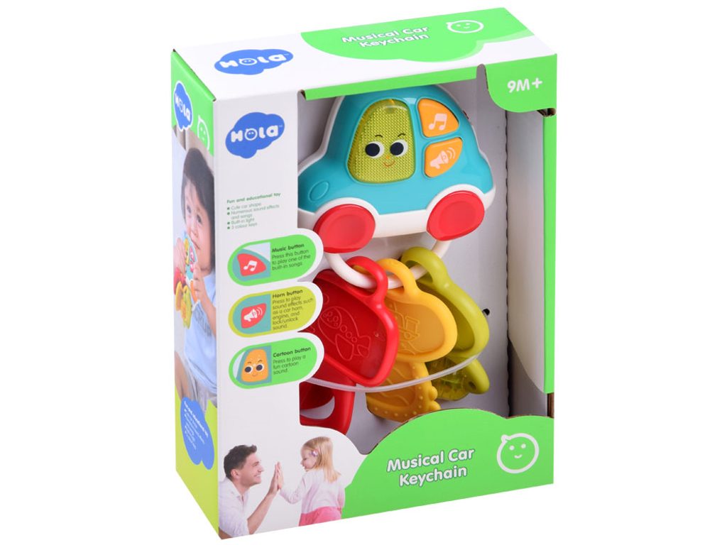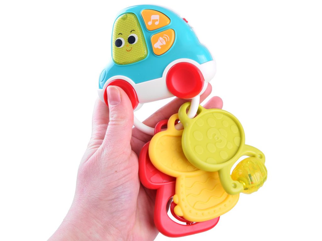 Interaktivní dětské klíče Car Keychain jsou určeny pro děti od 9 měsíců věku. Tato hračka má pozitivní vliv na rozvoj sluchového a zrakového vnímání dítěte. Na klíči jsou tři hudební tlačítka: megafon, smajlík a nota. Po stisknutí těchto tlačítek se spouštějí různé melodie a zvuky. Všechny potom doprovází blikající světýlko. Součástí jsou také 3 plastové klíče s různými funkcemi. Hračka je vybavena dvoustupňovou regulací hlasitosti.