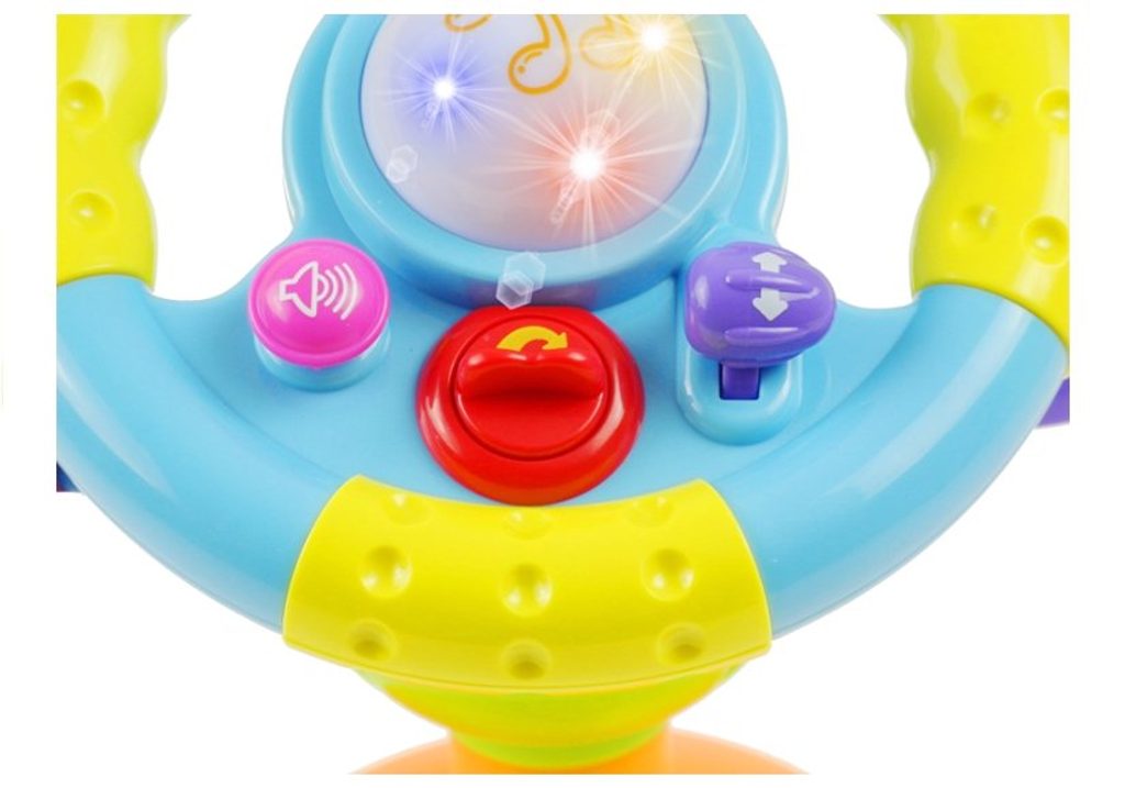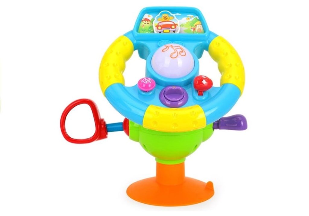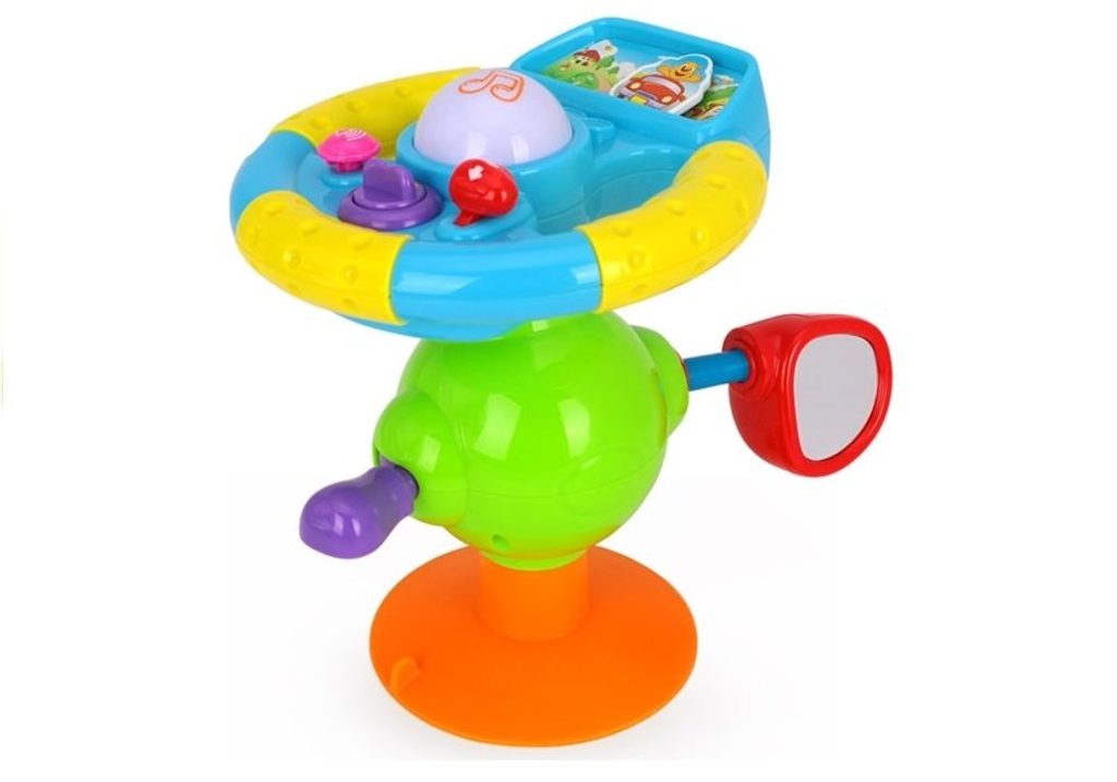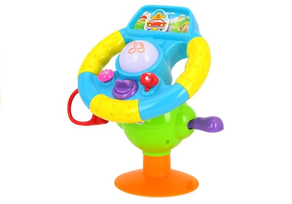 Interaktivní volant se zvuky a světly Huile Toys je ideální hračkou pro ty nejmenší děti. Umožní dítěti rozvíjet hmat, zrak a sluch. Volant je vybavený různými tlačítky, které spouští melodie, zvuky klaksonu, jedoucího auta a couvání. Praktická přísavka ve spodní části umožňuje umístění hračky na různé povrchy. Boční zpětné zrcátko je nastavitelné. Funkce vypnuto/zapnuto. Hračka je určena pro děti od 18 měsíců věku.