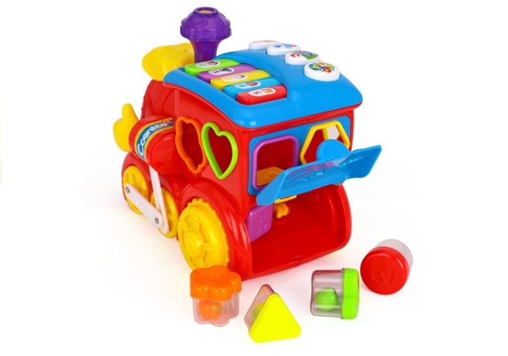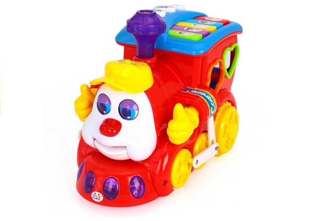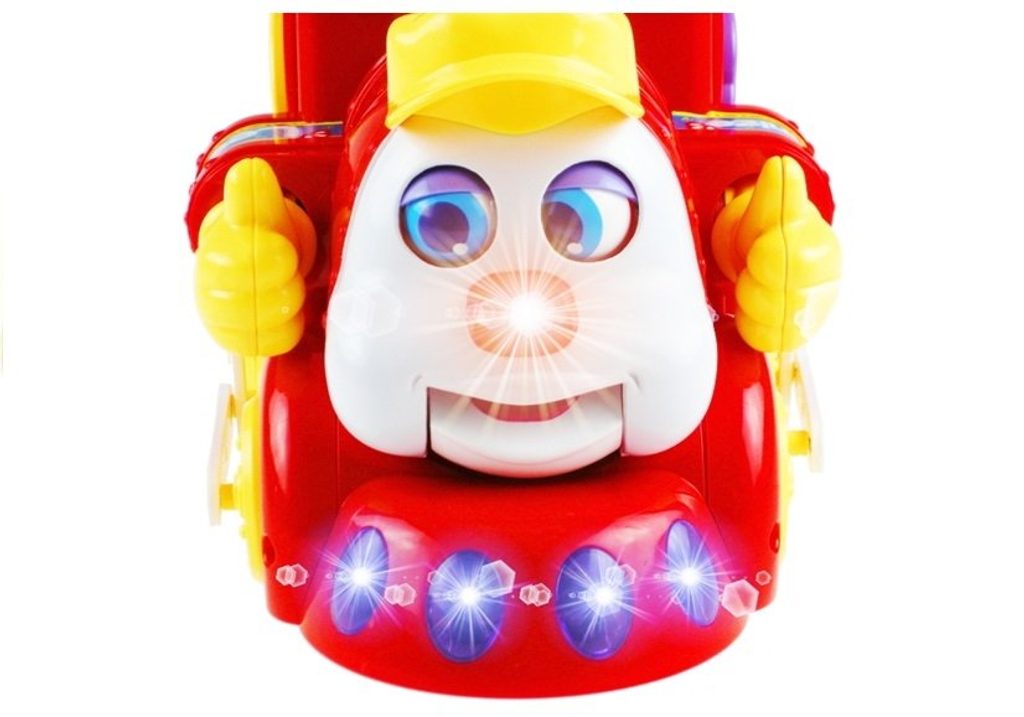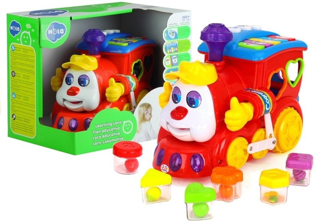 Veselá lokomotiva Happy Loco se zvuky a světly Huile Toys je ideální hračkou pro ty nejmenší děti. Během jízdy lokomotiva svítí, spouští melodie a hýbe komínkem, očičky a ručkami. Na střeše je umístěna klávesnice s několika funkcemi a 3 tlačítka pro nauku písmen a frází. Lokomotiva slouží zároveň jako vkládačka kdy součástí balení je 6 kusů barevných kostek. Každá má uvnitř jiný druh ovoce a na horní straně jsou vyobrazeny písmena a číslice. Lokomotiva umožní dítěti rozvíjet hmat, zrak, motoriku, sluch a angličtinu. V kabině jsou umístěny vkládací otvory a uvnitř je prostor pro uložení kostek. kostkám. Hračka je určena pro děti od 18 měsíců věku.