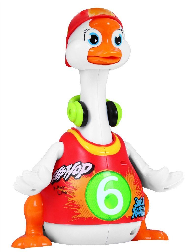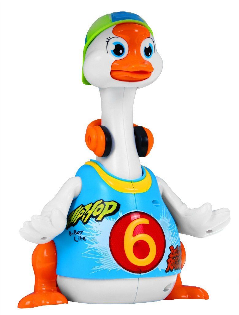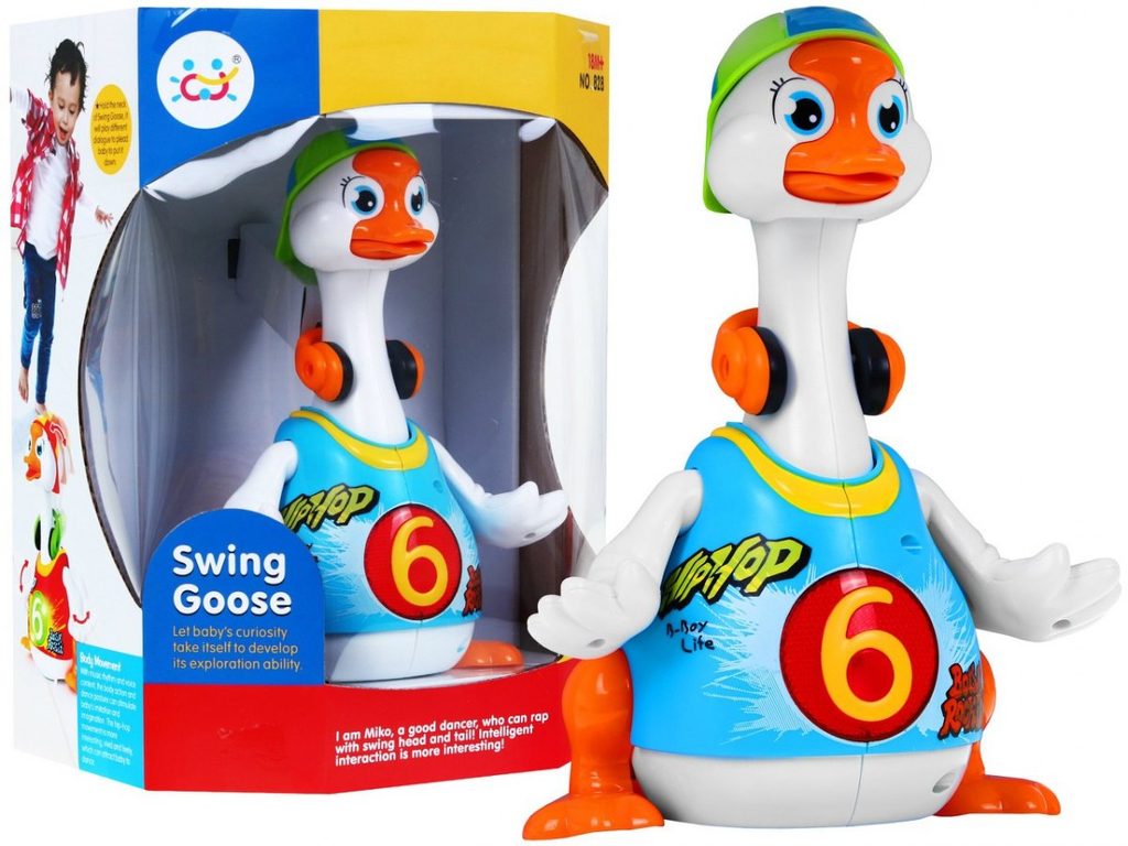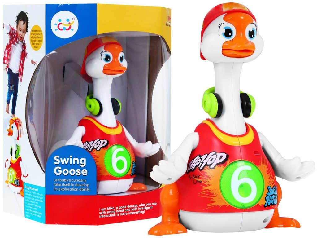 Interaktivní zpívající husa Swing Goose Huile Toys je ideální hračkou pro ty nejmenší děti. Umožní dítěti rozvíjet hmat, zrak, sluch a také angličtinu. Hračka má uloženy 3 hip-hopové skladby v angličtině. Ty se spustí po zapnutí hračky spolu s tanečními pohyby a hýbání zobáčkem. Po ukončení cyklu se hračka zastaví a opět se dá spustit povytažením krku husy. Hračka je určena pro děti od 18 měsíců věku.