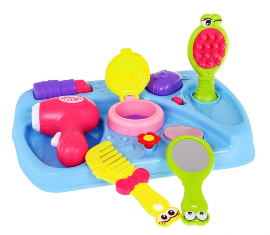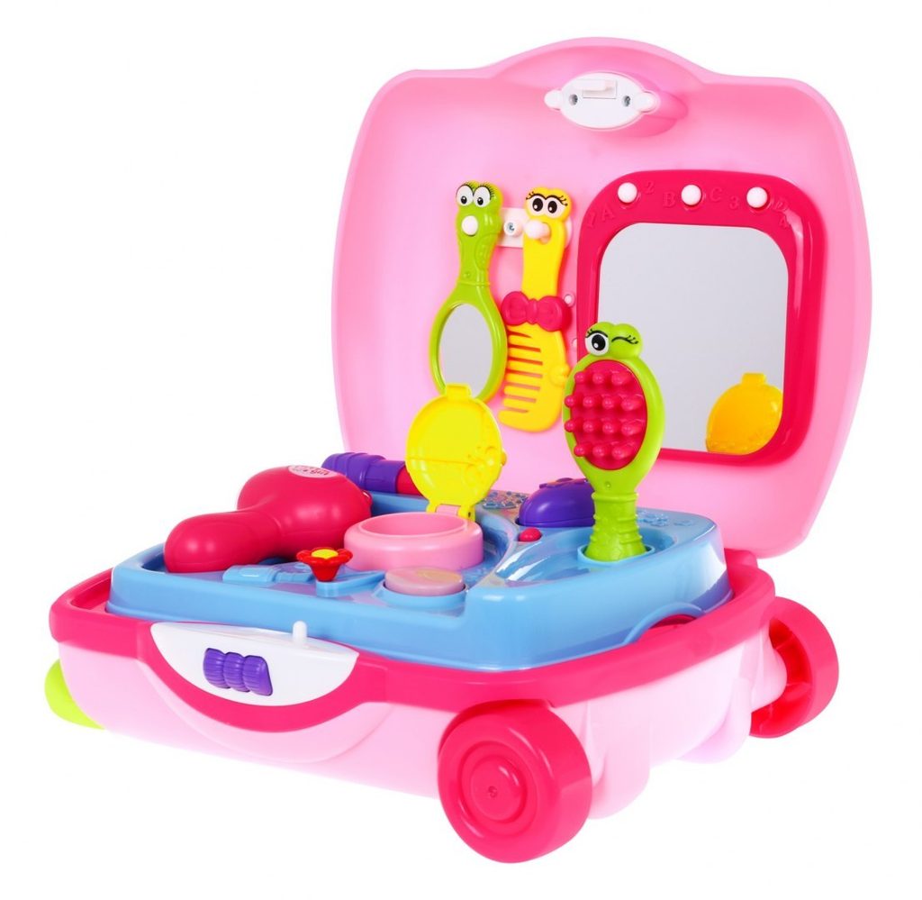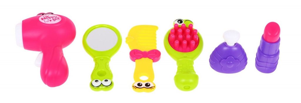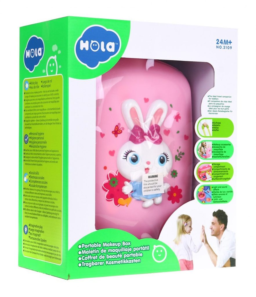 Toaletní stoleček v kufříku s kolečky Huile Toys Makeup Box je ideální hračkou pro každou malou princeznu. V horní části je umístěna rukojeť pro snadné přemísťování. Stoleček lze jednoduchým způsobem vyjmout a po skončení hry ho vrátit zpět do kufříku. Je vybavený světelnými a zvukovými efekty. Hlasitost lze regulovat. Holčička uvnitř najde malé a velké zrcadlo, hřeben, šperkovnici, kartáč, fén, atrapy rtěnky a parfému. Kufřík umožní dítěti rozvíjet hmat, zrak, motoriku, představivost a sluch. Hračka je určena pro děti od 24 měsíců věku.