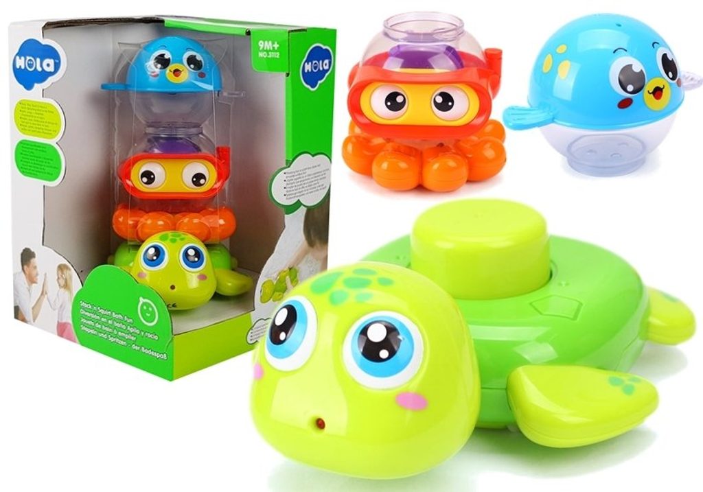 Sada vodních hraček Huile Toys Bath Animal je ideální hračkou pro ty nejmenší děti pro překonání prvotního strachu z vody. Sada je vhodná do koupelny i do dětských bazénků. Skládá se ze 3 vodních zvířátek, veselé želvy, barevné hvězdice a modré rybky. Součástí rybky je nádobka kterou lze přelévat vodu přes hvězdici. Veselá želva má tlačítko, které spouští její pohyb. Pro snadné umístění je hračka vybavena přísavkami. Hračka je určena pro děti od 9 měsíců věku.