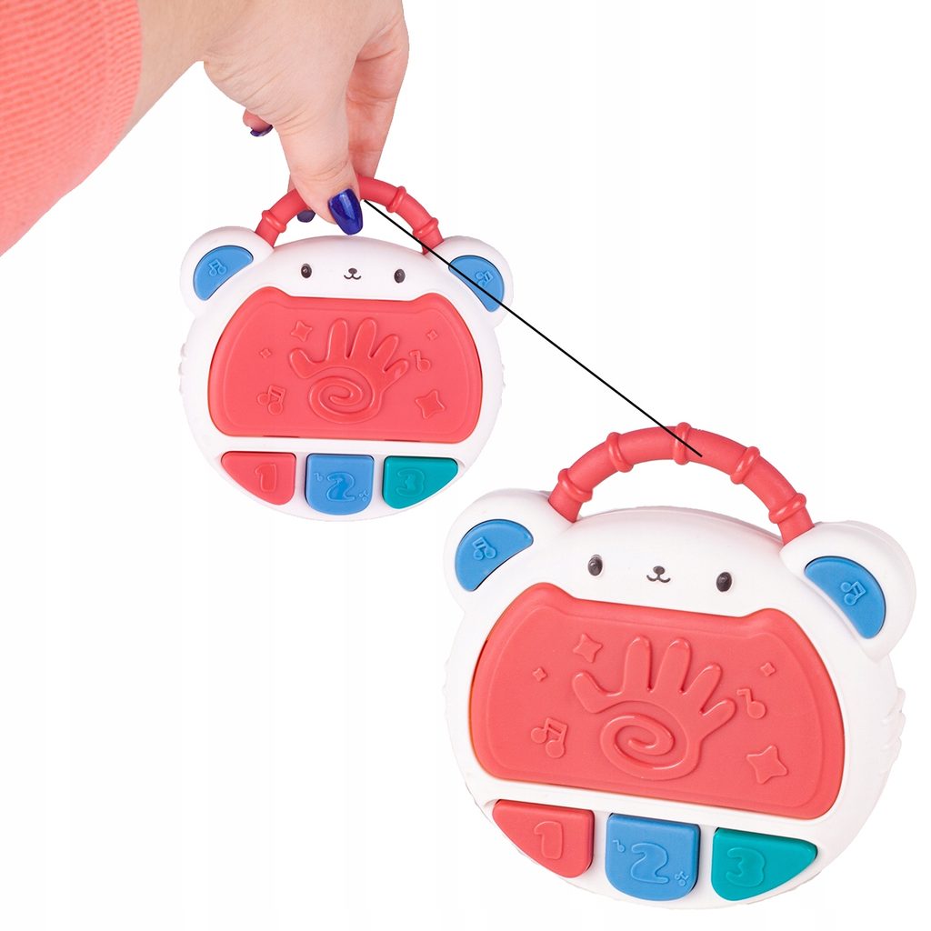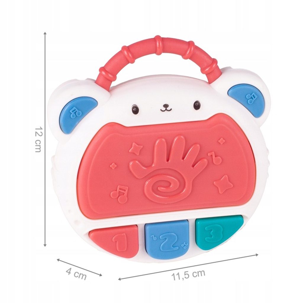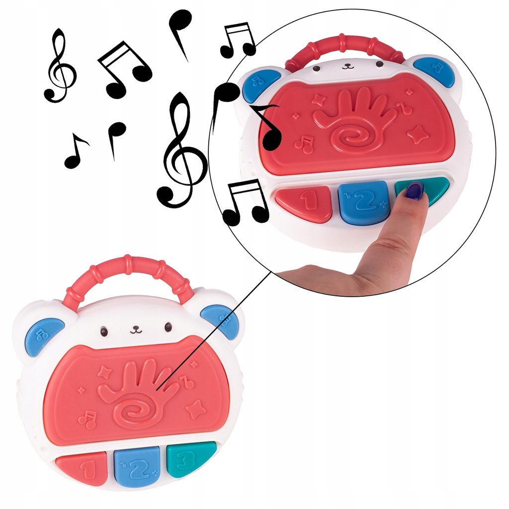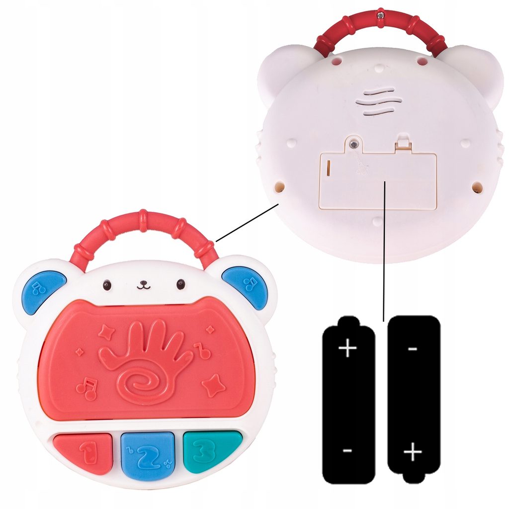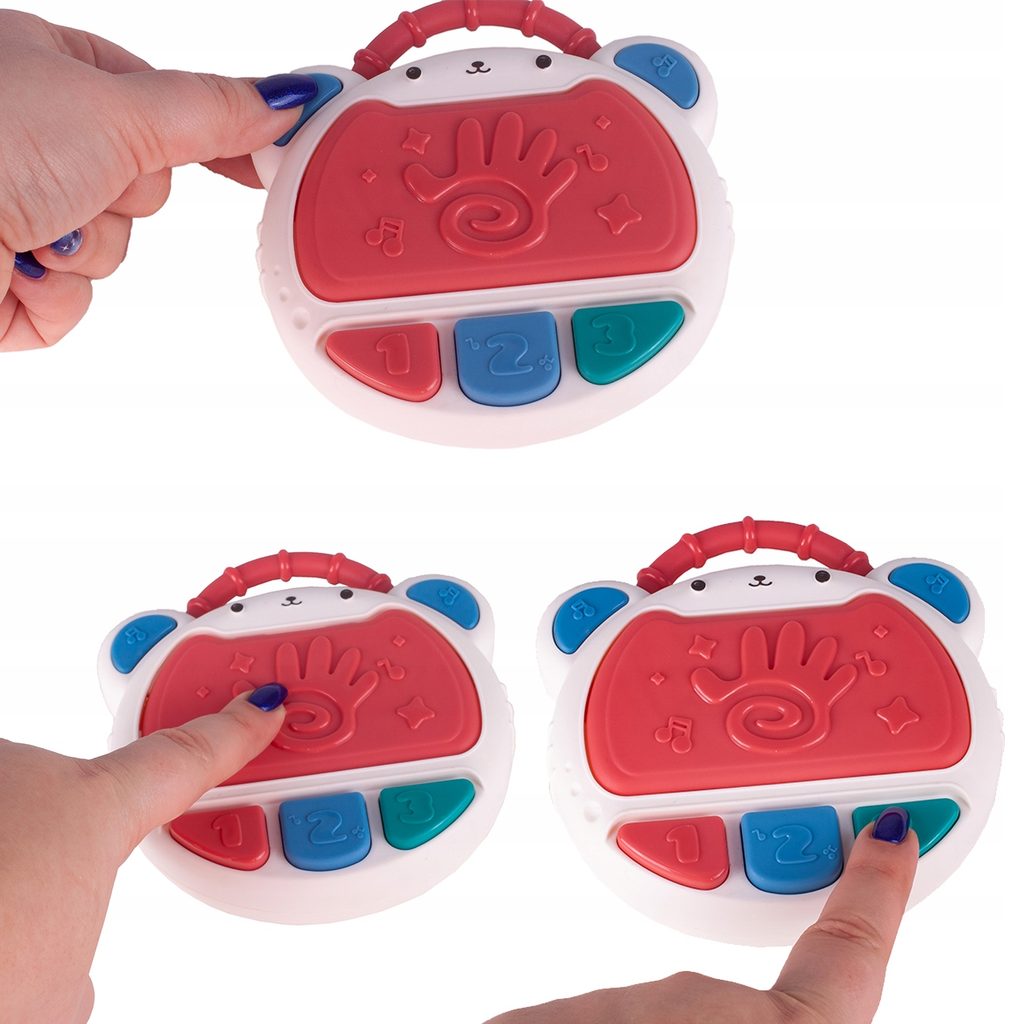 Interaktivní hrající bubínek Myška je určen pro ty nejmenší děti. Je vybaven několika druhy zvuků a melodií. Úderem na různá místa bubínku se spouštějí zářivá světýlky. Bubínek je ideální hračkou pro rozvoj dětské motoriky, hmatu, zraku, logického myšlení a  rozpoznávání zvuků. Hračka je určena pro děti od 18 měsíců věku.