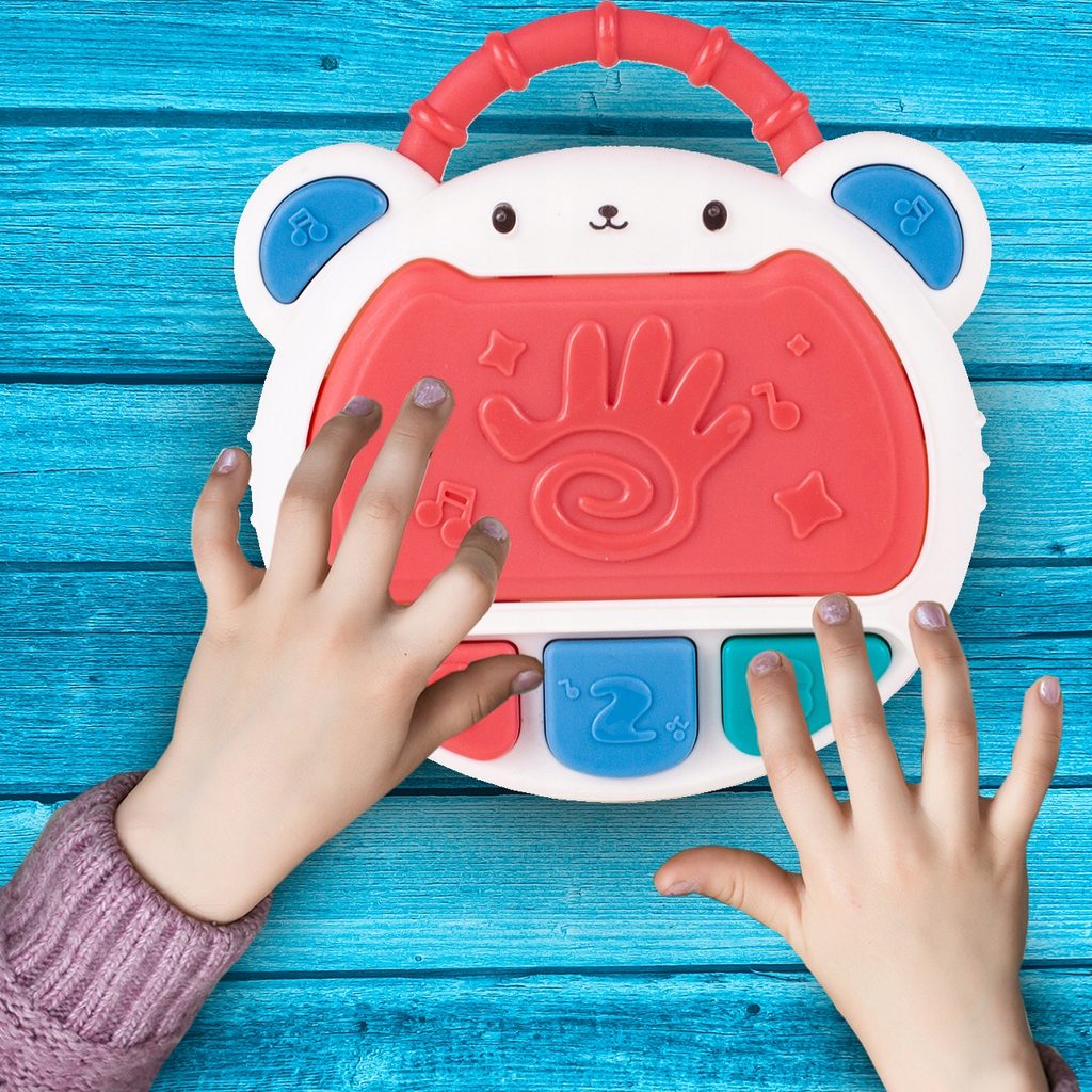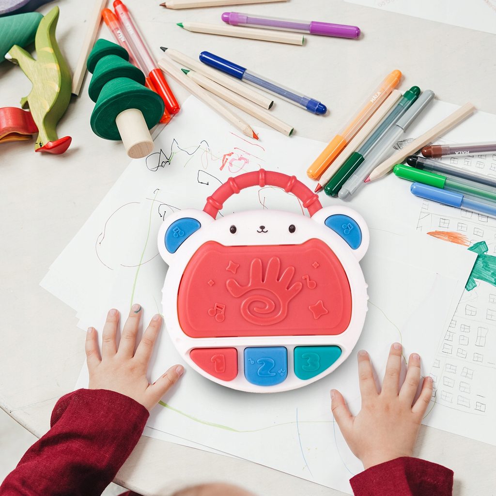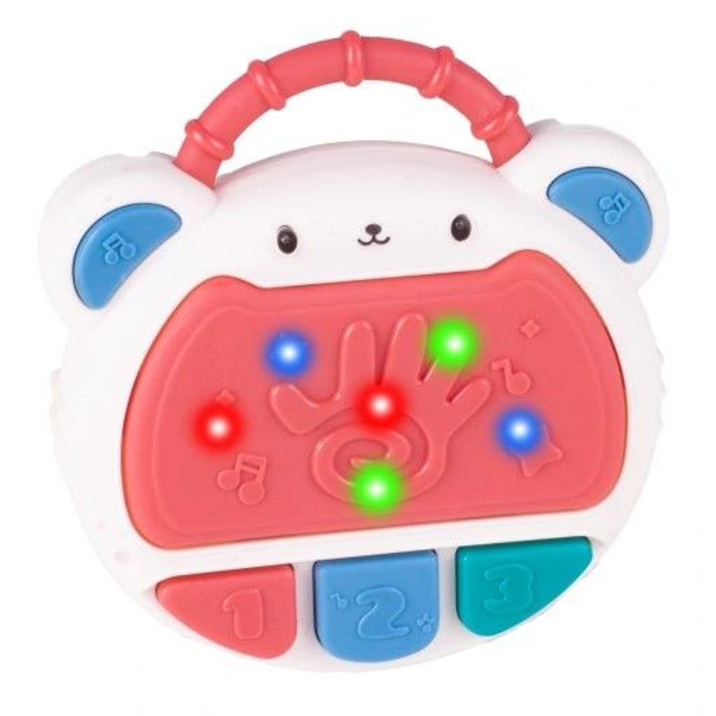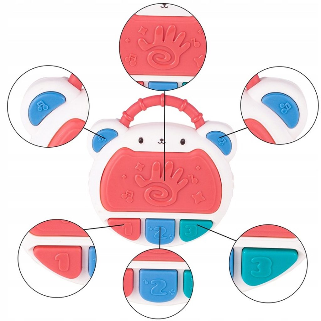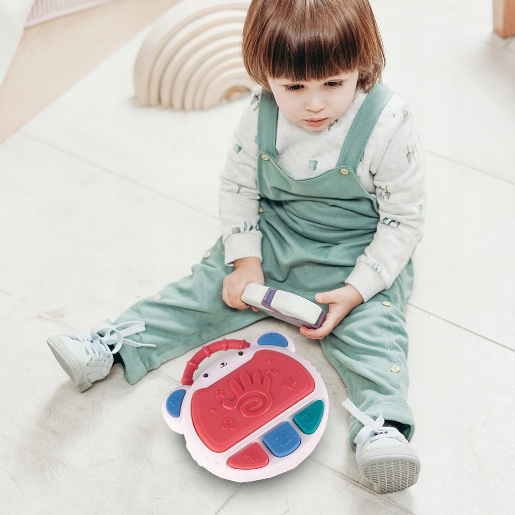 Interaktivní hrající bubínek Myška je určen pro ty nejmenší děti. Je vybaven několika druhy zvuků a melodií. Úderem na různá místa bubínku se spouštějí zářivá světýlky. Bubínek je ideální hračkou pro rozvoj dětské motoriky, hmatu, zraku, logického myšlení a  rozpoznávání zvuků. Hračka je určena pro děti od 18 měsíců věku.