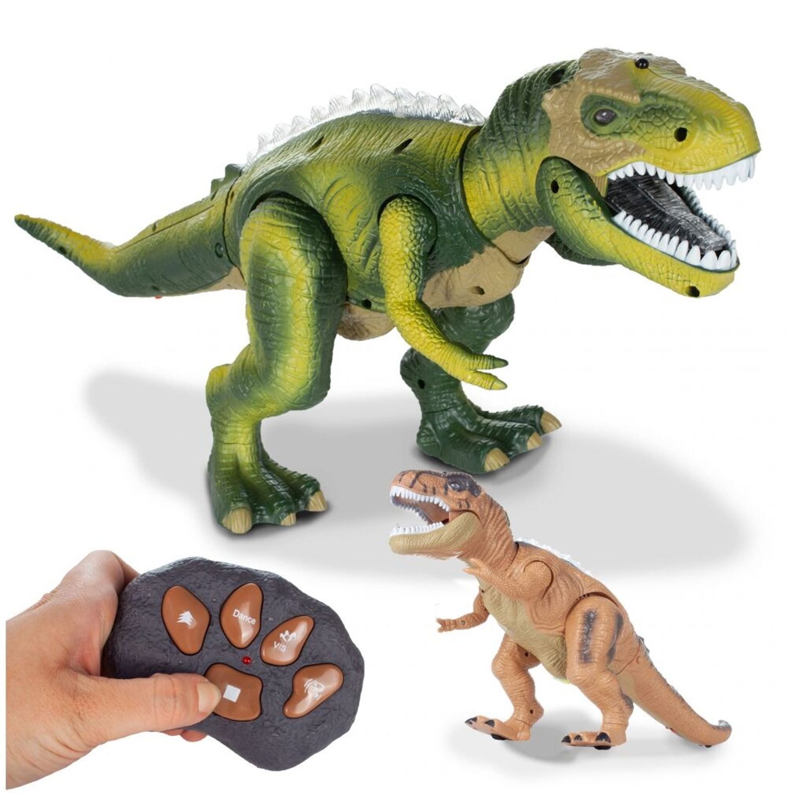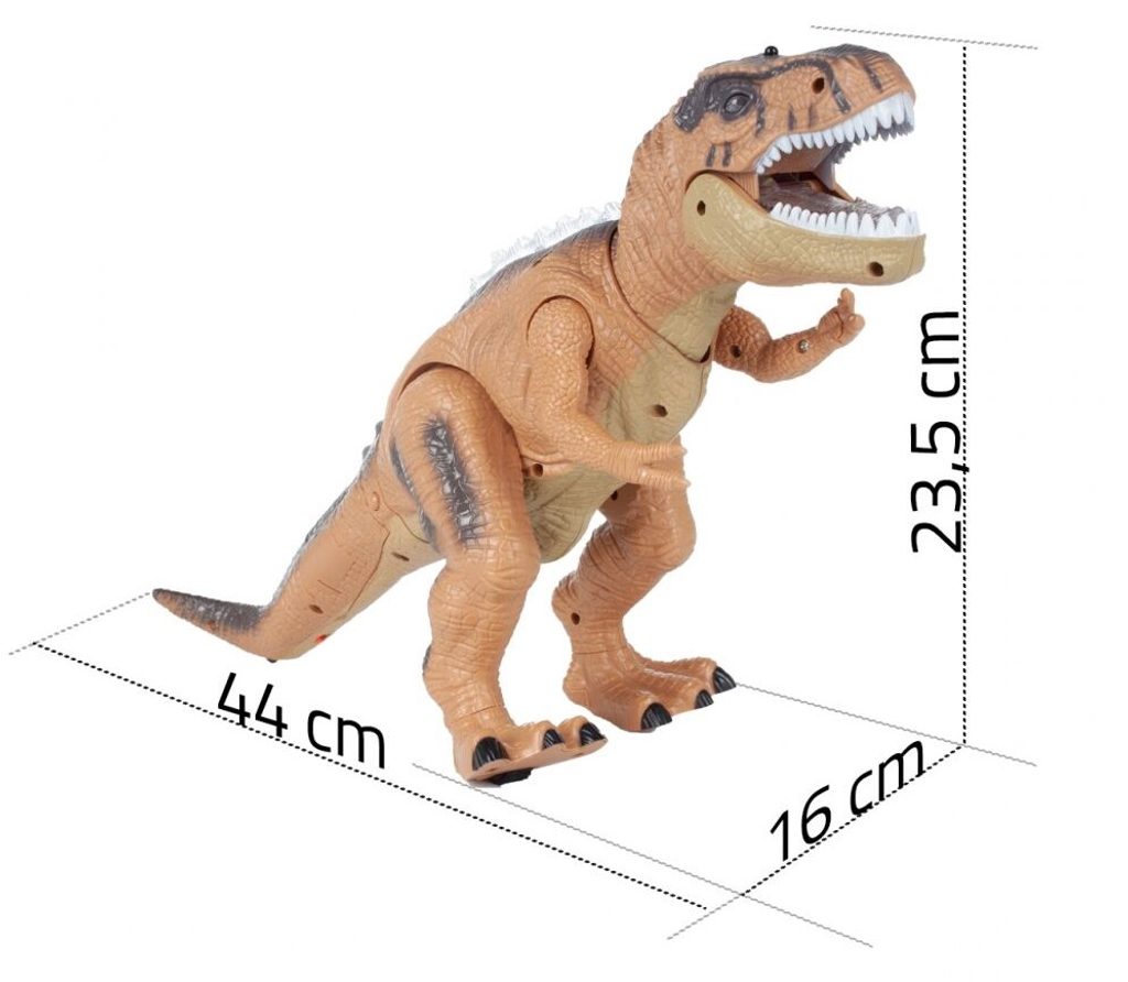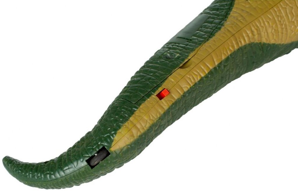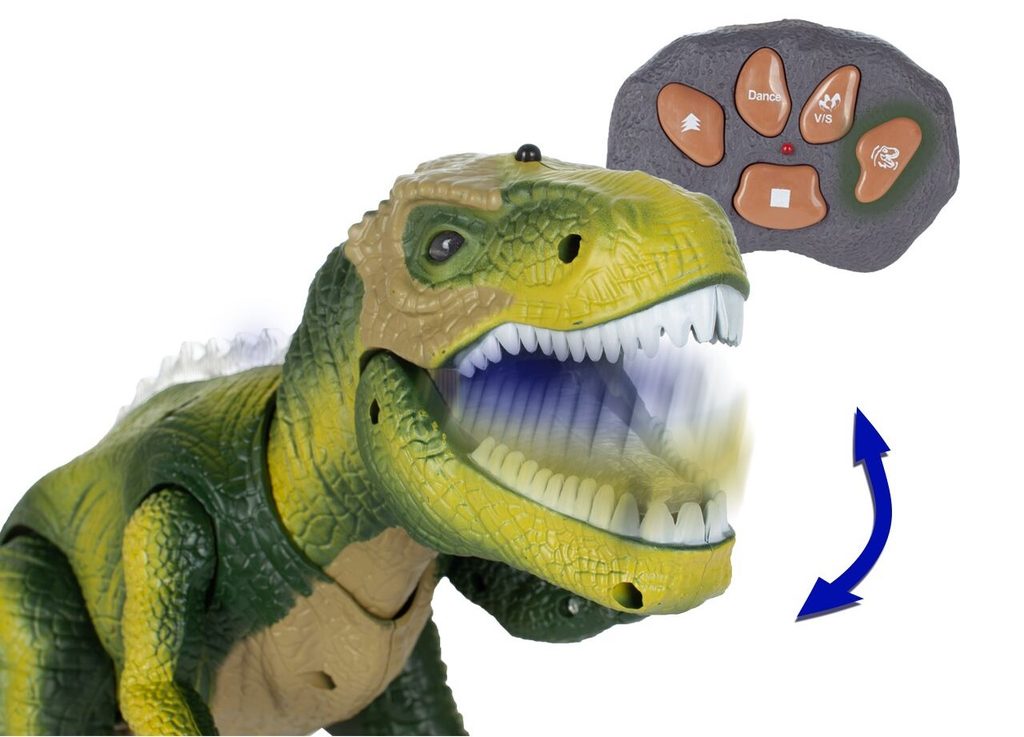 Interaktivní dálkově ovládaný Dinosaurus je perfektní hračka pro děti, které mají rády zvířátka a technologické novinky. Dálkové ovládání ve tvaru kamene se snadno používá, takže si s hračkou bez problémů mohou hrát i menší děti. Zajímavý, neobvyklý styl, melodie, zvuky a pohyby vám poskytnou spoustu zábavy a mnoho hodin úžasné zábavy. Dinosaurus má několik ovládacích tlačítek, jejichž zmáčknutím se spouští různé funkce. Hračka je určena pro děti od 3 let věku.