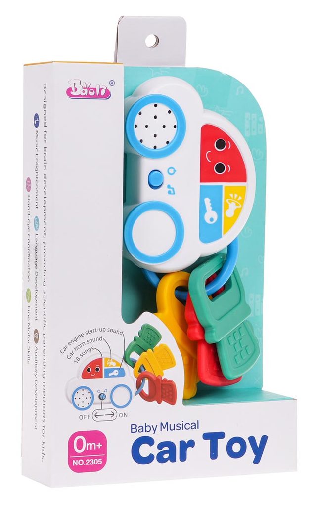 Interaktivní dětské klíče Car Key jsou určeny pro děti od narození. Tato hračka má pozitivní vliv na rozvoj sluchového a zrakového vnímání dítěte. Na klíči jsou tři hudební tlačítka: klíč, smajlík a megafon. Po stisknutí těchto tlačítek se spouštějí různé melodie a zvuky. Součástí jsou také 3 plastové klíče které slouží jako hryzátko.
