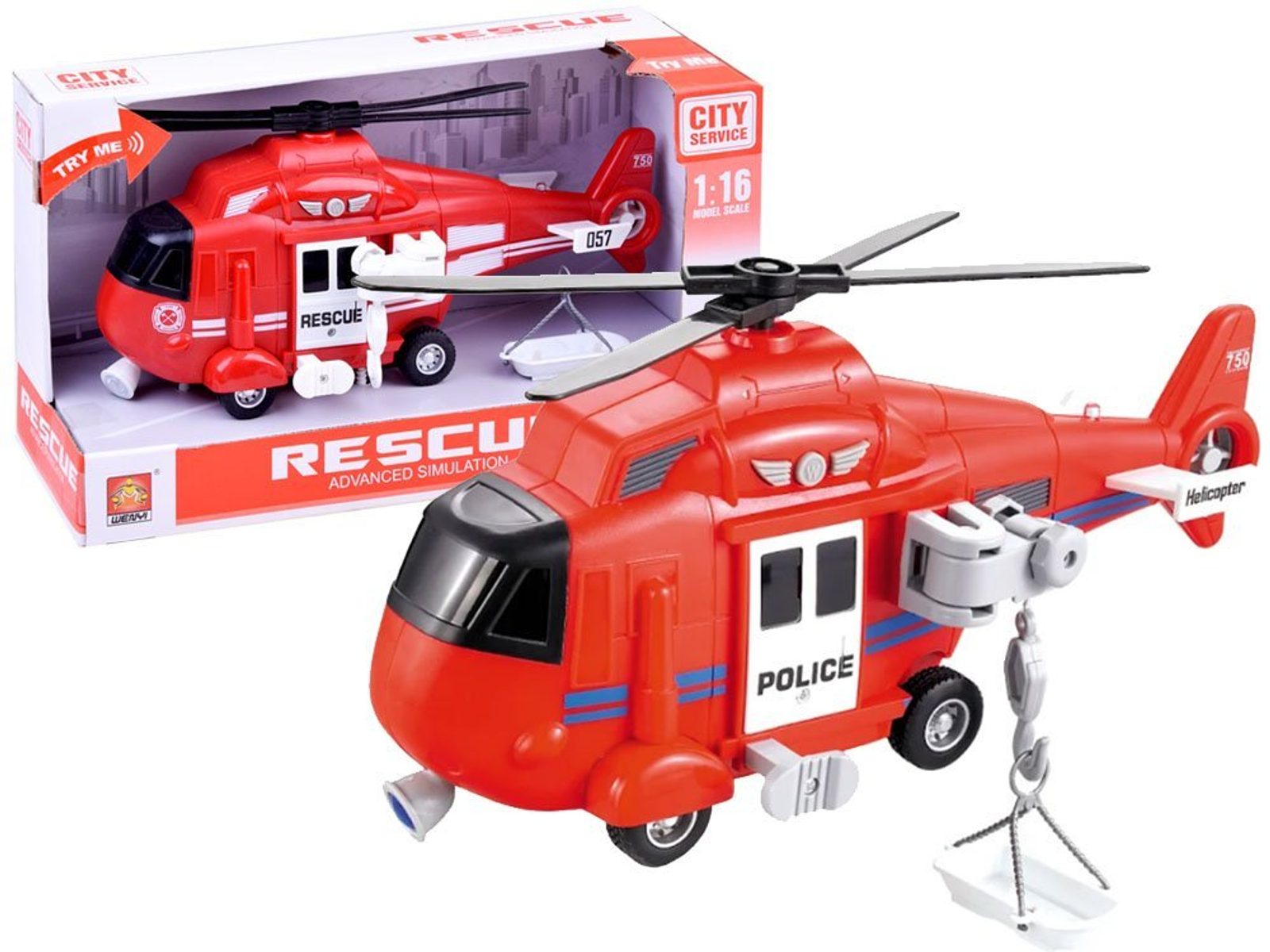 Interaktivní záchranářský vrtulník s pohonem kol City Rescue je ideální hračkou pro rozvoj manuální zručnosti a logického myšlení. Je vybavena zvukovými efekty a také předním a zadním světýlkem. Součástí helikoptéry je také lano s háčkem a záchranné lehátko. Pohon zajišťuje systém Friction Power kdy se helikoptéra rozpohybuje tlačením po hladkém povrchu. Hračka je určena pro děti od 36 měsíců věku.