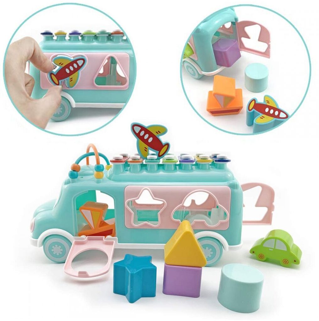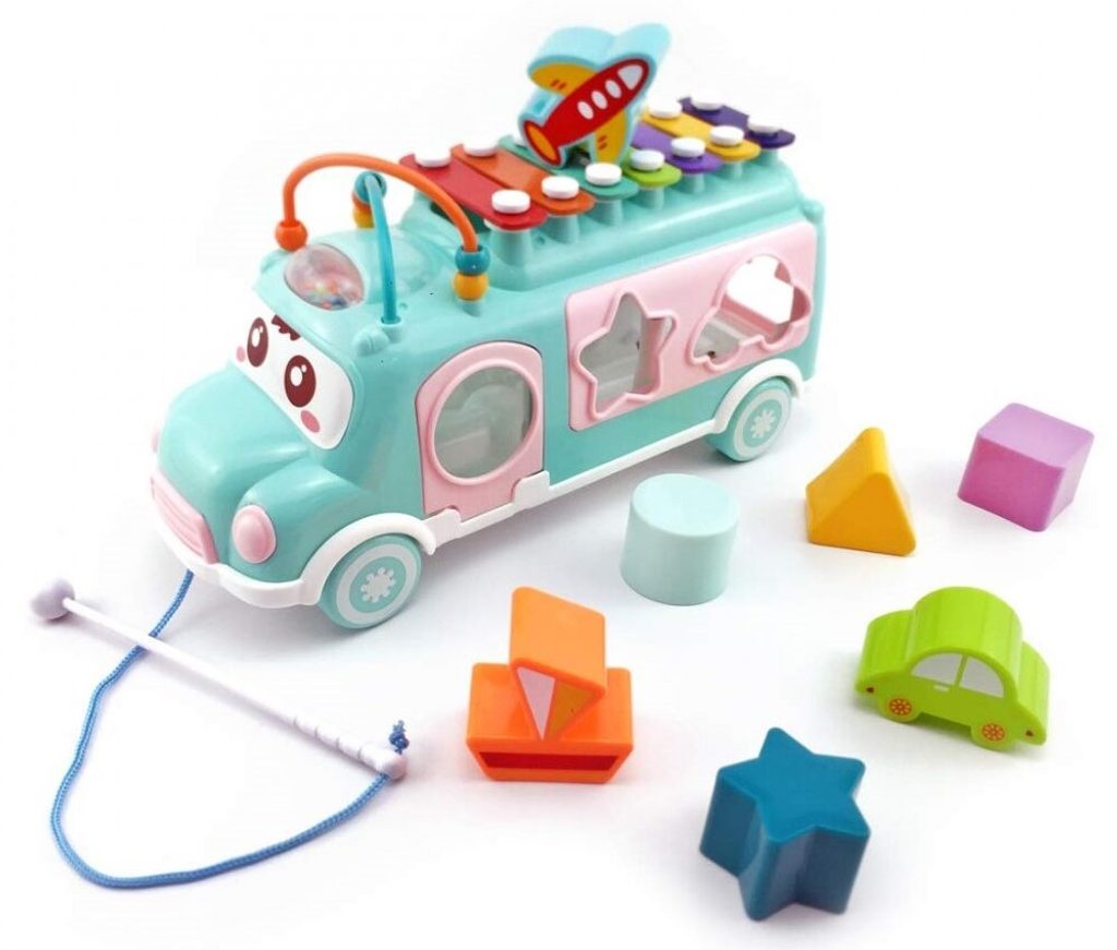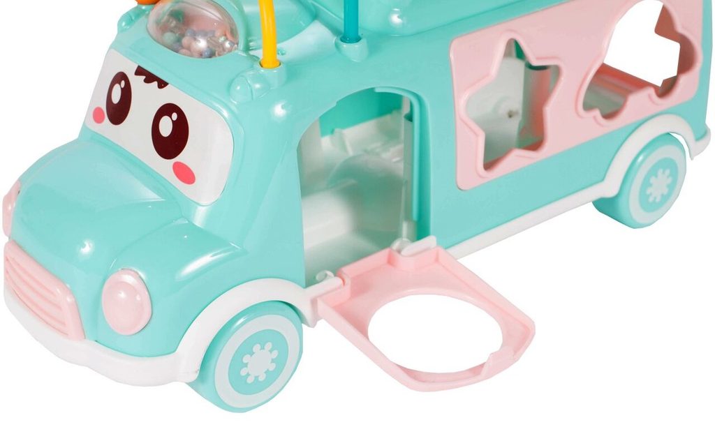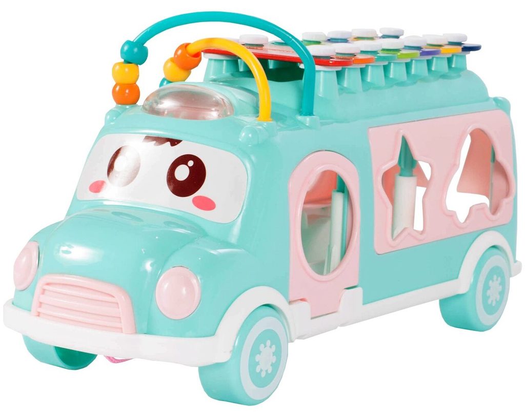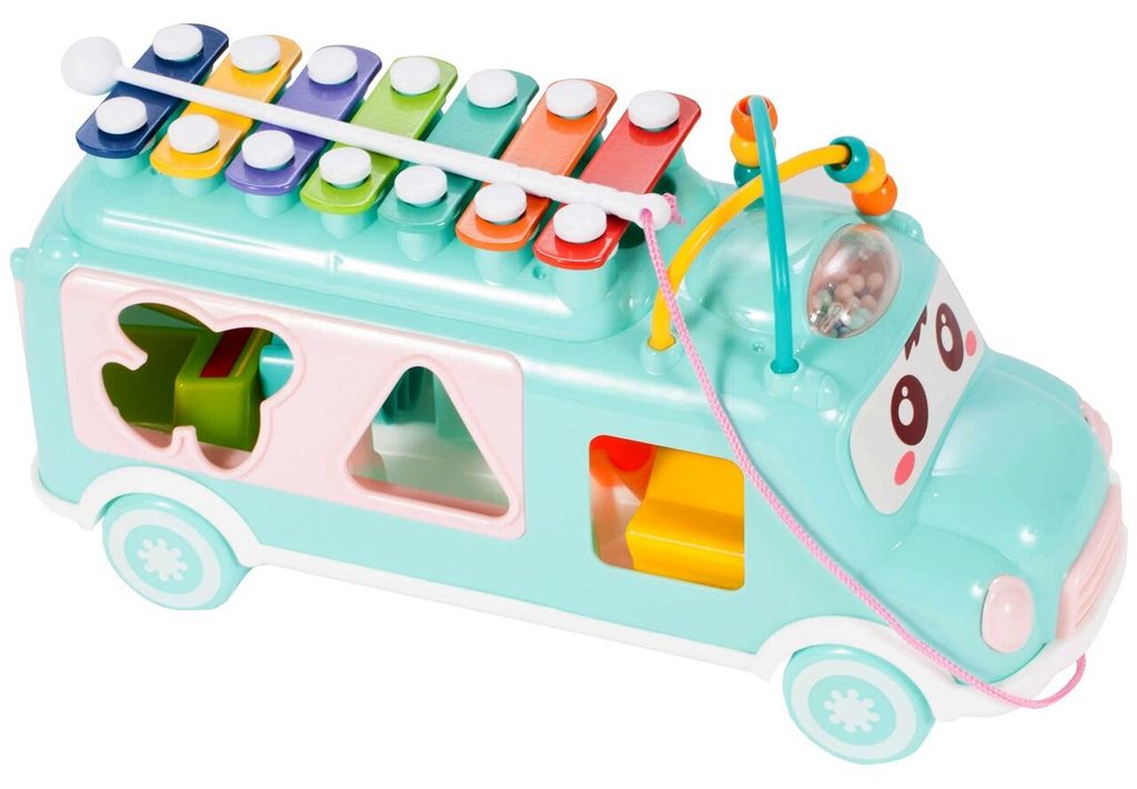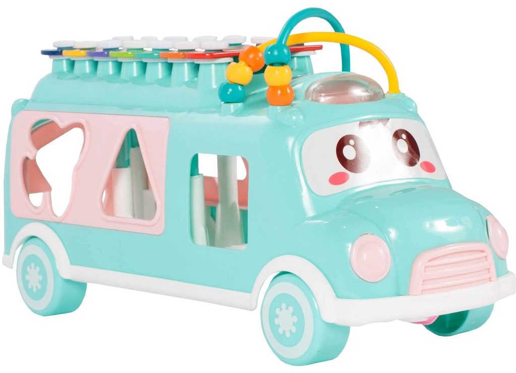 Interaktivní hrající autíčko 3v1 Happy Bus je určeno pro ty nejmenší děti. Boční stěny jsou vybaveny vhazovacími otvory pro hračky, které jsou součástí balení. Na střeše autíčka jsou umístěny malé cimbálky a také labyrint s korálky. Hrací palička je proti ztracení zabezpečena šňůrkou. Na předním skle jsou očička autíčko tak vypadá, že se směje. Auto je ideální hračkou pro rozvoj dětské motoriky, hmatu, zraku, logického myšlení, rozpoznávání barev a tvarů. Hračka je určena pro děti od 36 měsíců věku.