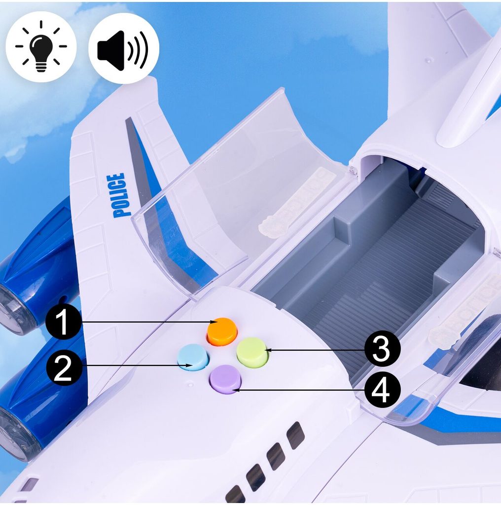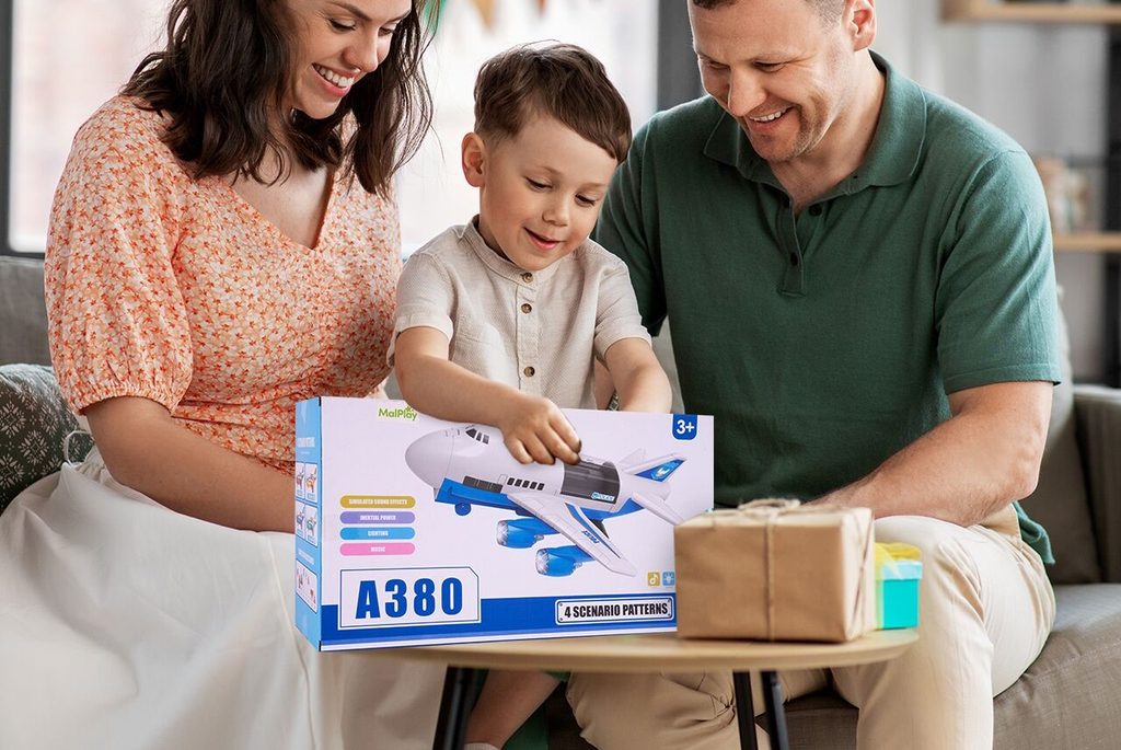 Interaktivní dopravní letadlo na setrvačník A380 je ideální hračkou pro rozvoj manuální zručnosti a logického myšlení. Je vybaveno tlačítky, které spouští různé zvuky. Letadlo je rozkládací, má otevírací přední a horní část a také skluzavku. Součástí sada je také 6 autíček a dopravní značky. Motory letadla jsou osvětlené. Pohon zajišťuje setrvačník na zadních kolech. Hračka je určena pro děti od 36 měsíců věku.