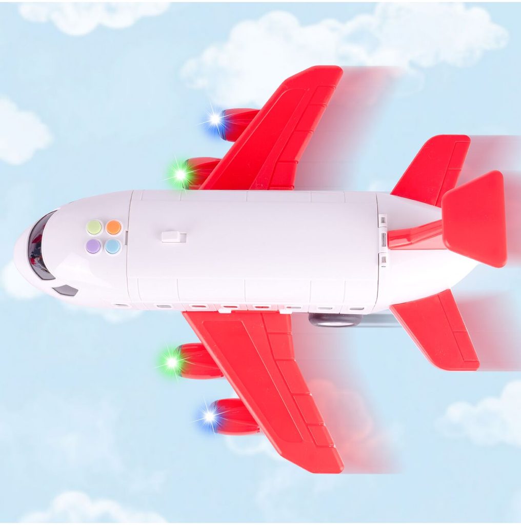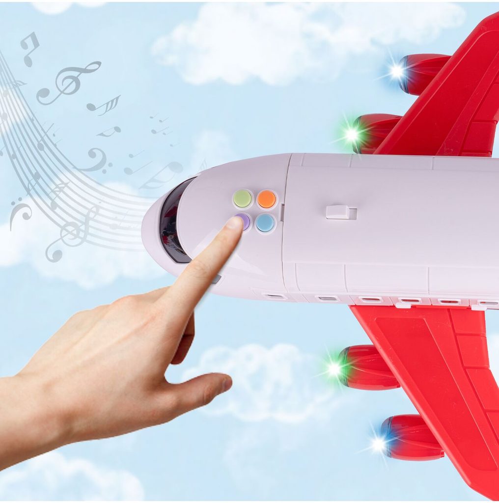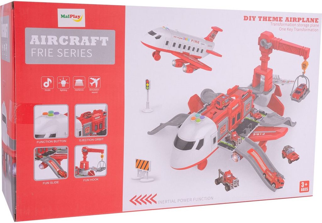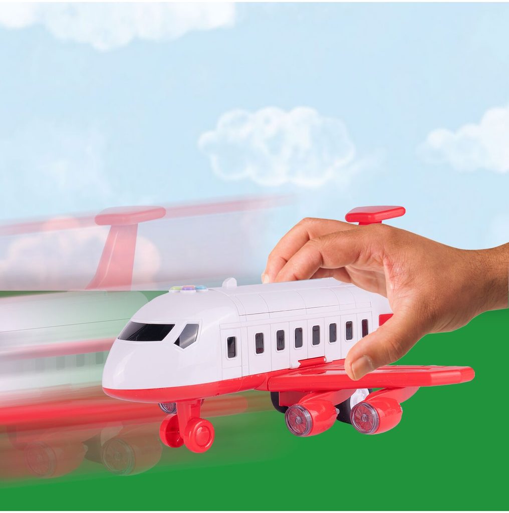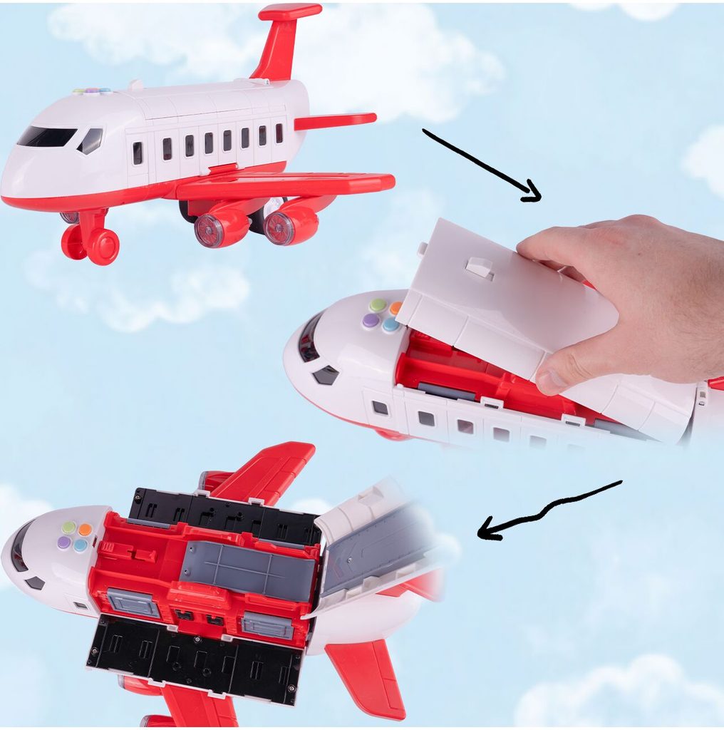 Interaktivní dopravní letadlo na setrvačník DIY Airplane je ideální hračkou pro rozvoj manuální zručnosti a logického myšlení. Je vybaveno tlačítky, které spouští různé zvuky. Letadlo je rozkládací, má otevírací boční a zadní část a také skluzavku. Součástí sada jsou také 4 kovová autíčka a dopravní značky. Motory letadla jsou osvětlené. Pohon zajišťuje setrvačník na zadních kolech. Hračka je určena pro děti od 36 měsíců věku.