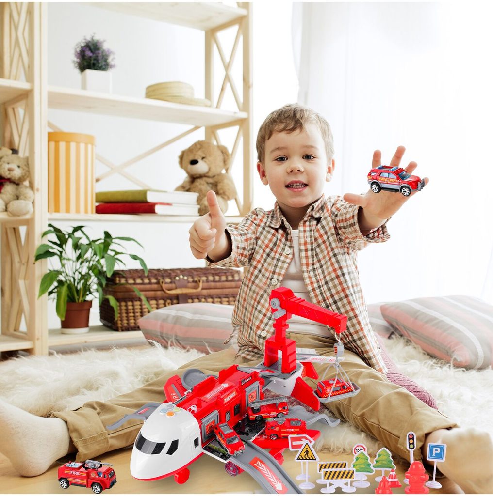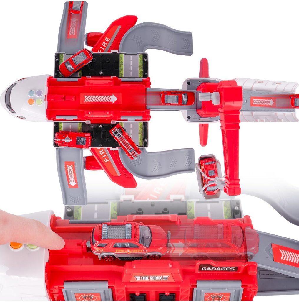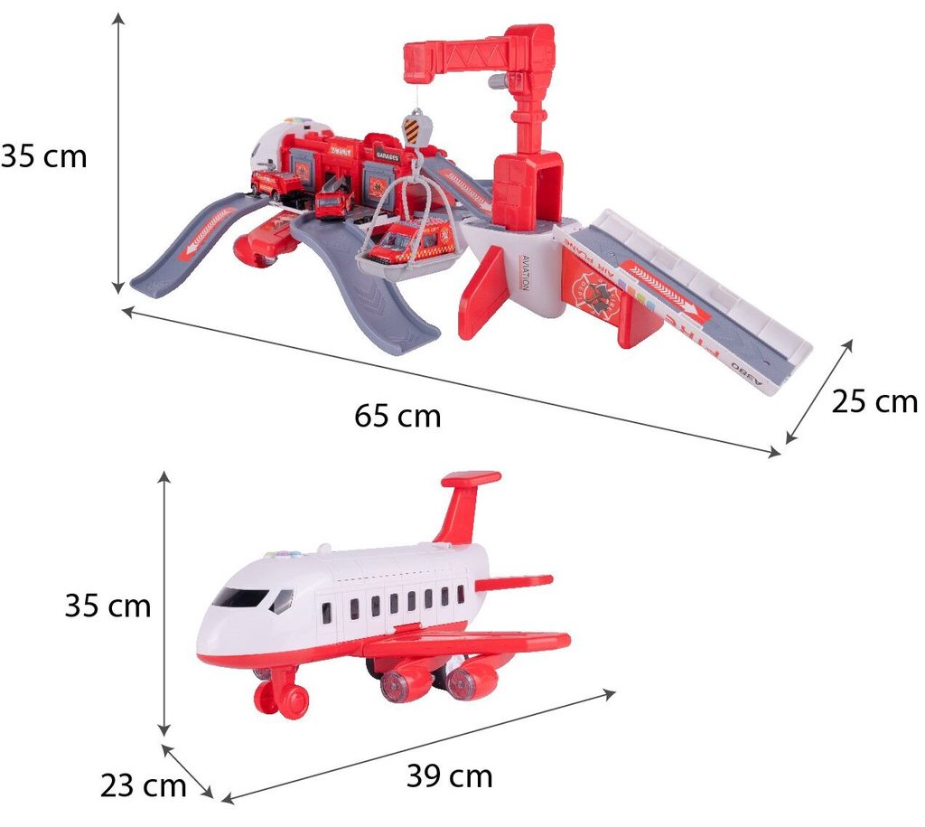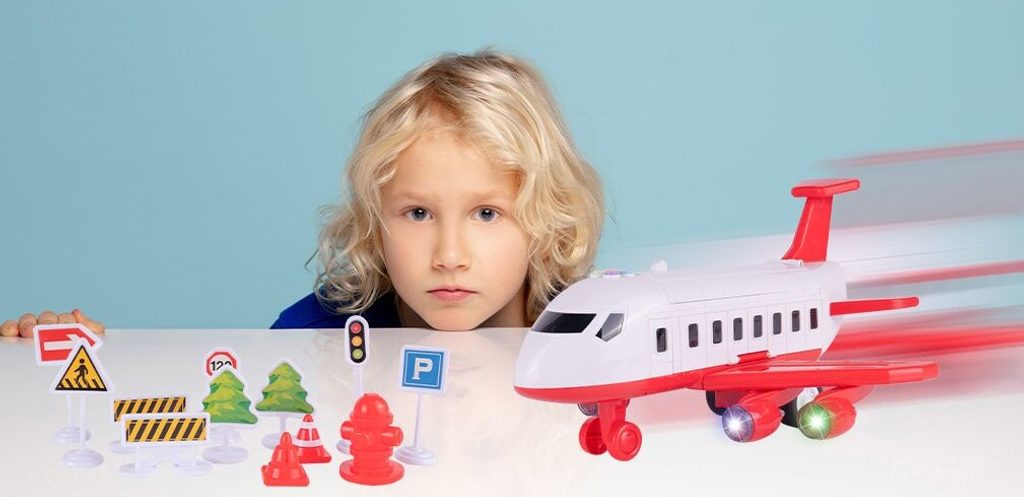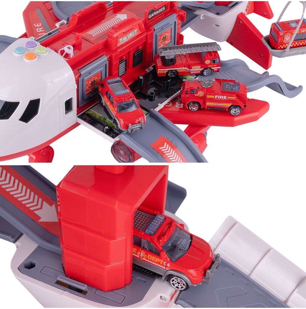 Interaktivní dopravní letadlo na setrvačník DIY Airplane je ideální hračkou pro rozvoj manuální zručnosti a logického myšlení. Je vybaveno tlačítky, které spouští různé zvuky. Letadlo je rozkládací, má otevírací boční a zadní část a také skluzavku. Součástí sada jsou také 4 kovová autíčka a dopravní značky. Motory letadla jsou osvětlené. Pohon zajišťuje setrvačník na zadních kolech. Hračka je určena pro děti od 36 měsíců věku.
