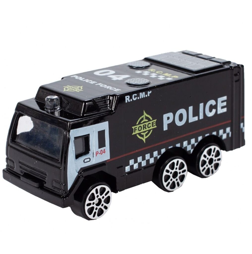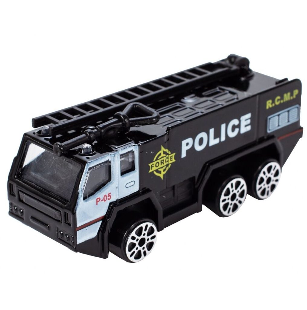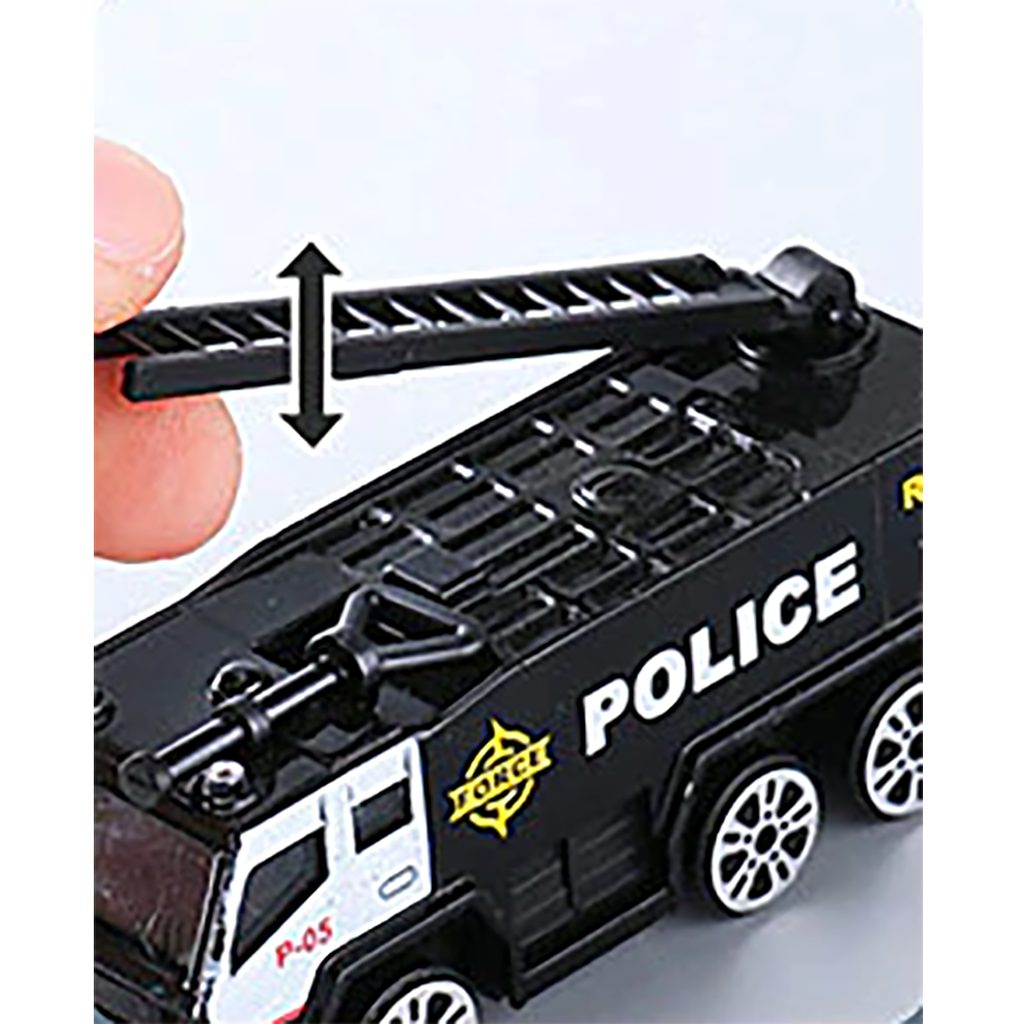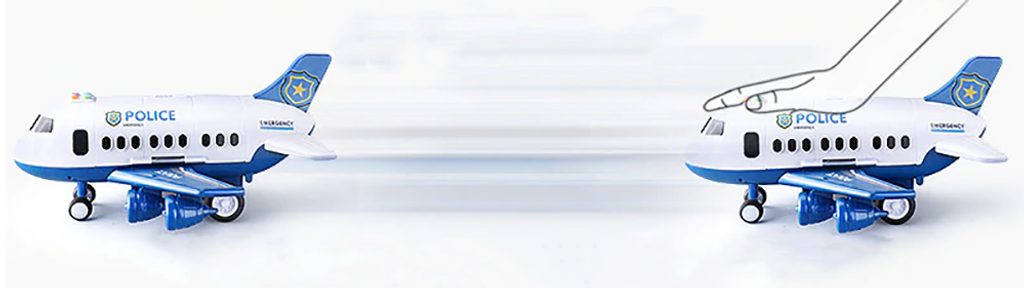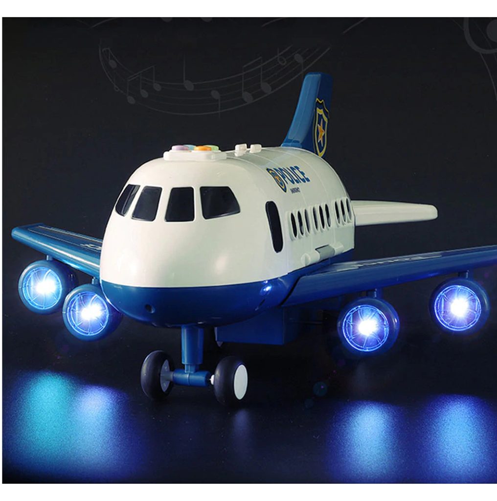 Interaktivní dopravní letadlo na setrvačník Police Airplane je ideální hračkou pro rozvoj manuální zručnosti a logického myšlení. Je vybaveno tlačítky, které spouští různé zvuky. Letadlo je rozkládací, má otevírací boční a zadní část a také výklopné schůdky. Součástí sada jsou také 3 kovová autíčka a dopravní značky. Motory letadla jsou osvětlené. Pohon zajišťuje setrvačník na zadních kolech. Hračka je určena pro děti od 36 měsíců věku.