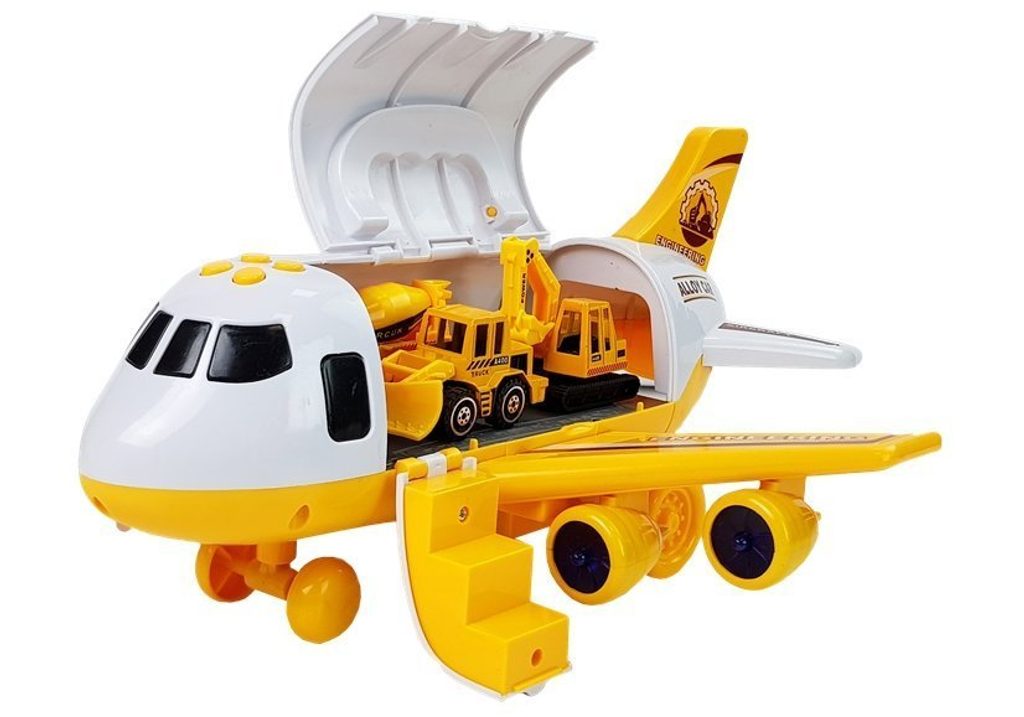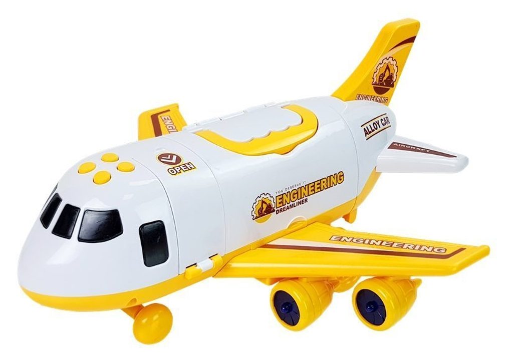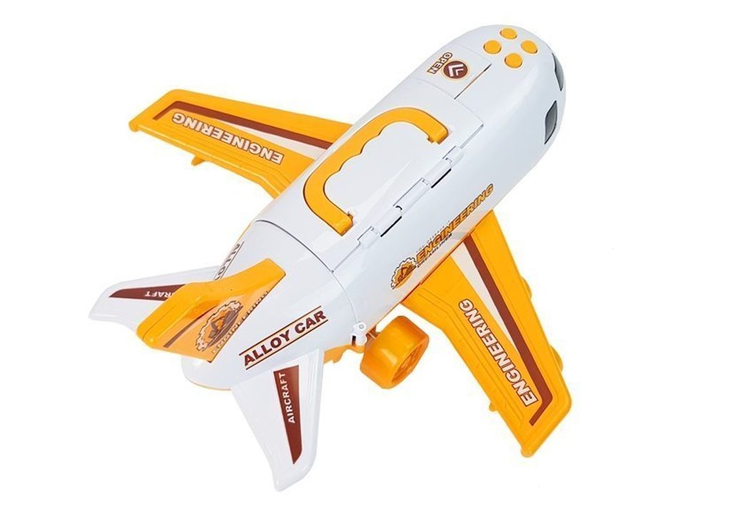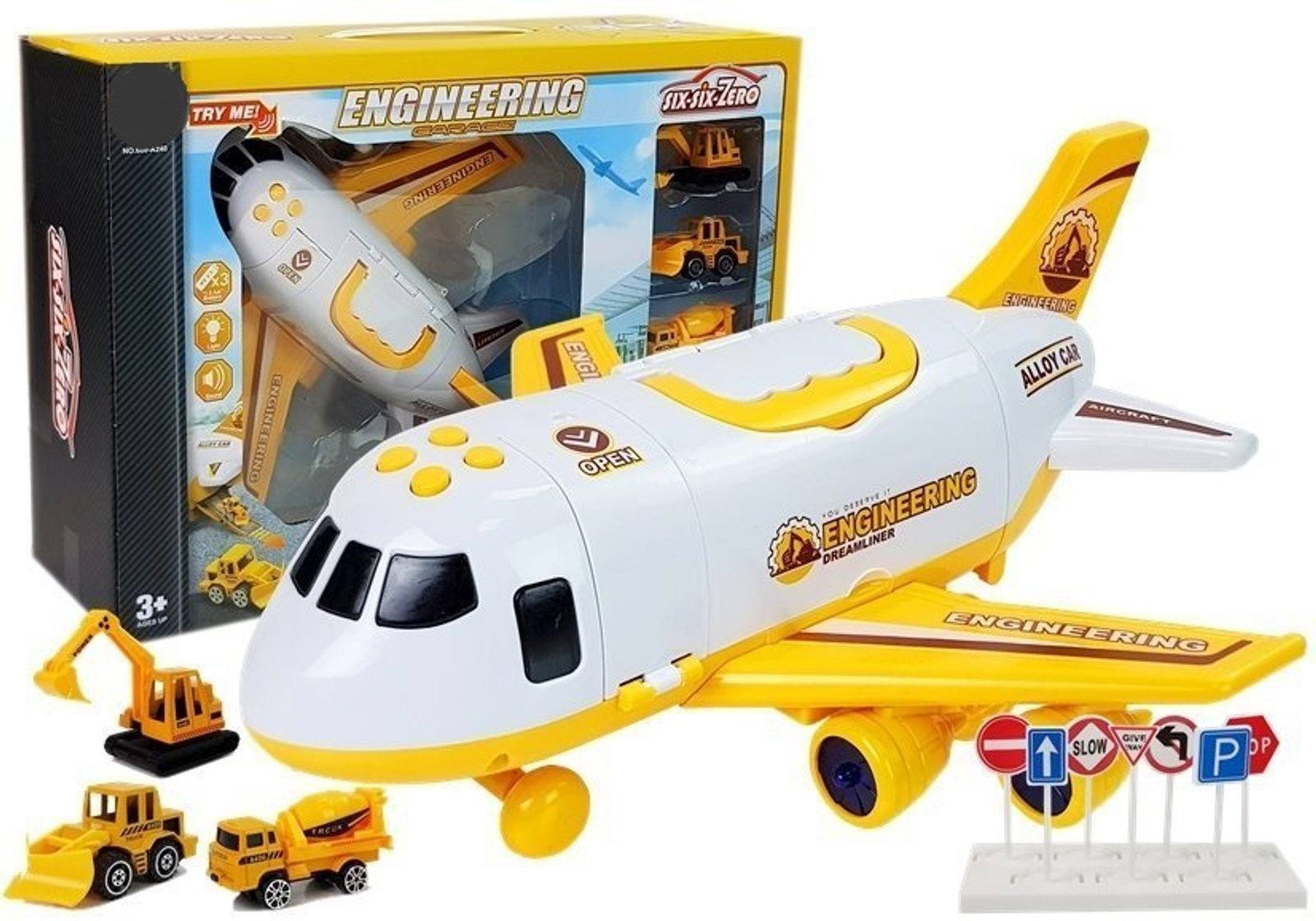 Interaktivní dopravní letadlo na setrvačník Engineering Airplane je ideální hračkou pro rozvoj manuální zručnosti a logického myšlení. Je vybaveno tlačítky, které spouští různé zvuky. Letadlo je rozkládací, má otevírací boční a zadní část a také výklopné schůdky. Součástí sada jsou také 3 kovové stavební stroje a dopravní značky. Motory letadla jsou osvětlené. Pohon zajišťuje setrvačník na zadních kolech. Hračka je určena pro děti od 36 měsíců věku.