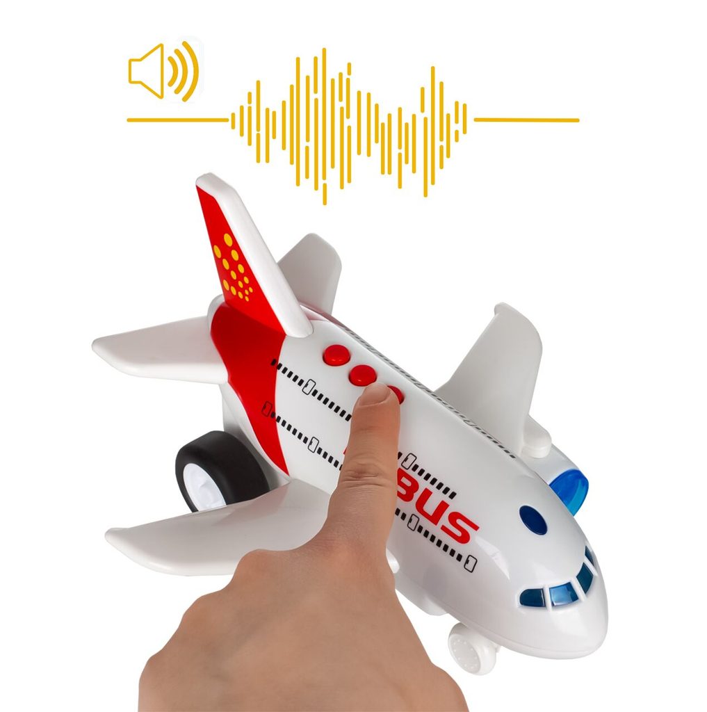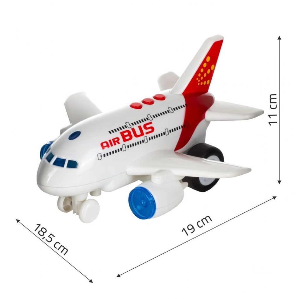 Interaktivní dopravní letadlo na setrvačník Airbus je ideální hračkou pro rozvoj manuální zručnosti a logického myšlení. Je vybaveno tlačítky, které spouští zvuky motoru a hlas letušky. Pilotní kabina a motory jsou osvětlené. Pohon zajišťuje setrvačník na zadních kolech. Hračka je určena pro děti od 36 měsíců věku.