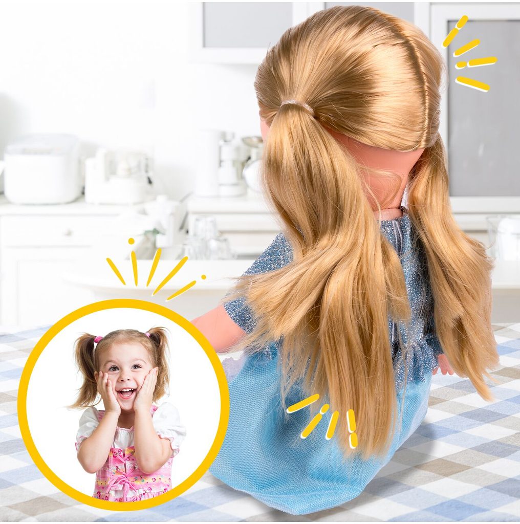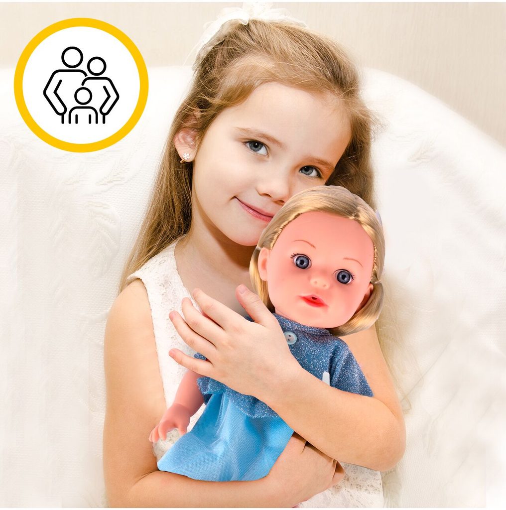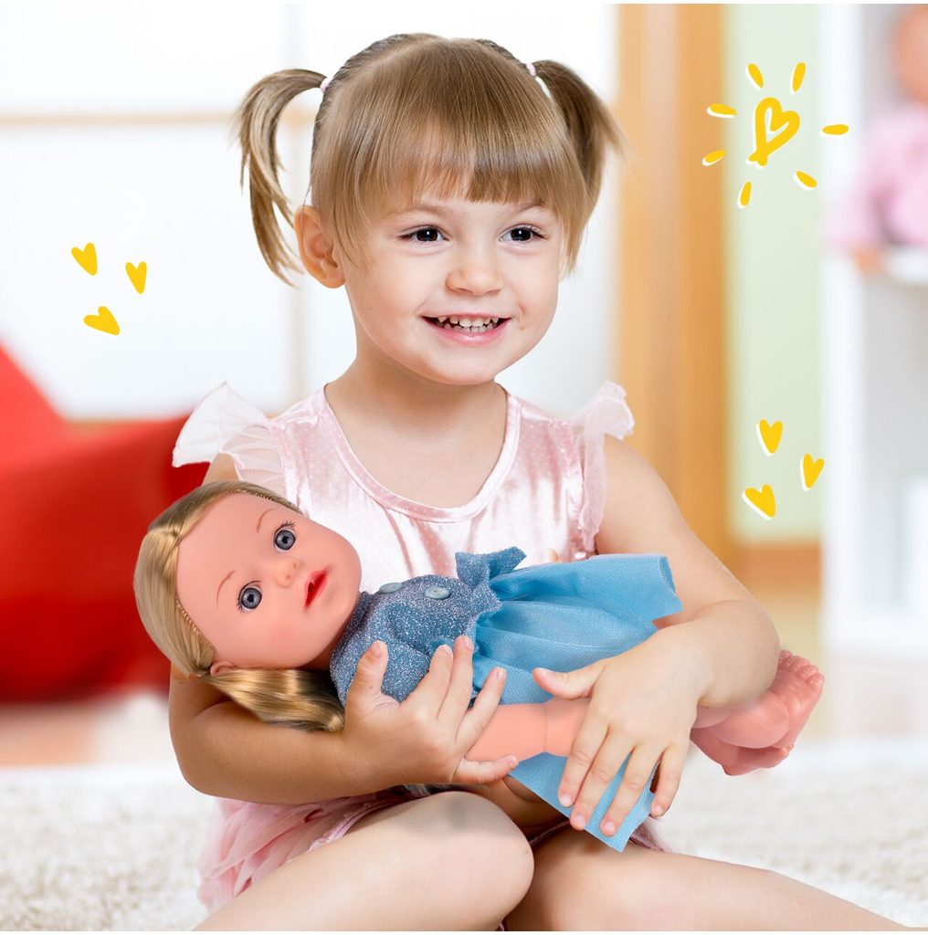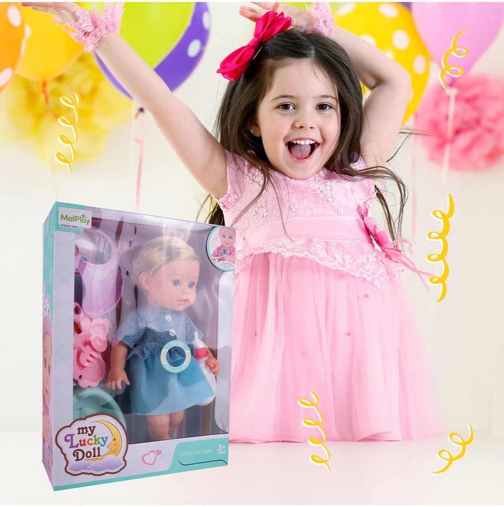 Panenka Lucky Doll v realistickém provedení udělá ohromnou radost každé holčičce. Je vyrobena z materiálu velmi příjemného na dotek a má také oblečení na suchý zip. Součástí sady je také krmící lahvička, nočníček, lžička, vidlička a talířek. Po zmáčknutí bříška se směje, pláče, vydává zvuky a mluví. Hračka je určena pro děti od 36 měsíců věku.