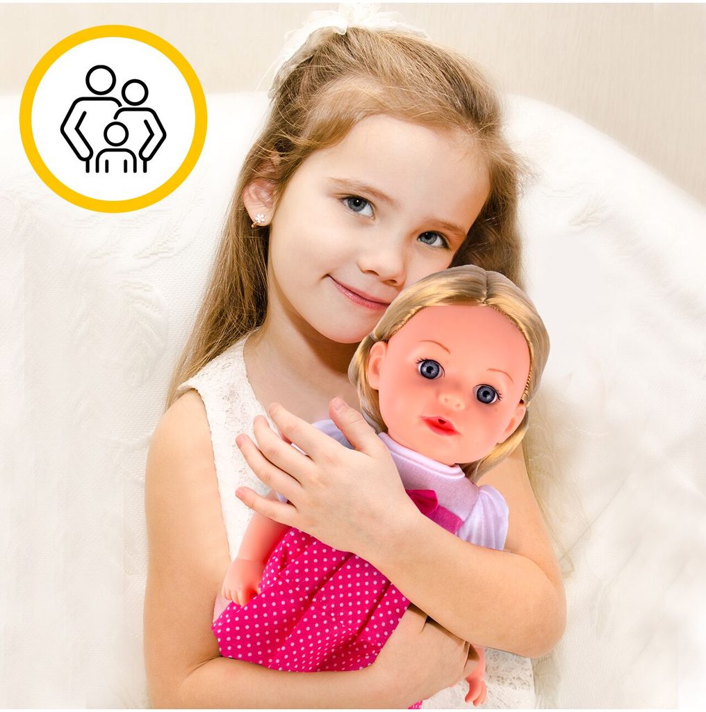 Panenka Lucky Doll v realistickém provedení udělá ohromnou radost každé holčičce. Je vyrobena z materiálu velmi příjemného na dotek a má také oblečení na suchý zip. Součástí sady je také krmící lahvička, plenka a chrastítko. Po zmáčknutí bříška se směje, pláče, vydává zvuky a mluví. Hračka je určena pro děti od 36 měsíců věku.