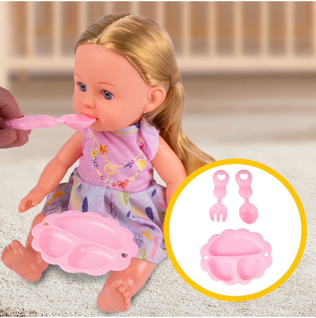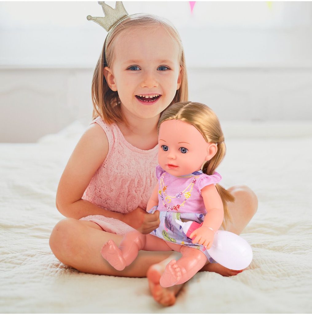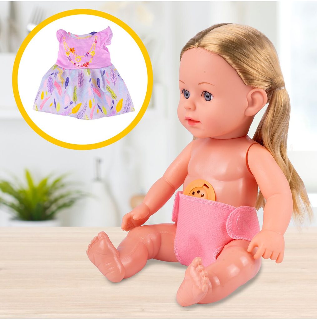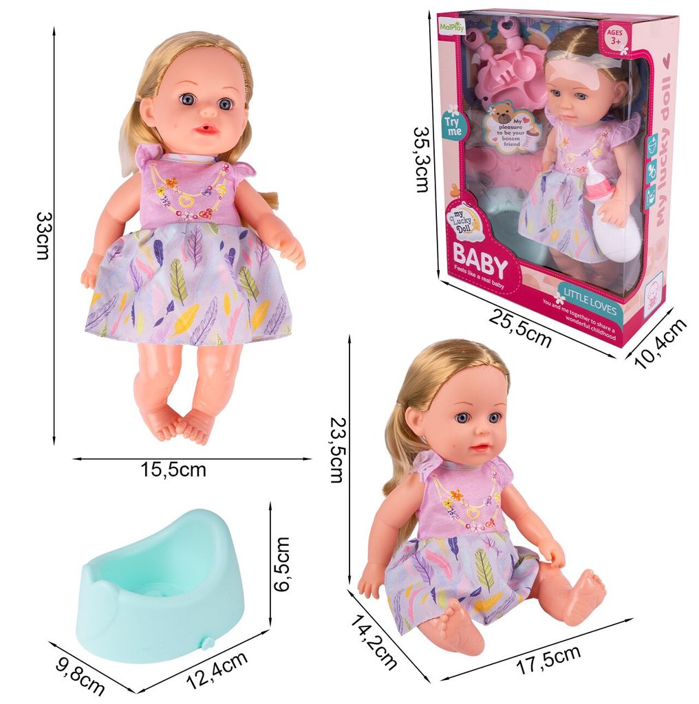 Panenka My Baby v realistickém provedení udělá ohromnou radost každé holčičce. Je vyrobena z materiálu velmi příjemného na dotek a má také oblečení na suchý zip. Součástí sady je také krmící lahvička, nočníček, kalhotky a talířek s příbory. Po zmáčknutí bříška se směje, pláče, vydává zvuky a mluví. Hračka je určena pro děti od 36 měsíců věku.