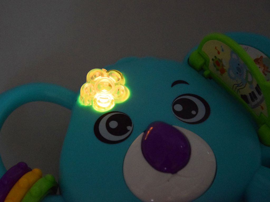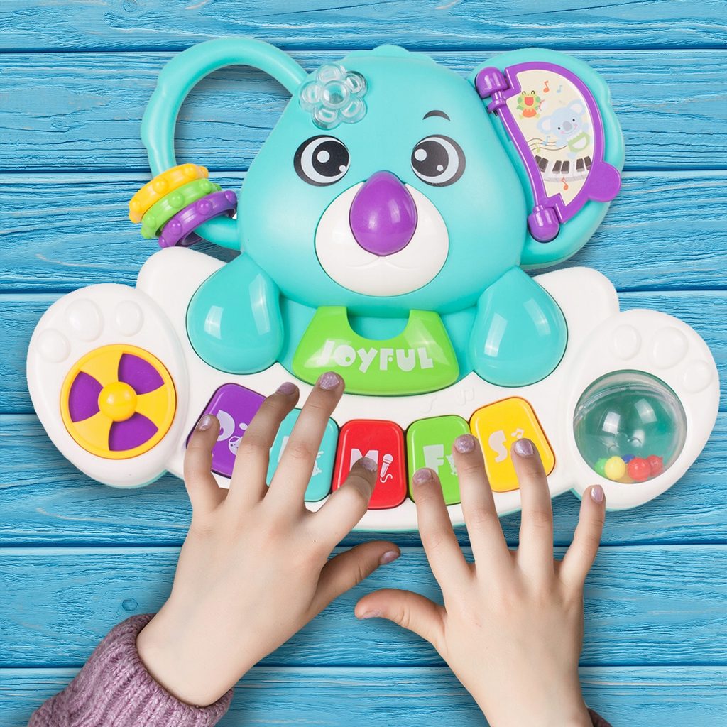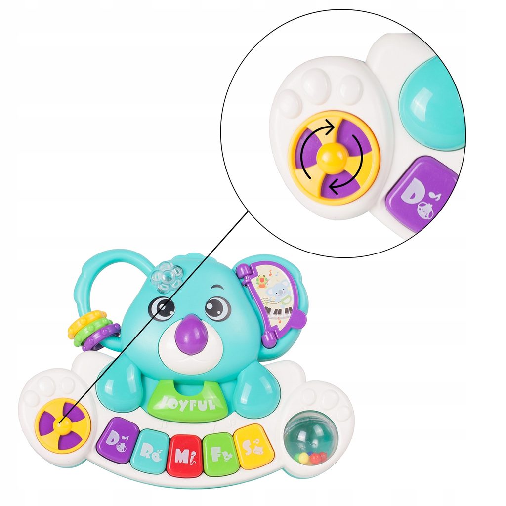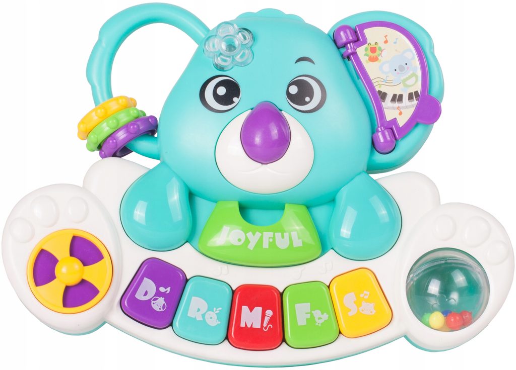 Interaktivní klávesnice ve tvaru medvídka koaly se zvuky a světýlkem je ideální hračkou pro ty nejmenší děti. Umožní dítěti rozvíjet hmat, zrak, sluch. Klávesnice má několik režimů hry, které se přepínají na oušku medvídka. Vedle klasického Doremi klavíru jsou zde melodie, zvuky dětského smíchu, pláče a zvířátek. Každé zmáčknutí klávesnice doprovází blikající světýlko. Hračka má také malinké chrastítko a pohyblivé kroužky. Hračka je určena pro děti od 18 měsíců věku.