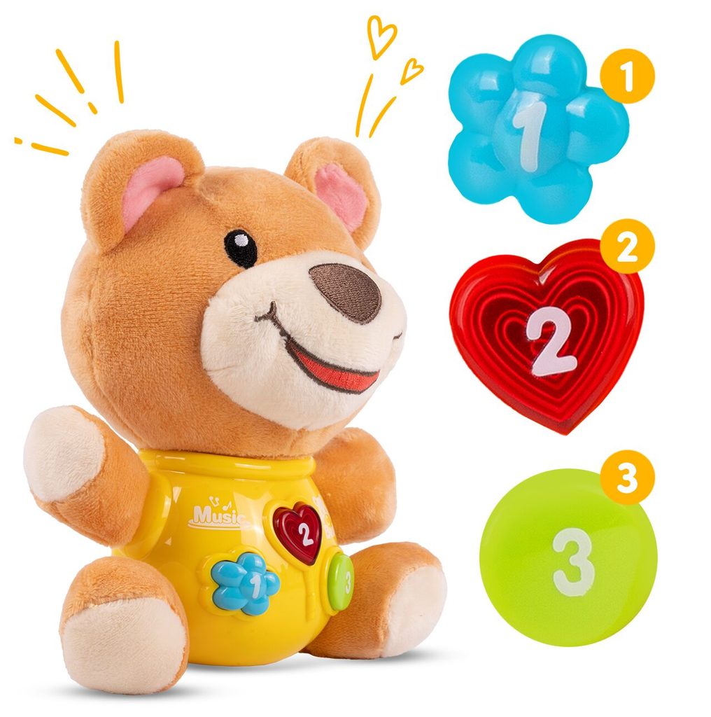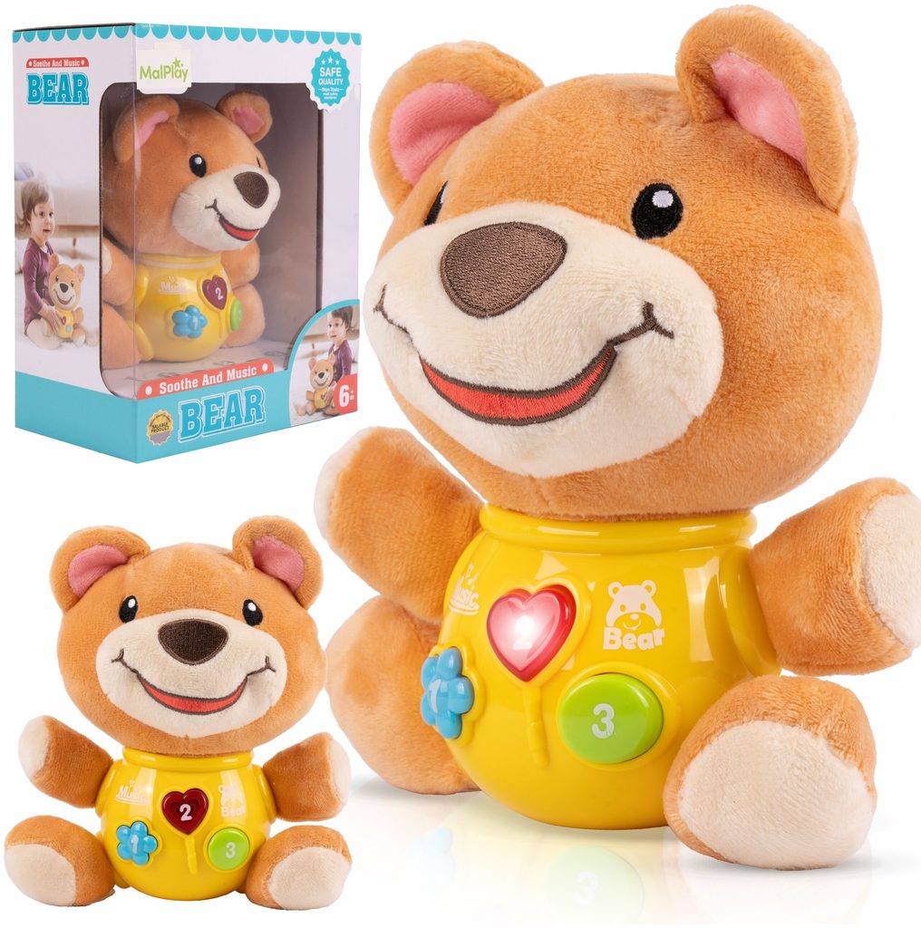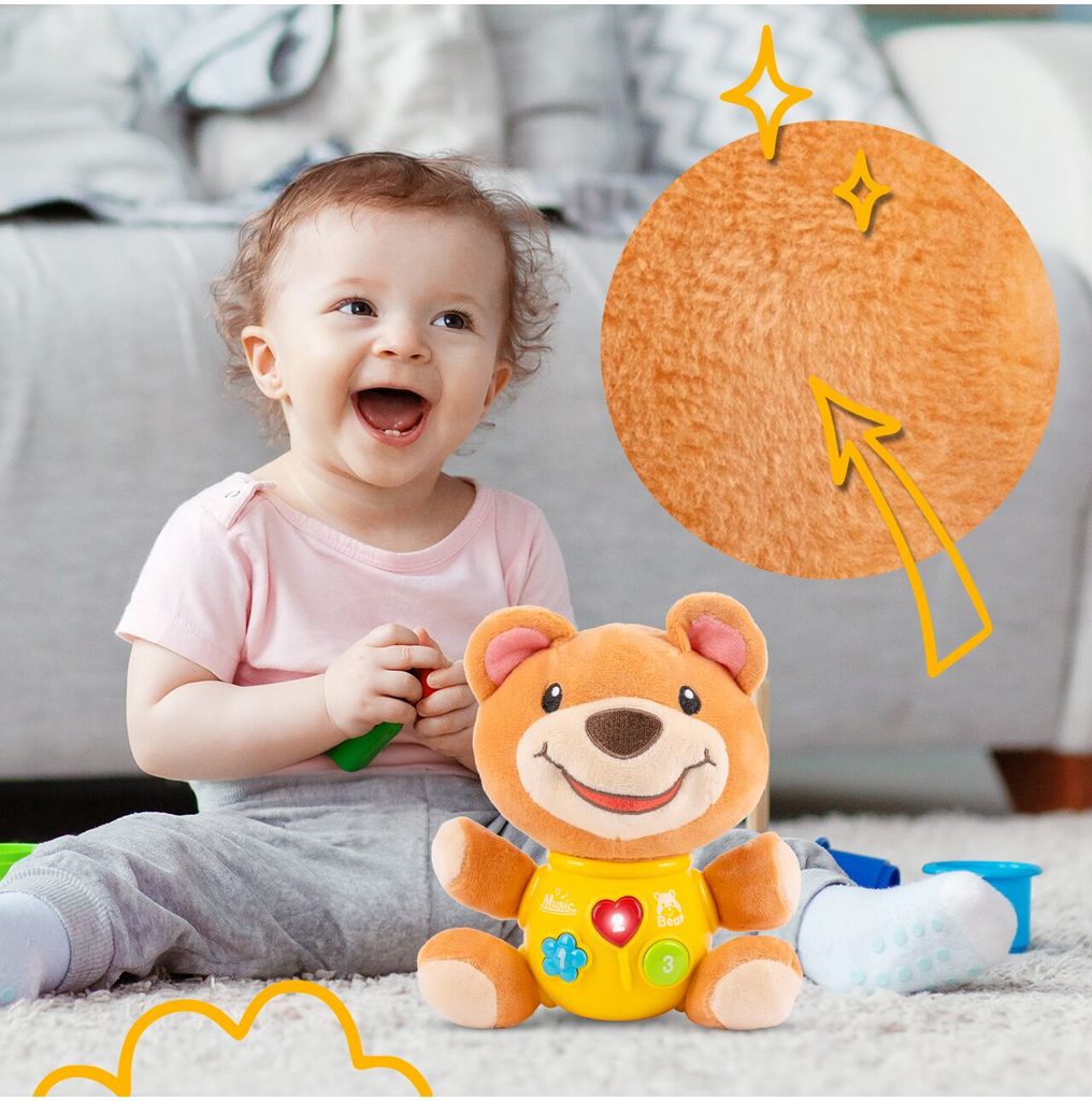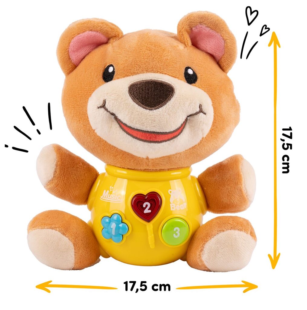 Interaktivní plyšový medvídek Magic Bear je ideální hračkou nejmenší děti. Je vyroben z jemného na dotyk příjemného materiálu. Po zmáčkutí tlačítek se spustí, osvětlení, zvuky a melodie.  Hračka je určena pro děti od 6 měsíců věku.