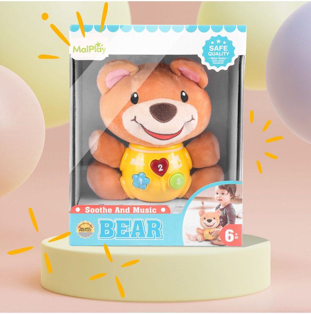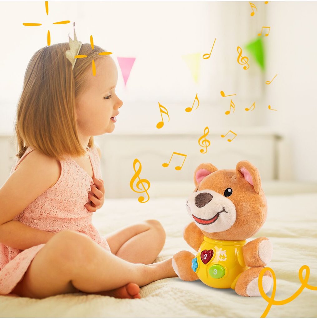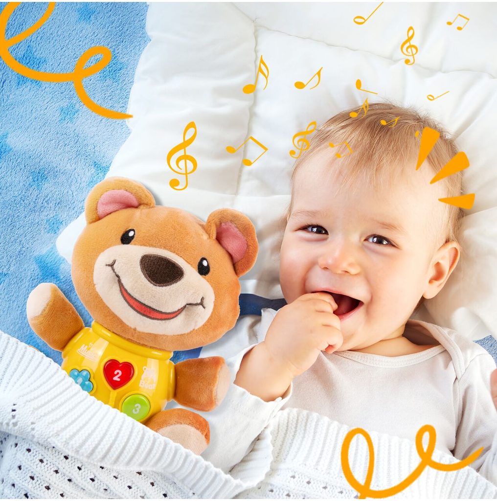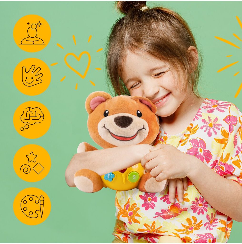 Interaktivní plyšový medvídek Magic Bear je ideální hračkou nejmenší děti. Je vyroben z jemného na dotyk příjemného materiálu. Po zmáčkutí tlačítek se spustí, osvětlení, zvuky a melodie.  Hračka je určena pro děti od 6 měsíců věku.