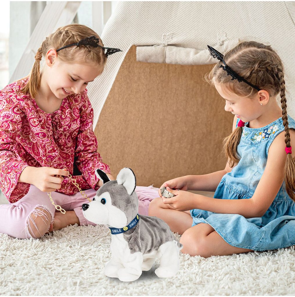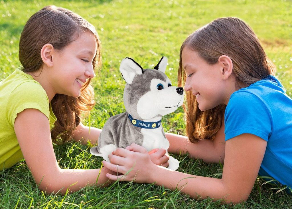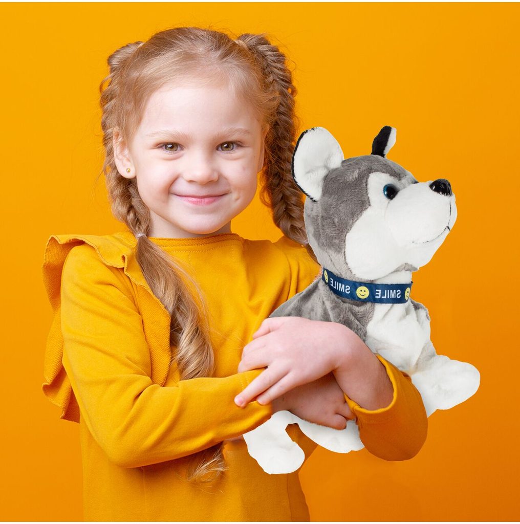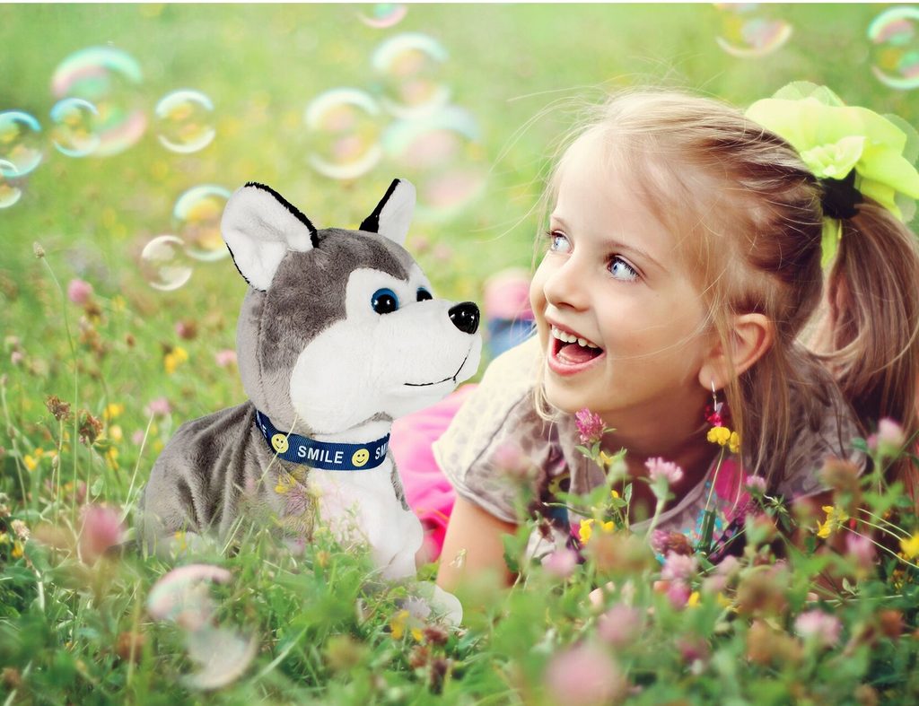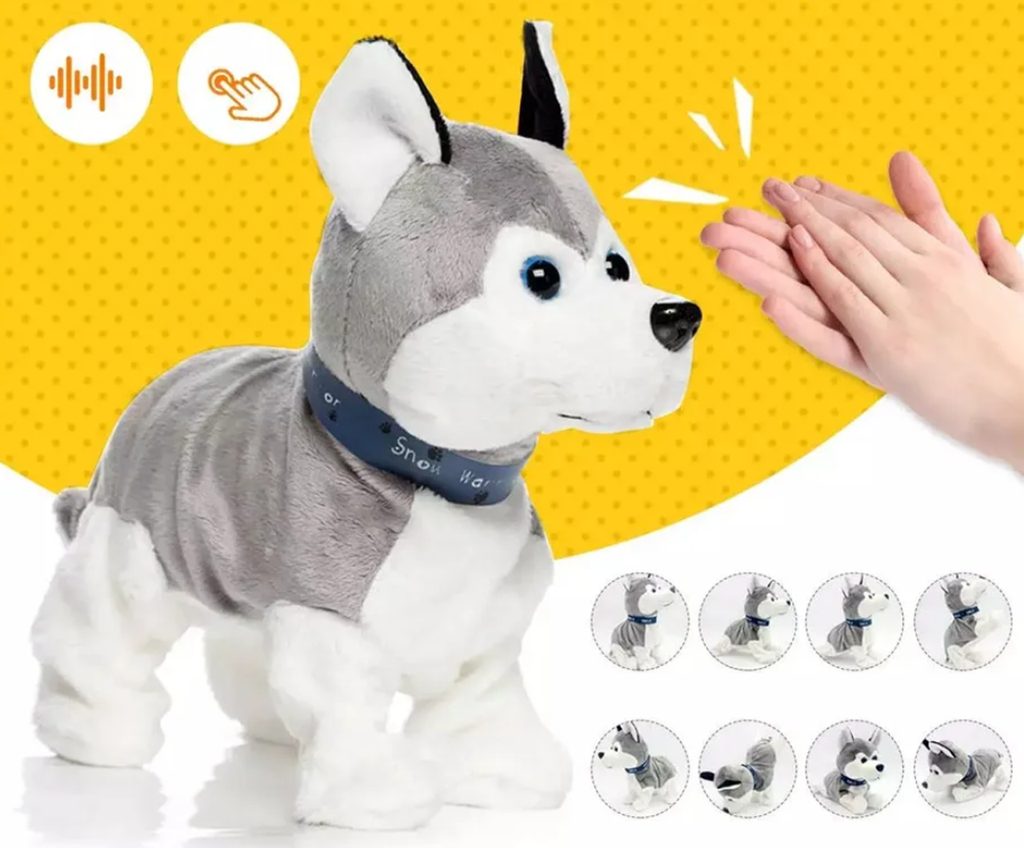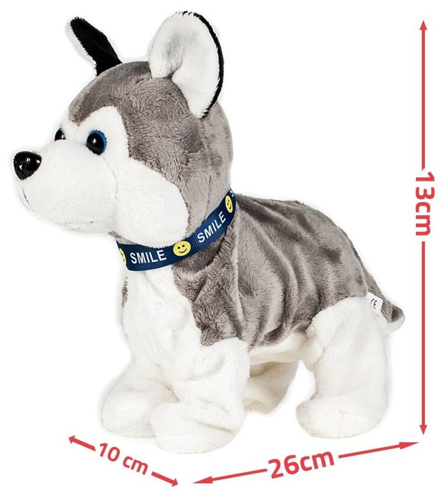 Plyšový mazlíček je snem většiny dětí. Proto představujeme okouzlujícího psa Husky. Tato roztomilá hračka vám poskytne mnoho hodin skvělé zábavy. Když pejska pohladíme, přiblížíme k němu ruku nebo s ním zatleskáme, okamžitě zareaguje vydáváním různých zvuků. Když vám bude chtít poděkovat, začne vesele štěkat a hýbat se. Psi vždy projevují radost, když vidí svého majitele! Když k němu opět přiblížíme ruku, může začít kňučet, prosit, ležet na bříšku a vykonávat další činnosti. Mechanismus na baterie, který pohání hračku, je dobře ukrytý a zajištěný pro bezpečnost dětí.