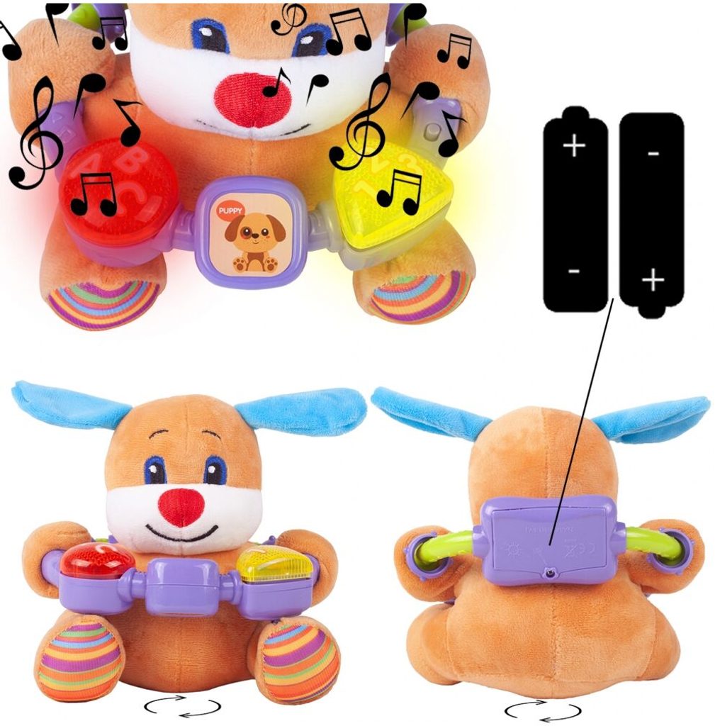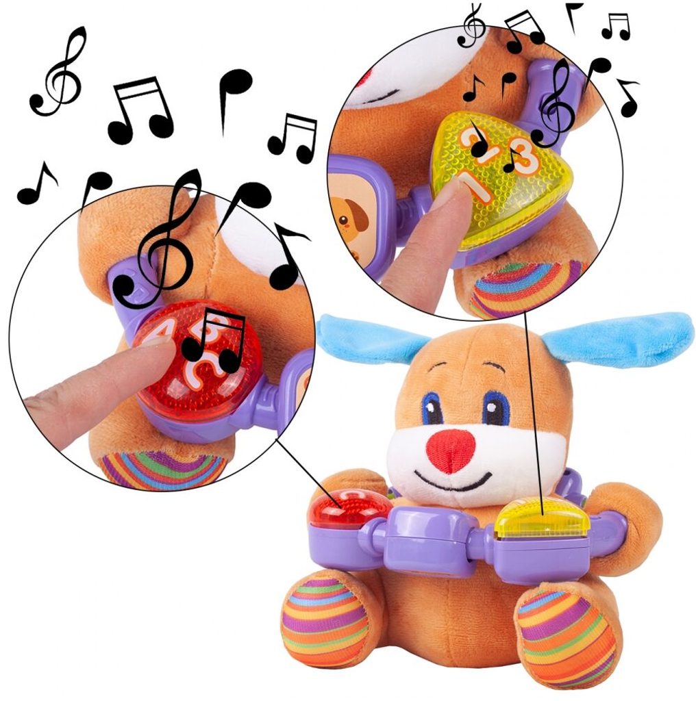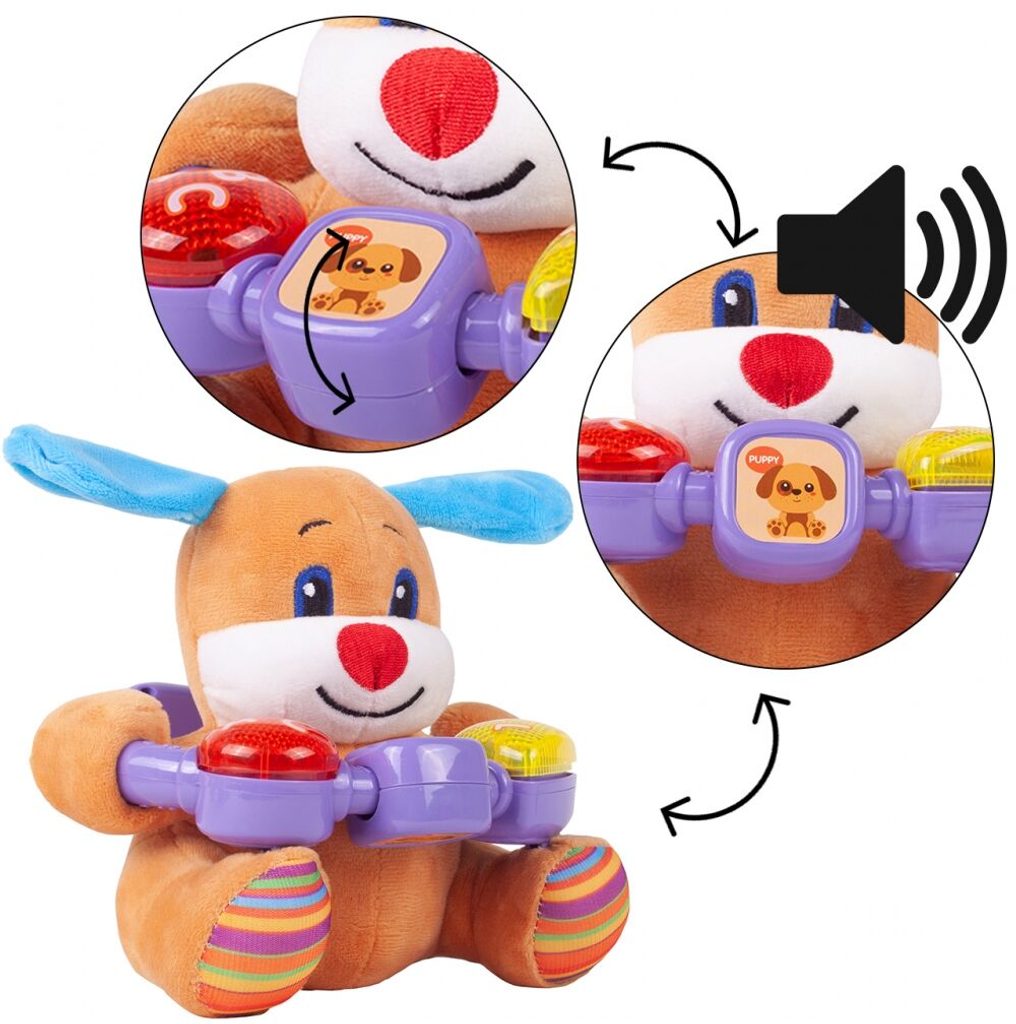Interaktivní plyšový pejsek Baby Puppy je ideální hračkou nejmenší děti. Je vyroben z jemného na dotyk příjemného materiálu. Po zmáčkutí tlačítek se spustí, osvětlení, zvuky a melodie. Hračka je určena pro děti od narození.
