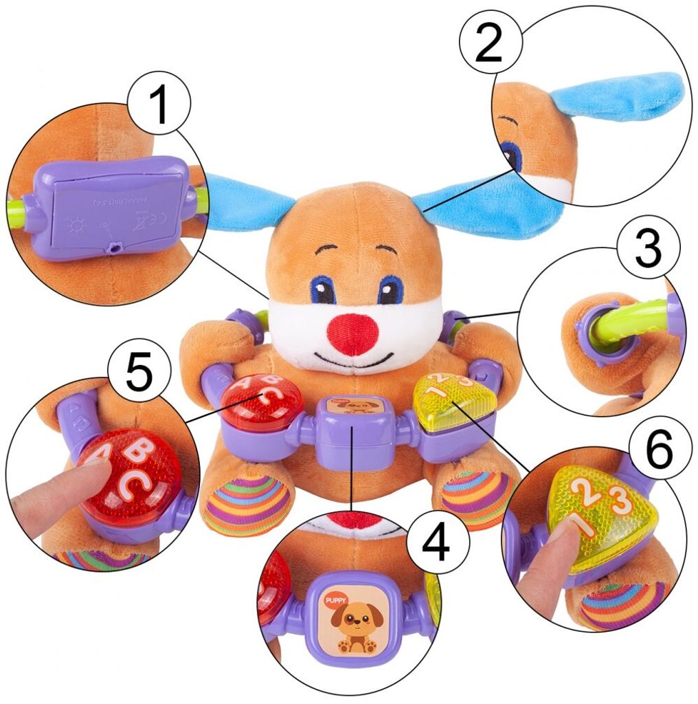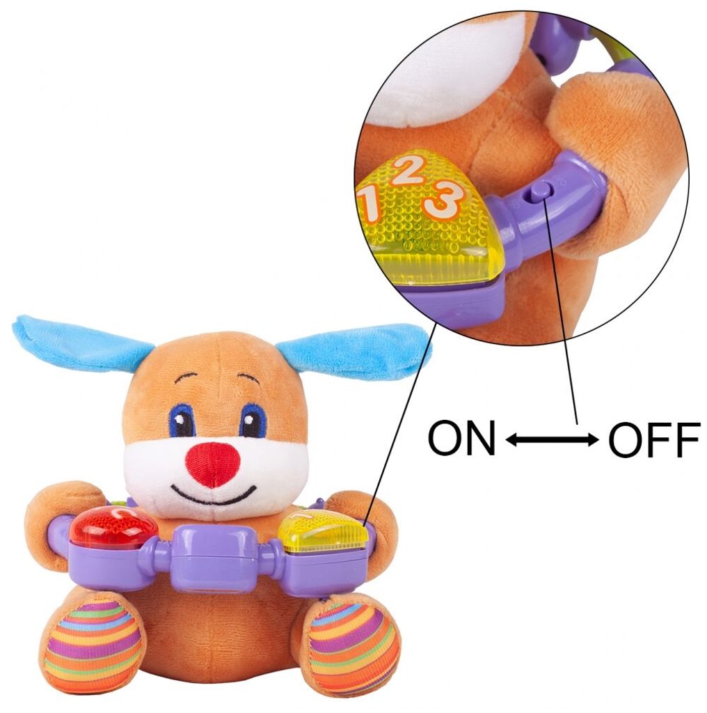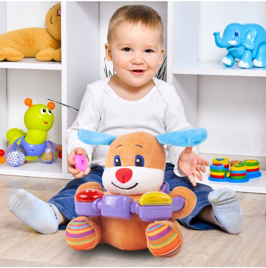 Interaktivní plyšový pejsek Baby Puppy je ideální hračkou nejmenší děti. Je vyroben z jemného na dotyk příjemného materiálu. Po zmáčkutí tlačítek se spustí, osvětlení, zvuky a melodie. Hračka je určena pro děti od narození.