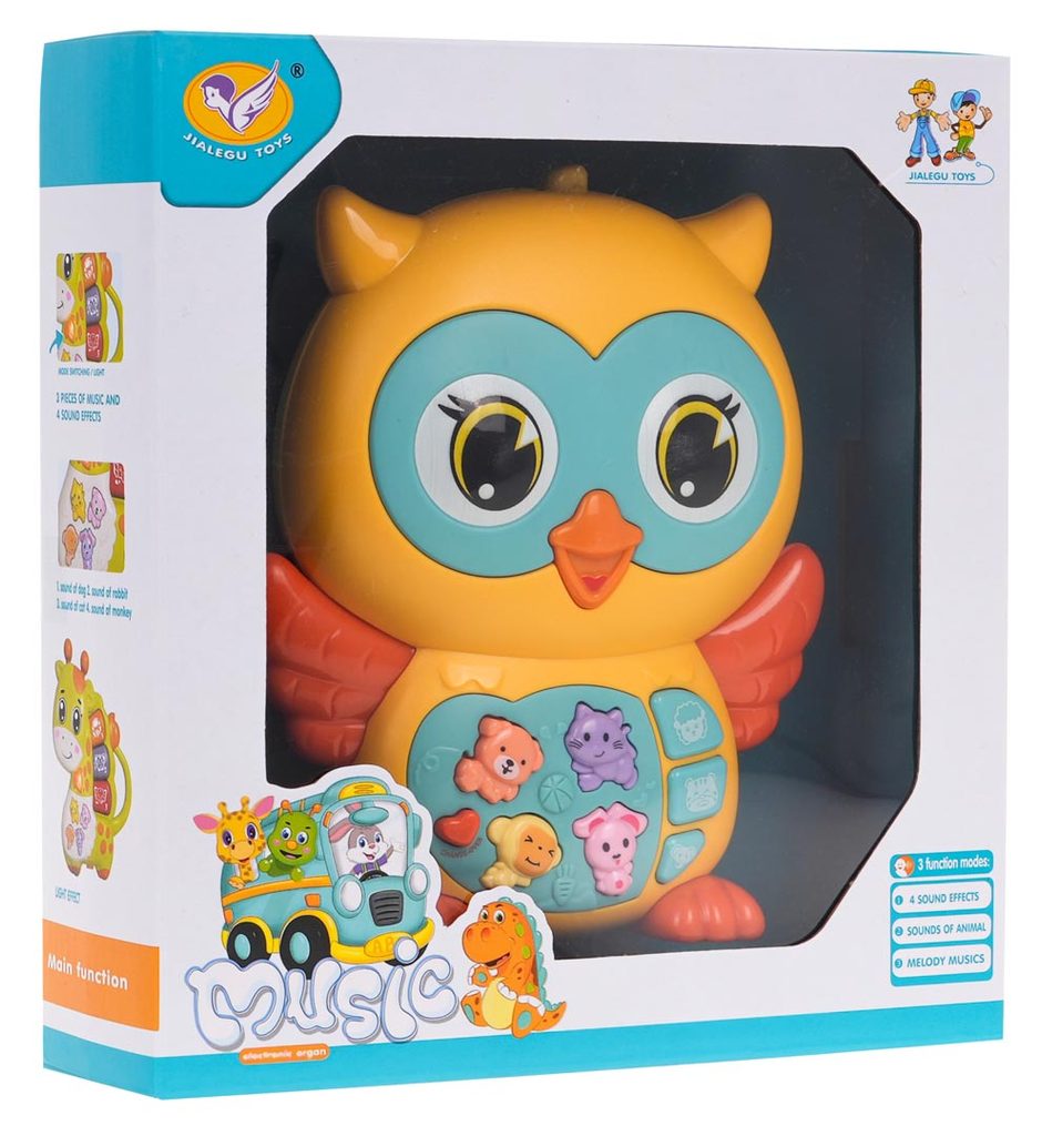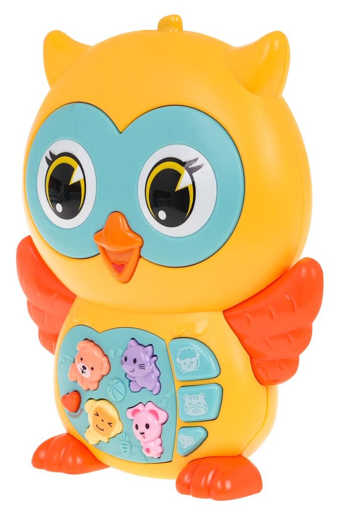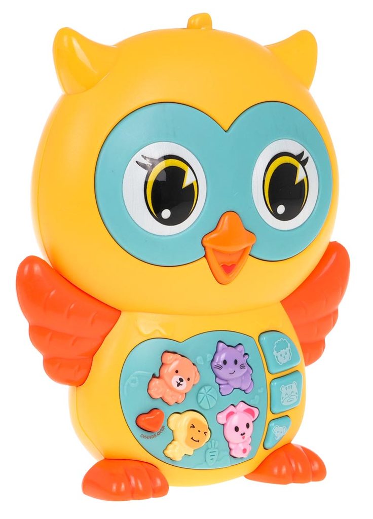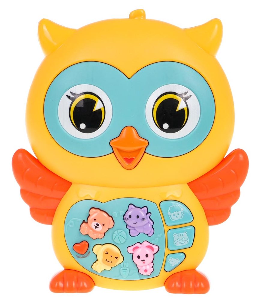 Interaktivní sova pro děti od 6 měsíců je zábavná hračka se zvukovými a světelnými funkcemi. Vyrobena z kvalitního, nárazuvzdorného plastu, který je bezpečný pro miminka a bez ostrých hran. Sovička v živých barvách upoutá pozornost dítěte a podporuje jeho hru. Na jejím břiše se nachází panel s tlačítky, které spouštějí zvuky zvířat, melodie a zvuky Do-Re-Mi v různých režimech. Křídla sovy blikají světelnými efekty. Režimy se přepínají tlačítkem ve tvaru srdce a hlasitost lze regulovat. Hračka je napájena dvěma AA bateriemi (nejsou součástí balení).