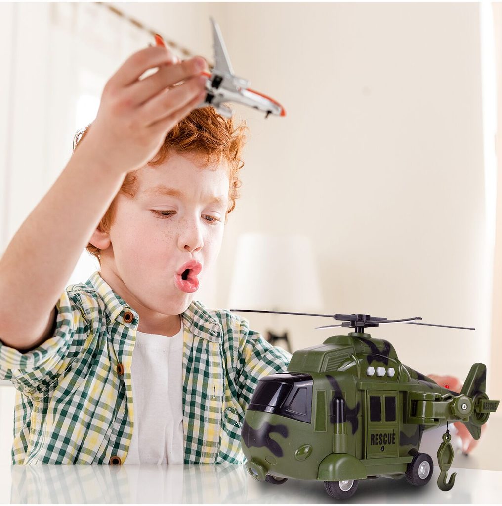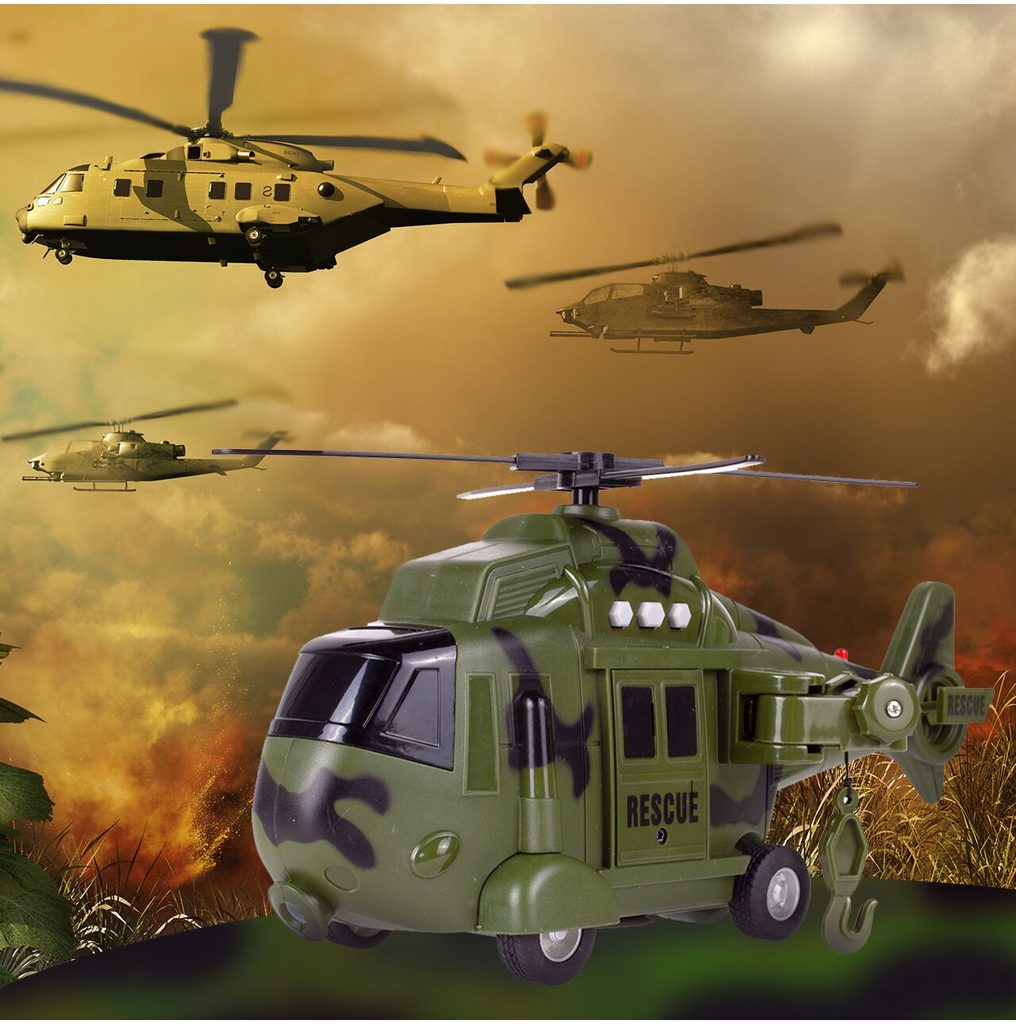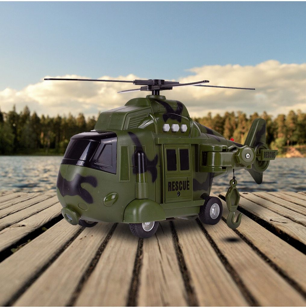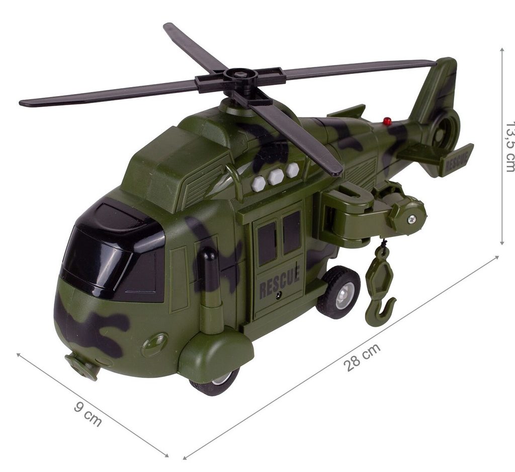 Interaktivní vojenský vrtulník s pohonem kol Army Rescue je ideální hračkou pro rozvoj manuální zručnosti a logického myšlení. Je vybaven zvukovými efekty a také předním a zadním světýlkem. Součástí helikoptéry je také lano s háčkem a záchranné lehátko. Pohon zajišťuje systém Friction Power kdy se helikoptéra rozpohybuje tlačením po hladkém povrchu. Hračka je určena pro děti od 36 měsíců věku.