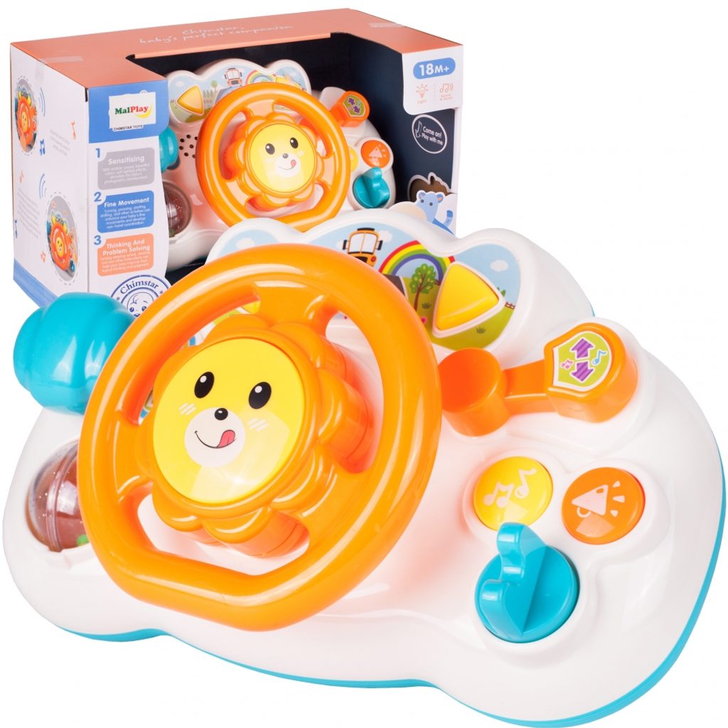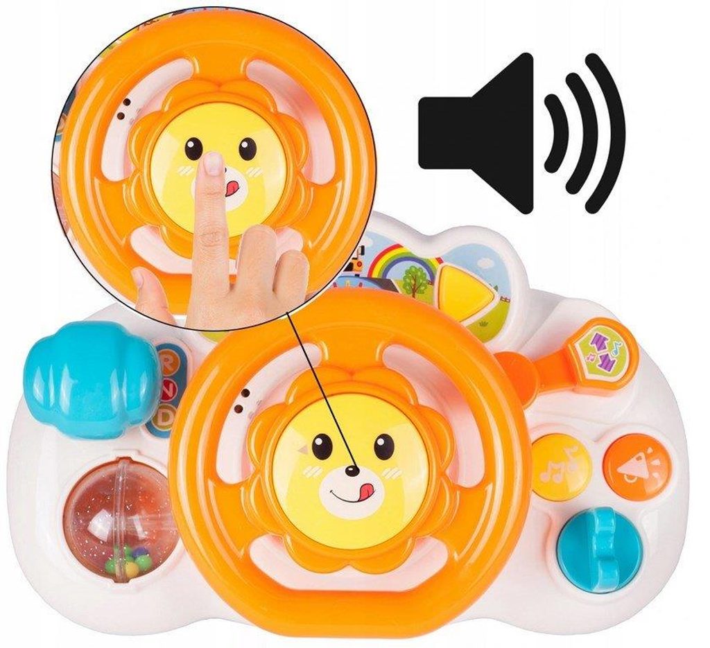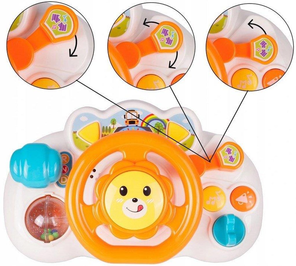 Interaktivní volant pro nejmenší se světlem a zvukem Lion Driver oranžový