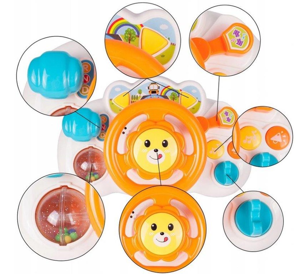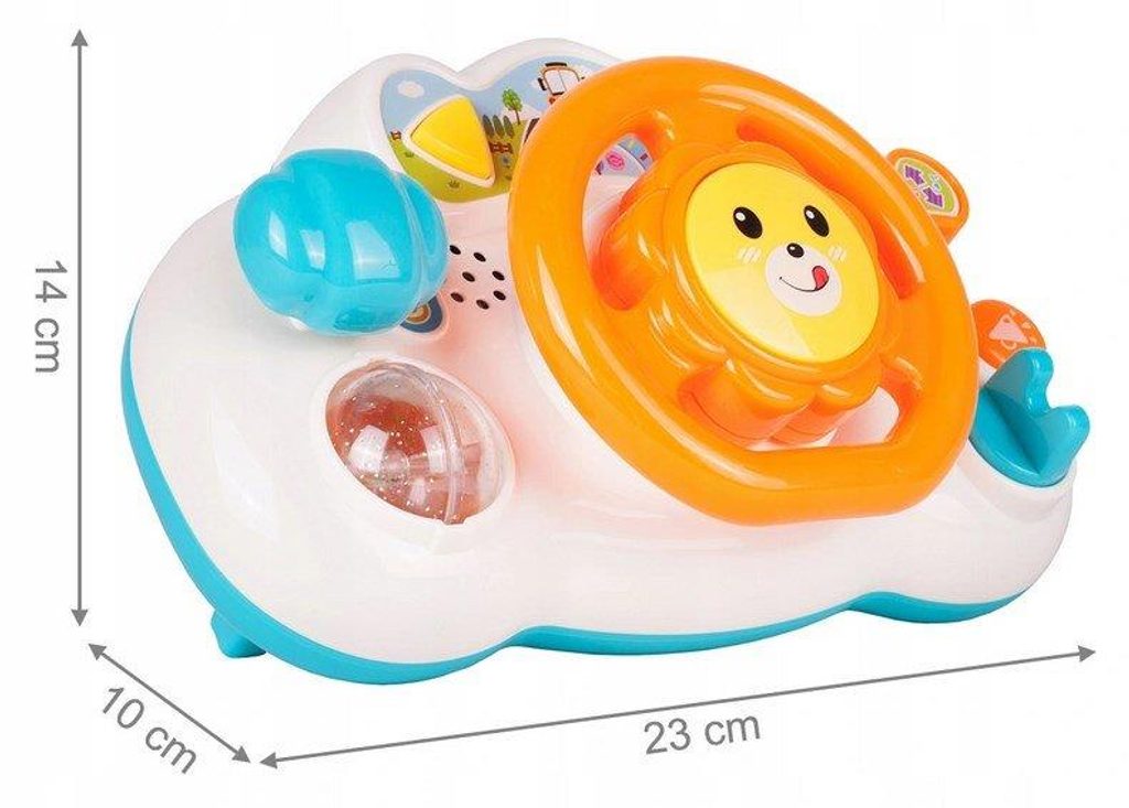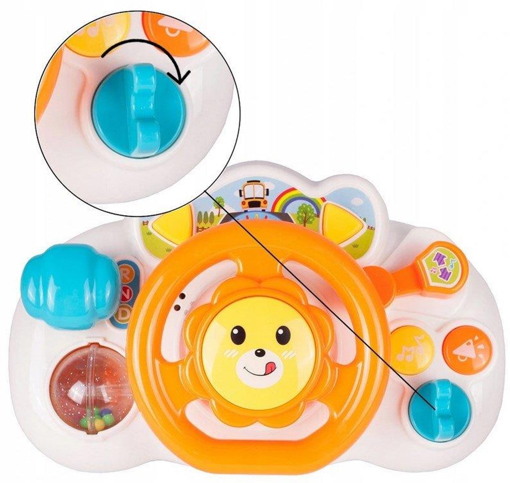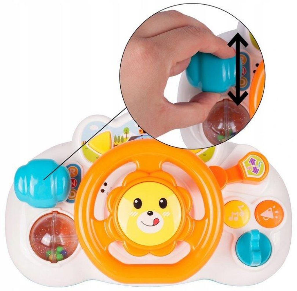 Interaktivní volant se zvuky a světly Lion Driver je ideální hračkou pro ty nejmenší děti. Umožní dítěti rozvíjet hmat, zrak a sluch. Volant je vybavený různými tlačítky a páčkami, které spouští melodie, zvuky klaksonu, jedoucího auta. Má také směrová světla a pohyblivou řadící páku.  Hračka je určena pro děti od 18 měsíců věku.