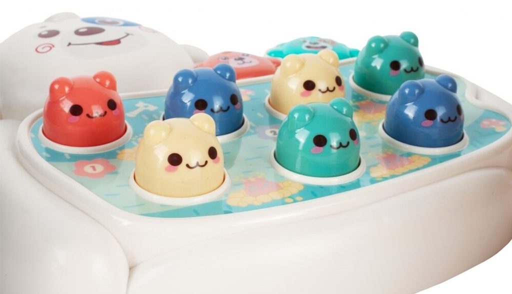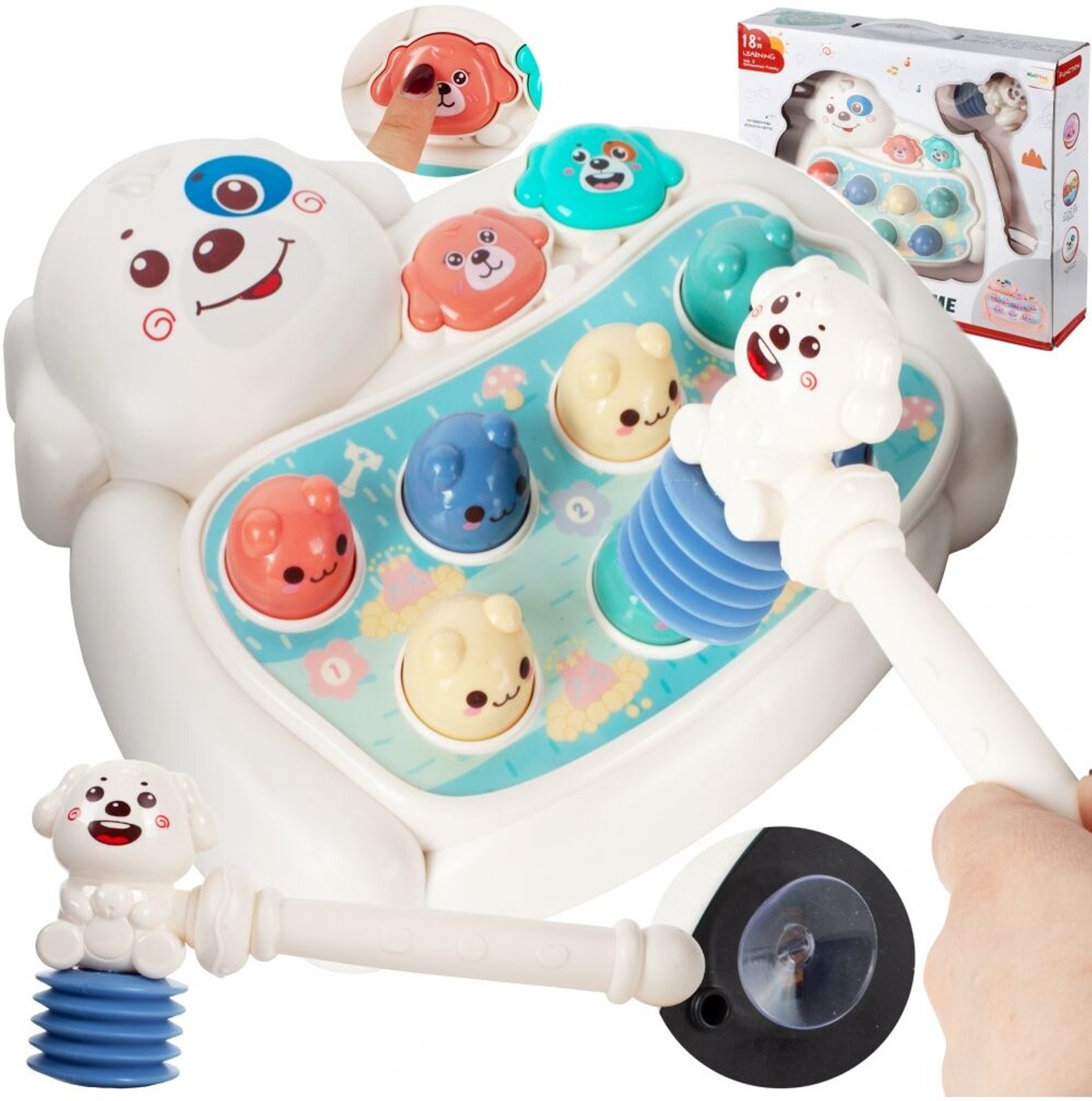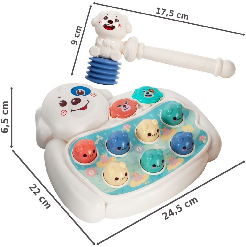 Interaktivní zatloukání míčků Hamster Game je určeno pro ty nejmenší děti. Stimuluje u nich hmat, koordinaci, představivost a učí je rozpoznávat barvy. Pomocí přiloženého kladívko se svítící míčky ve tvaru pejsků vtloukají dovnitř. Hračka je vybavena celkem 4 režimy hry kdy se dá nastavit rychlost světýlek a také různé melodie. Ve spodní části jsou umístěny přísavky. Hračka je určena pro děti od 12 měsíců věku.