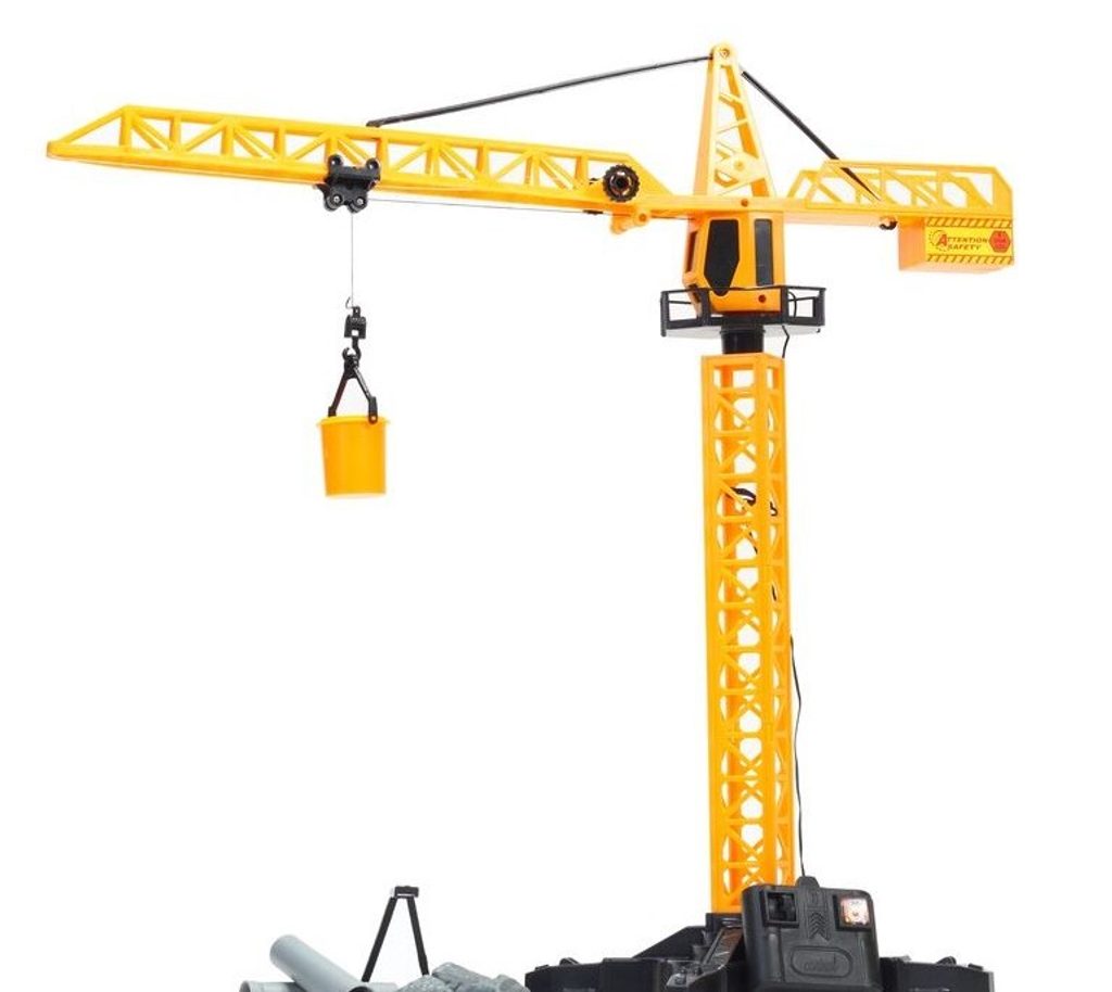 Jeřáb na dálkové ovládání Building Machine je ideální hračkou pro všechny malé konstruktéry. Má otočné rameno a umožnuje zdvih nahoru a dolů. Sada dále obsahuje imitaci kamenů, vědro, dvě trubky a podstavu pro naložení materiálu. Ovládání je velmi jednoduché, pomocí dálkového ovladače s přívodním kabelem. Jeřáb je vyrobený z plastu a má certifikaci CE.