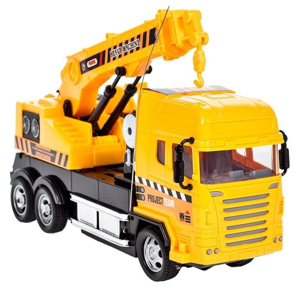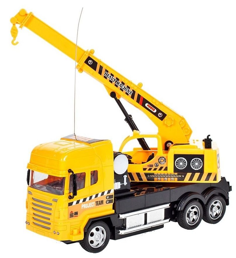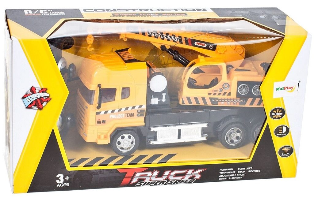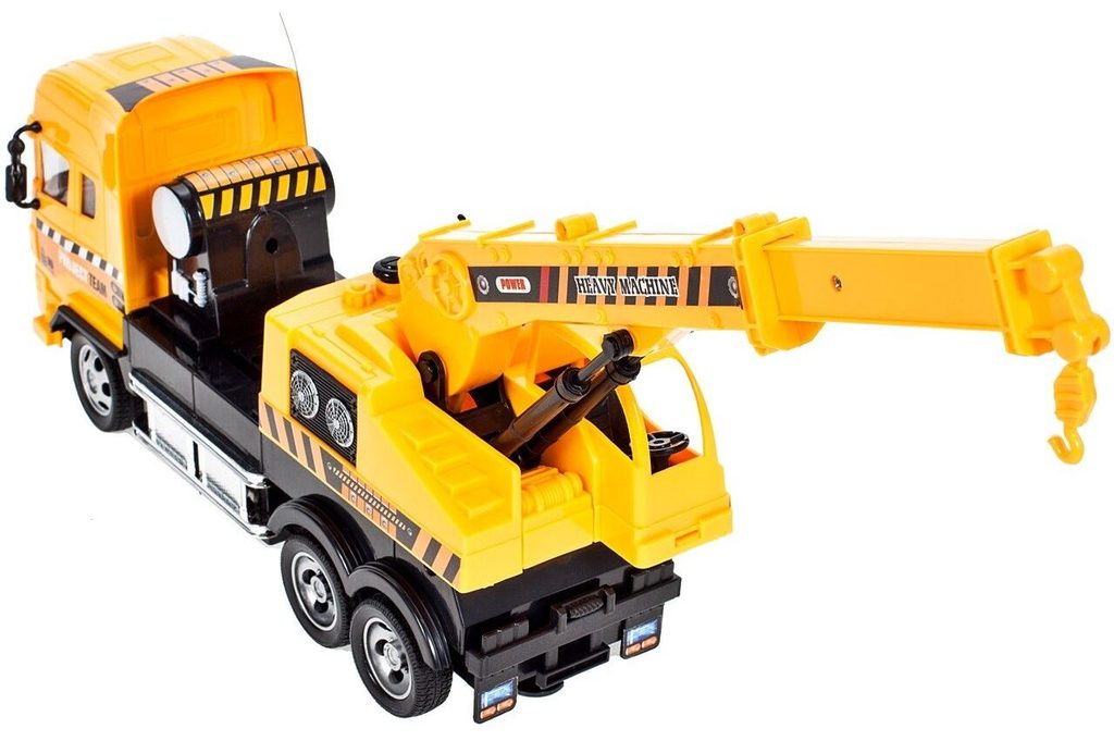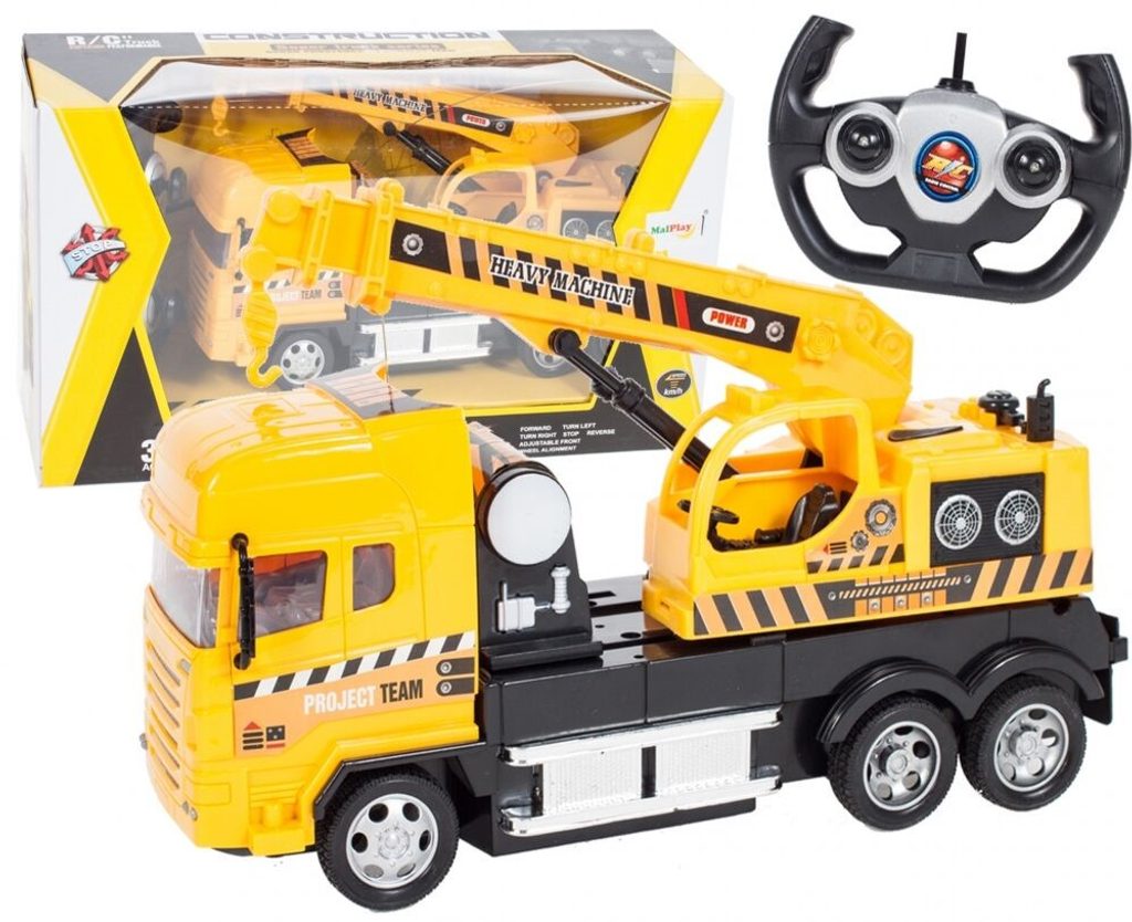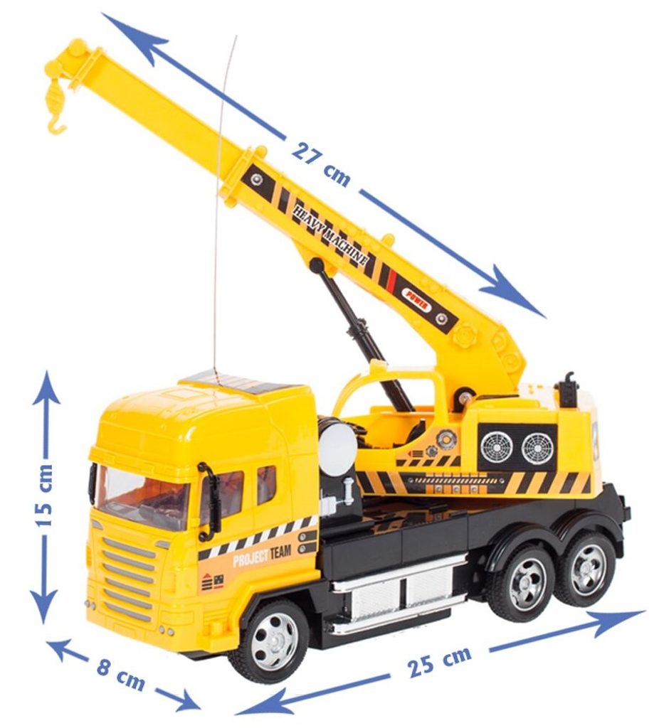 Jeřáb s dálkovým ovládáním 27MGz umožnuje jízdu dopředu a dozadu, zatáčí doprava a doleva. Kabina jeřábu je otočná o 360° a jeho rameno se dá ručně vysunout o dalších 10 cm. Součástí balení je dálkový ovladač s jednoduchým ovládáním změnu směru a jízdy vpřed a vzad. Ovladač je napájen bateriemi, které nejsou součástí balení. Autíčko je vyrobeno z plastu a má certifikaci CE.